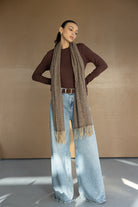 צעיף צמר קלאסי בשילוב דוגמה טרנדית ביותר לעונה וסיומת פרנזים.