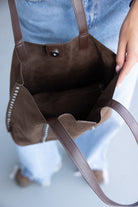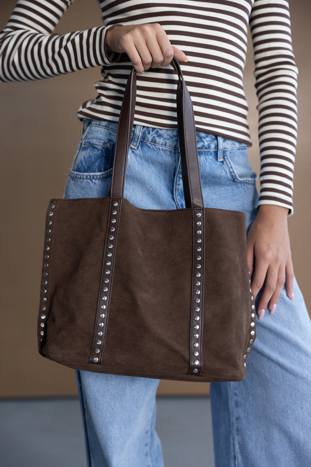 תיק נשיאה בגודל בינוני מדויק ובעל תא גדול ותא קטן נשלף היכול לשמש כתיק איפור. עשוי דמוי זאמש במראה הטרנדי של העונה.