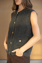 אפודת סריג מבד סריג נעים ואיכותי. בשילוב זוג כיסים וכפתורים מוזהבים לאורך האפודה.