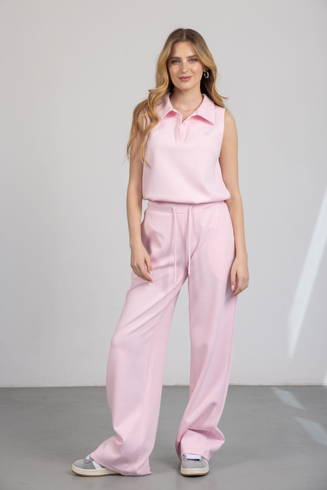 גופייה בגזרה נינוחה עם צווארון פולו ופתח קדמי עדין. עיצוב נקי ומחמיא שמעניק מראה אלגנטי וקליל.