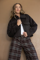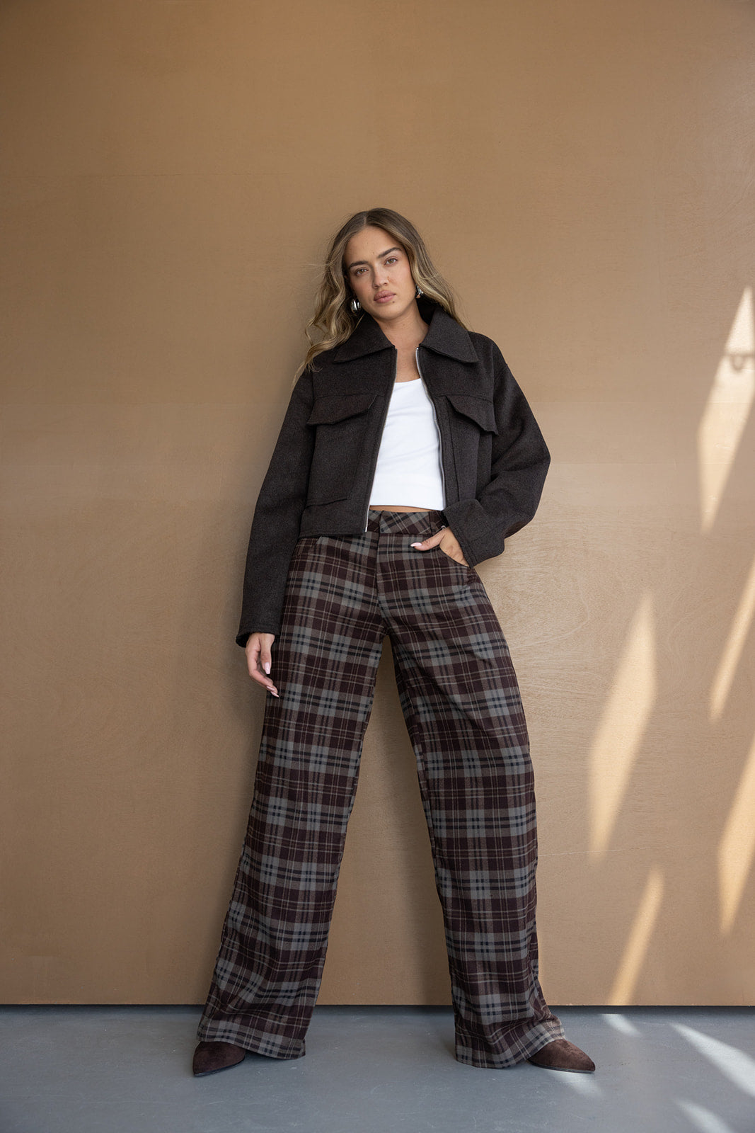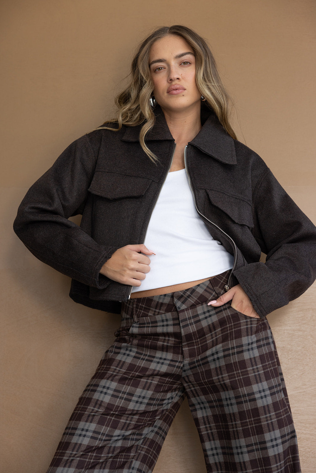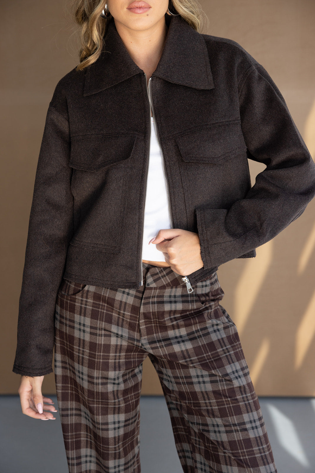 ג’קט בד בעל מרקם רך, עם רוכסן קדמי ושני כיסי קדמיים גדולים. דגם עם צווארון קלאסי וגזרה ישרה.