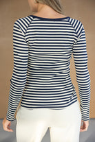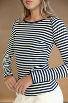 חולצת בייסיק מבד ריב נעים ואיכותי, בגזרה צמודה ומחמיאה ביותר. בשילוב דוגמת פסים לרוחב החולצה.