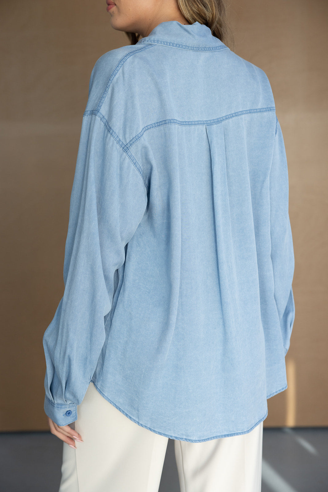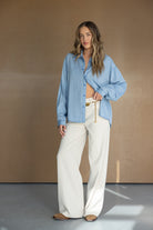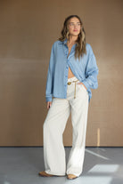 חולצה מכופתרת בגזרה משוחררת למראה קלאסי ועדין, מבד איכותי ונעים ביותר.