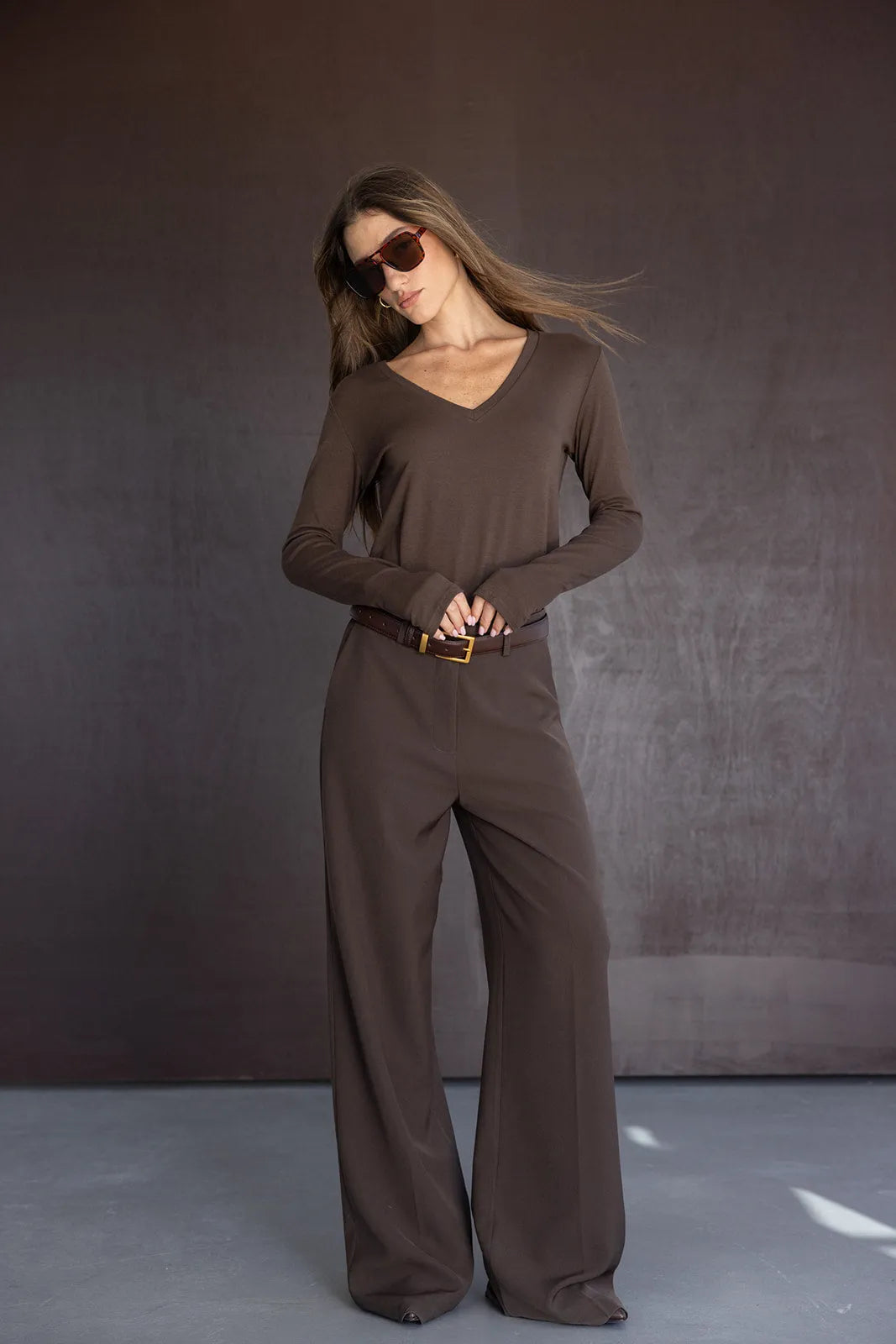 חולצת בייסיק איכותית ונוחה ביותר, בשילוב צווארון וי פתוח ושרוולי כפפה.