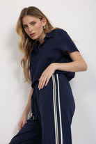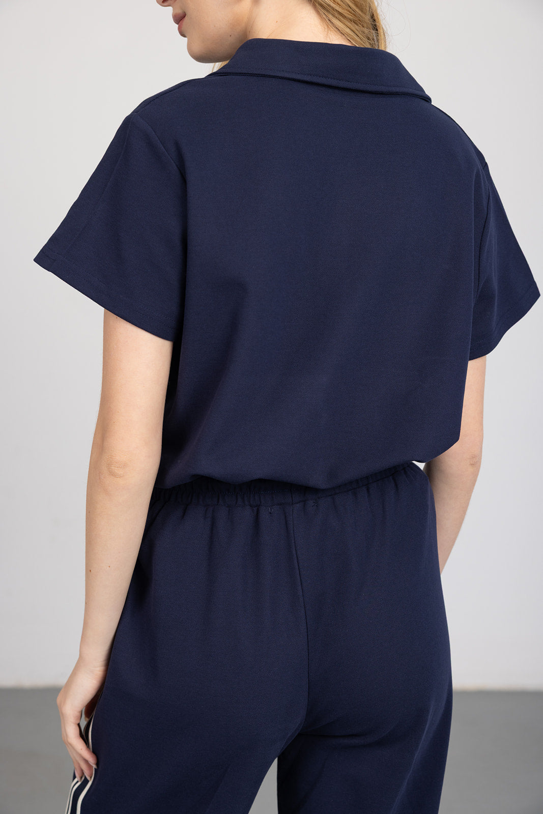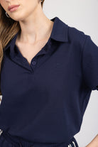 חולצה בגזרה משוחררת עם שרוולים קצרים וצווארון קלאסי עם מפתח קטן בחזית. עשויה בד רך ונעים למגע.