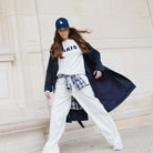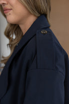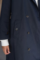טרנץ' ארוך בגזרה ישרה ורפויה, עם צווארון רחב, כפתורים כפולים בחזית וכיסים צדדיים. מעניק מראה מסודר ונקי.