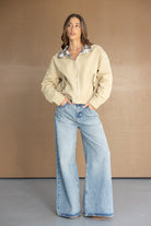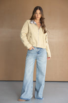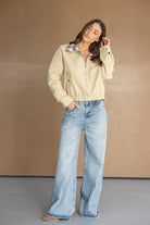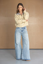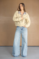 ג'ינס במראה טרנדי בגזרת מידי ומתרחבת מעט. לג'ינס שני כיסים קדמיים ושני כיסים אחוריים, כפתור ורוכסן לסגירה. בשילוב דוגמה טרנדית מוטבעת על הכיסים האחוריים של הג'ינס.