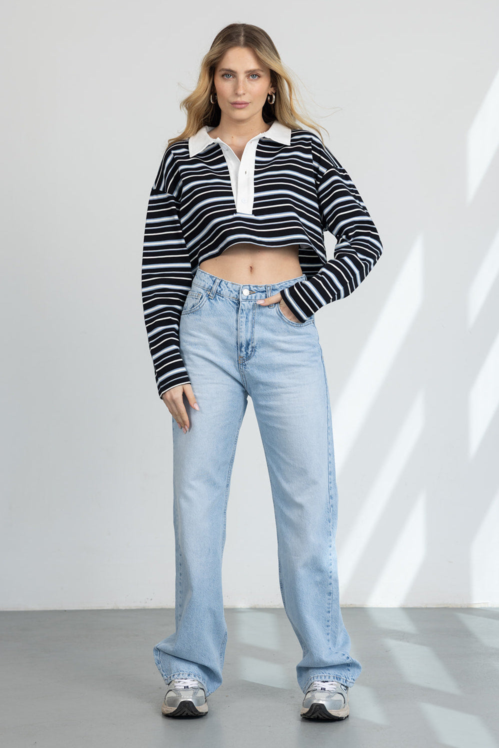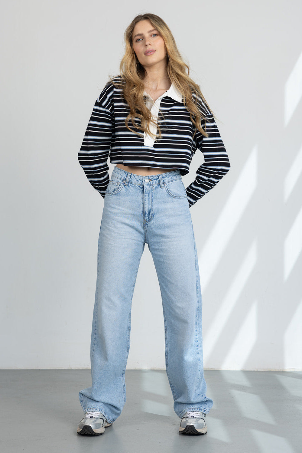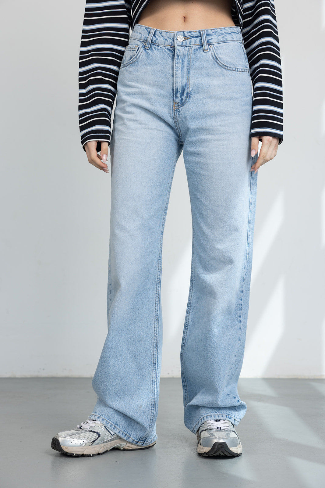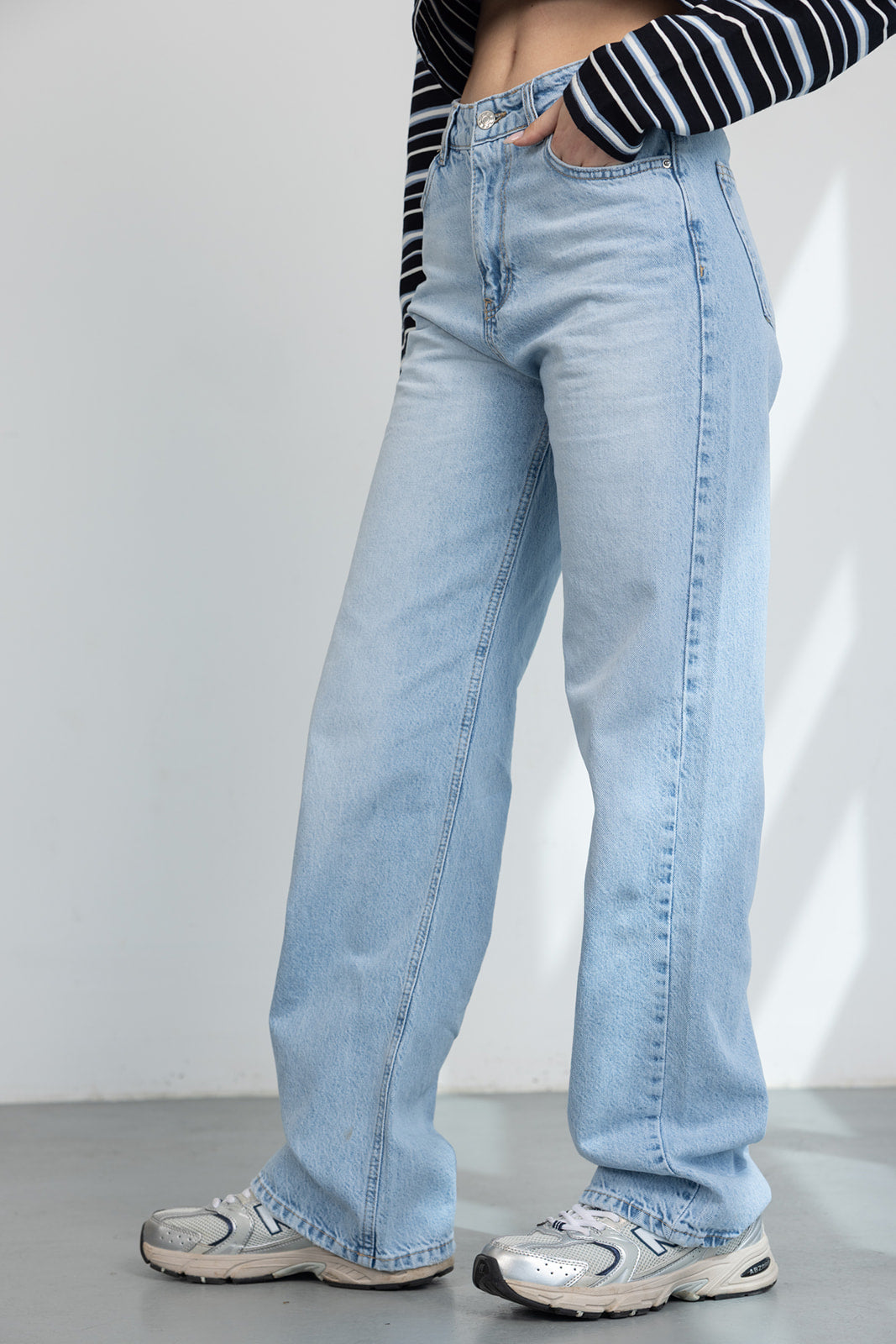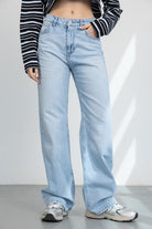 ג'ינס בגזרה ישירה ורפויה למראה מחמיא ונוח. כולל כיסים קדמיים ואחוריים, סגירת רוכסן וכפתור ותפרים קלאסיים.