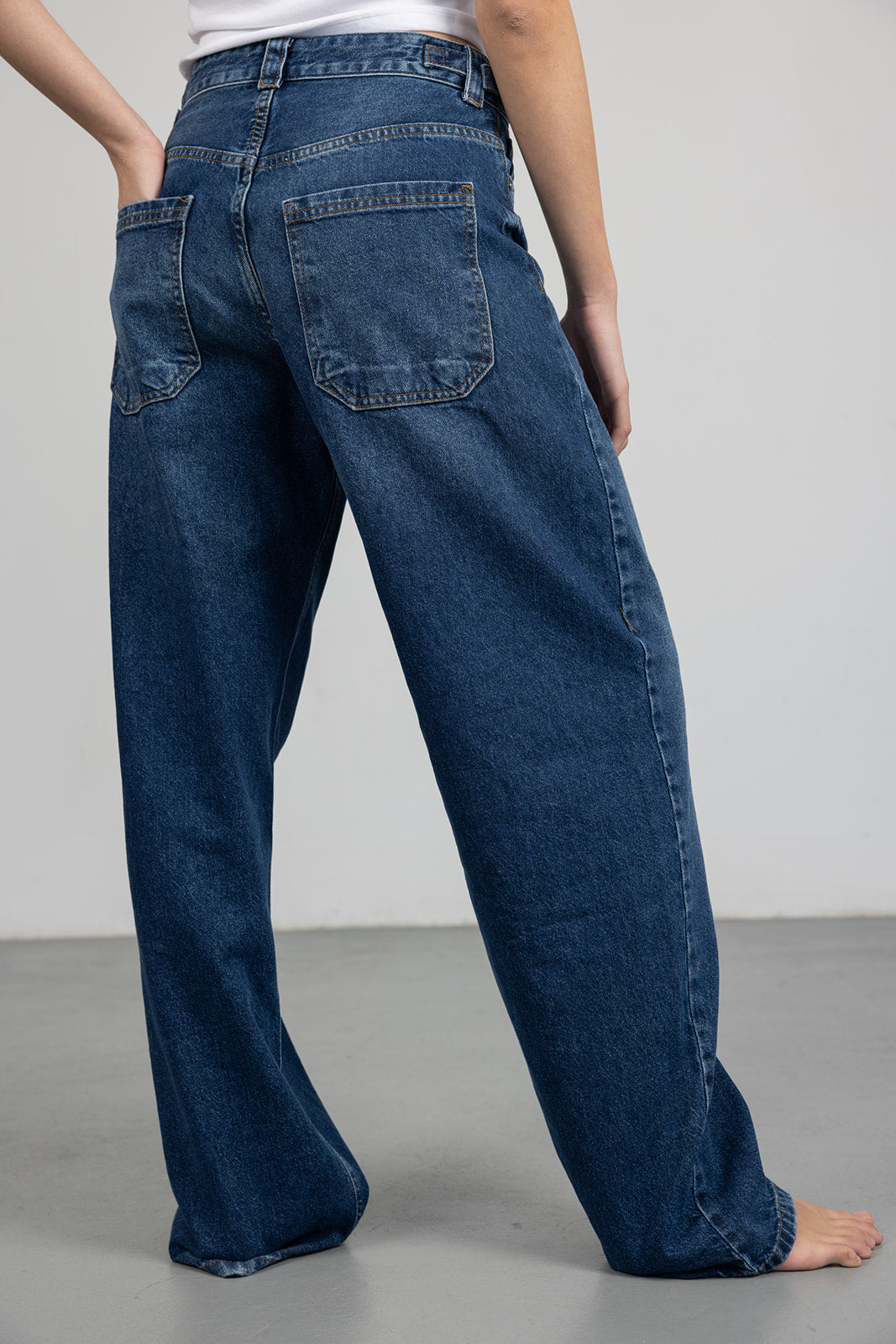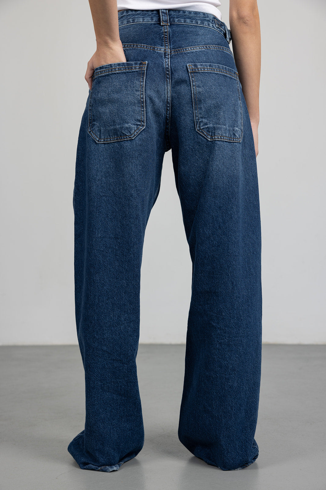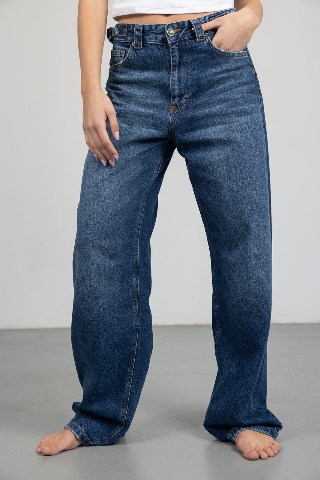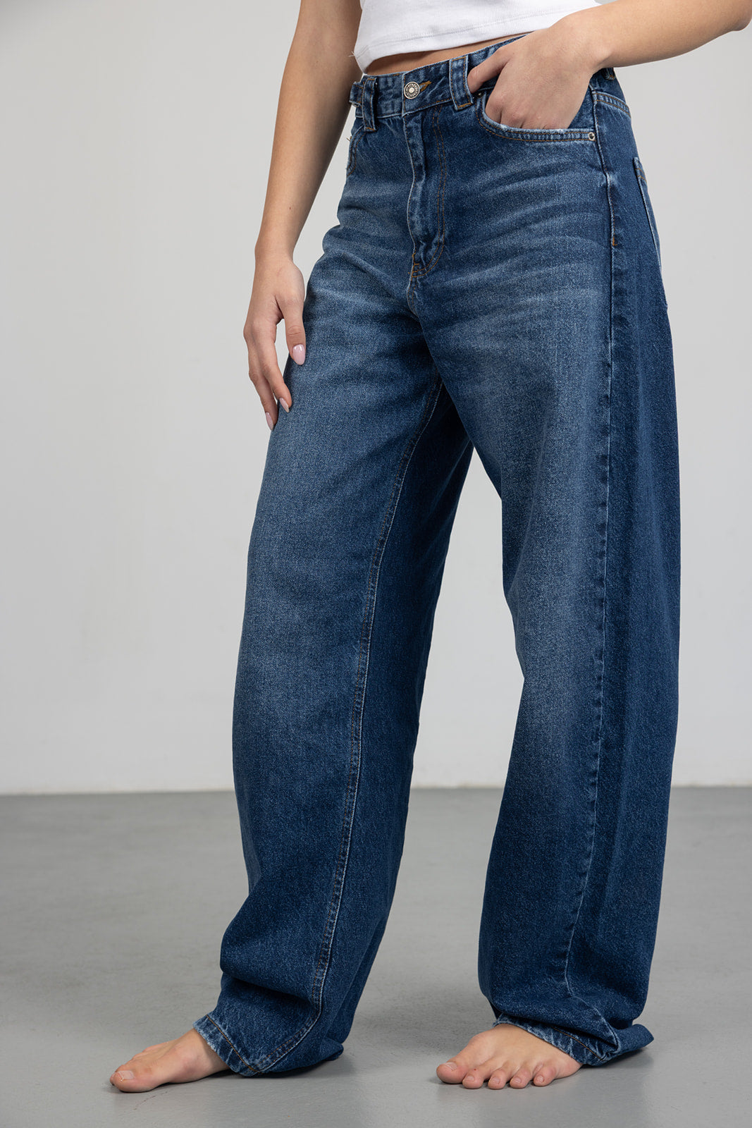 ג'ינס בגזרה ישרה ורפויה עם מותן גבוהה למראה מחמיא ונוח. כולל כיסים קדמיים ואחוריים, סגירת רוכסן וכפתור.