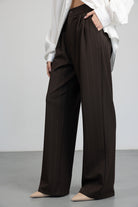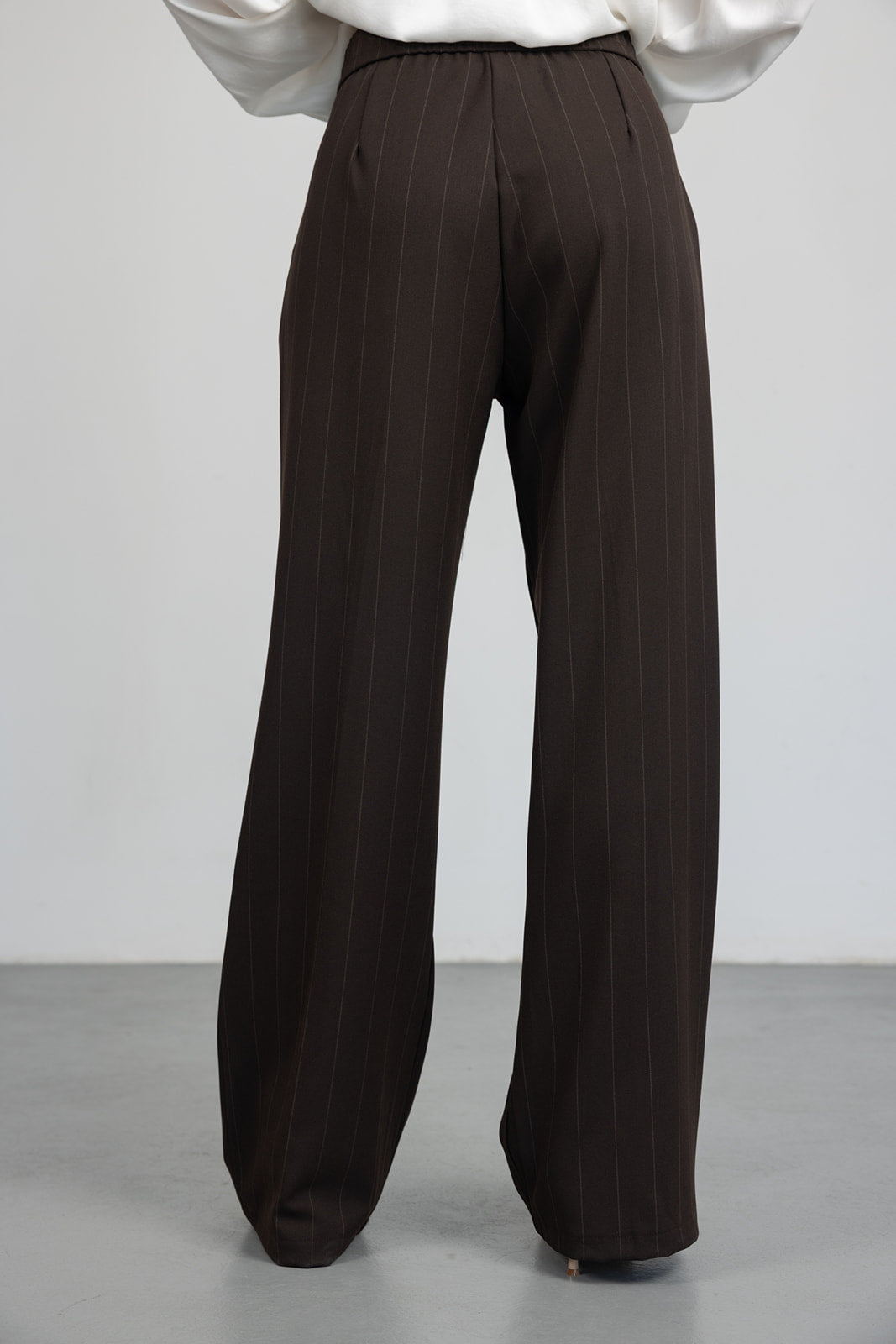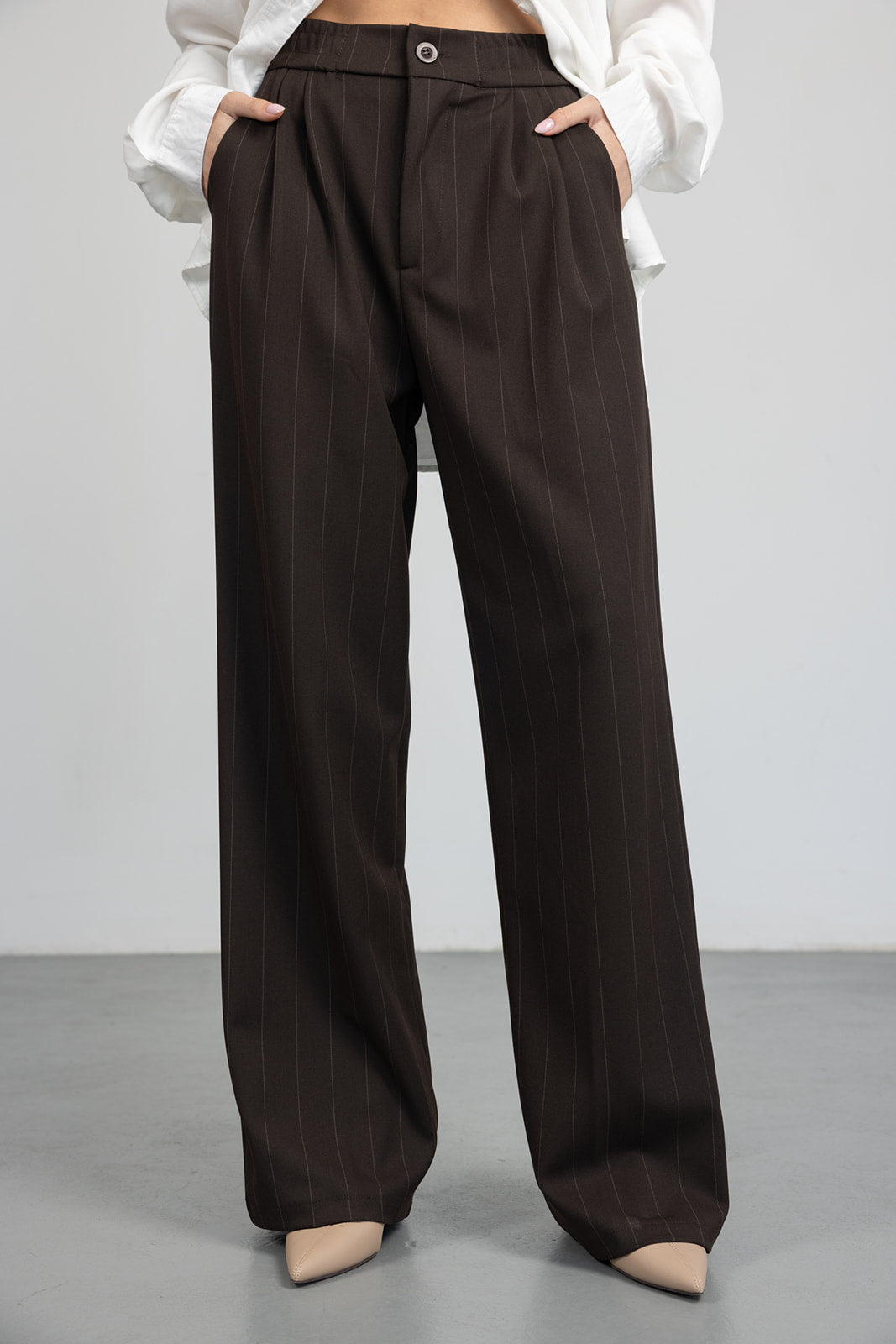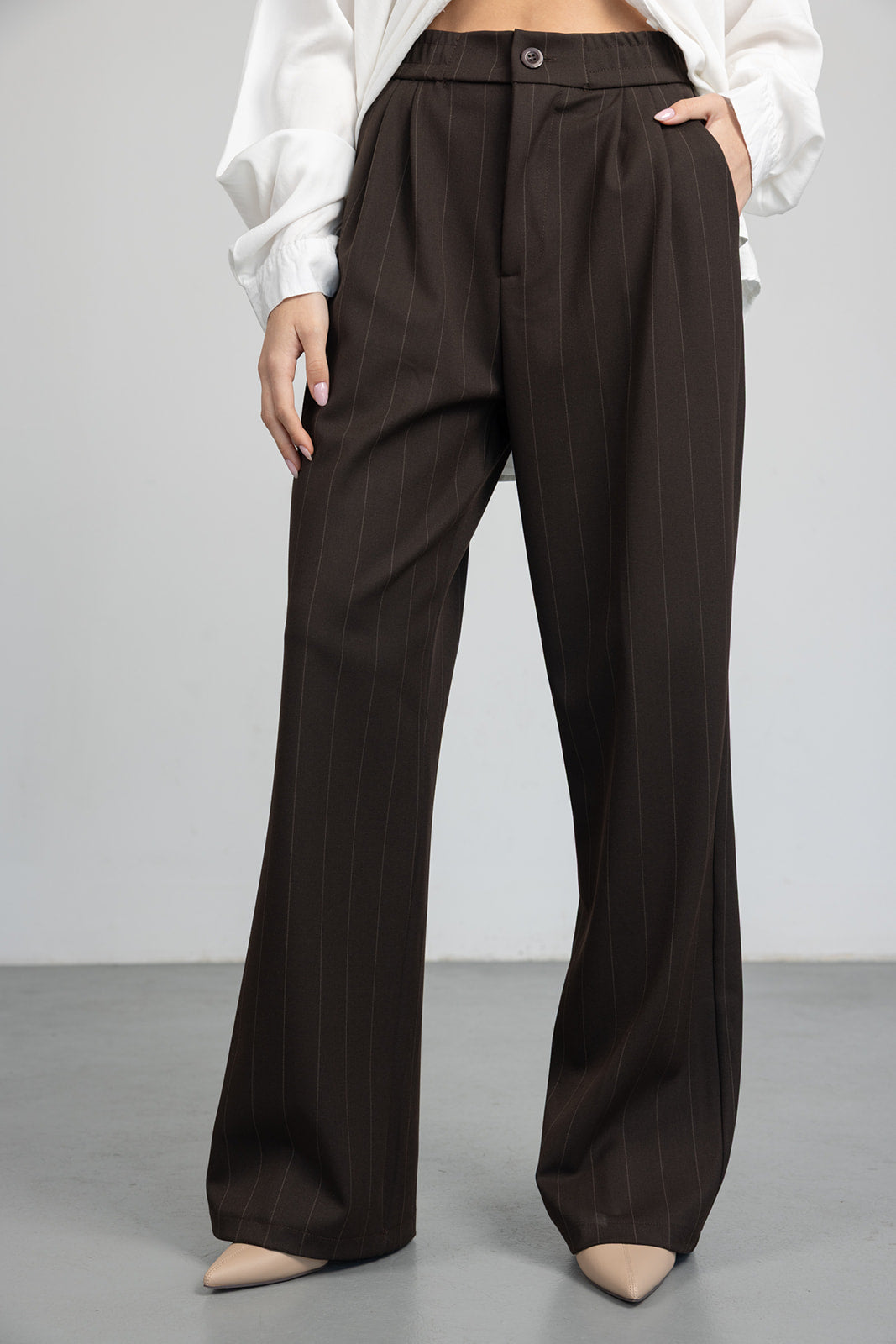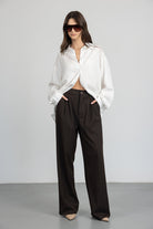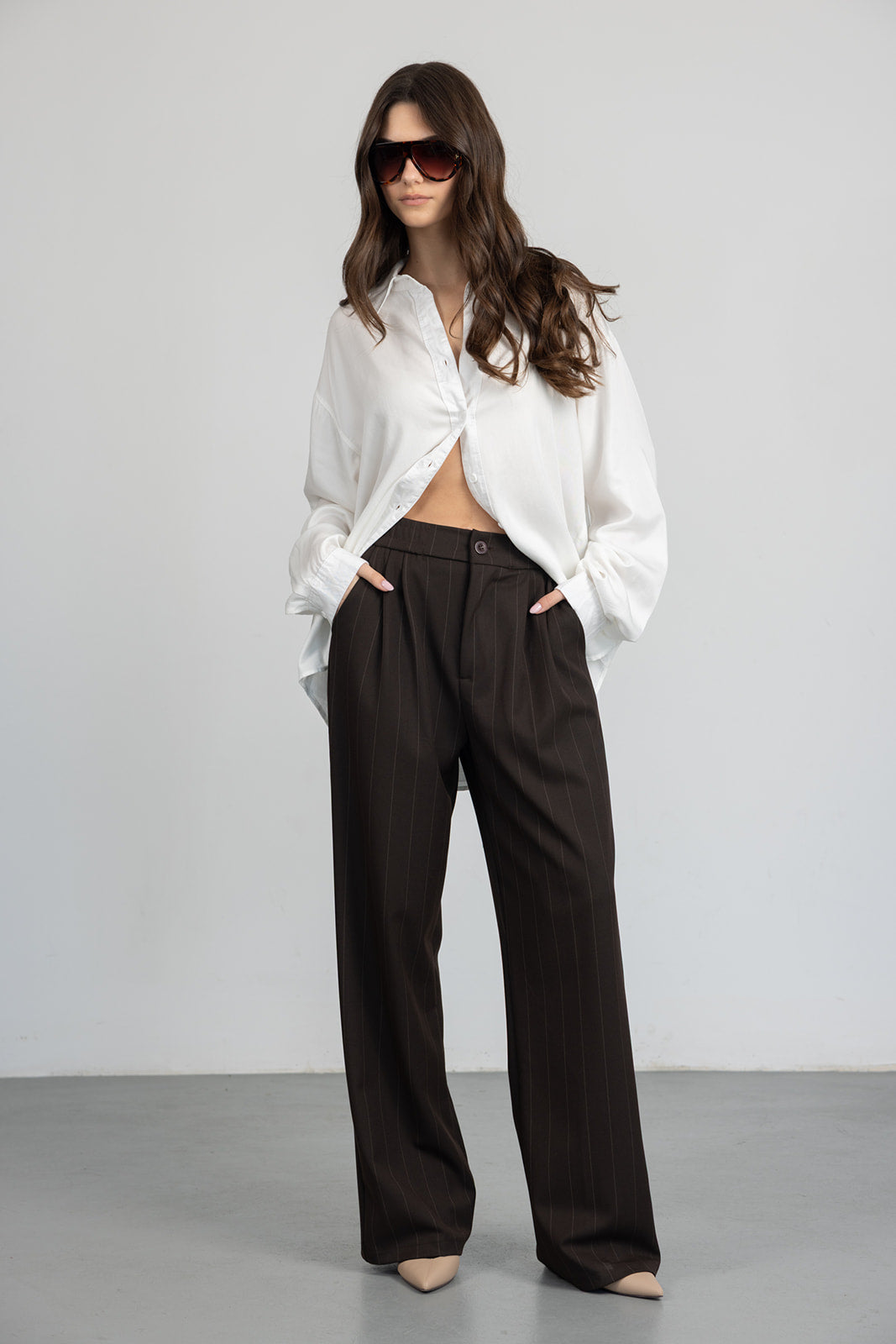 מכנסיים בגזרה רחבה עם מותן גבוהה וסגירת רוכסן וכפתור. כוללים כיסים צדדיים וגזרה נקייה שמעניקה מראה מחויט ואלגנטי.