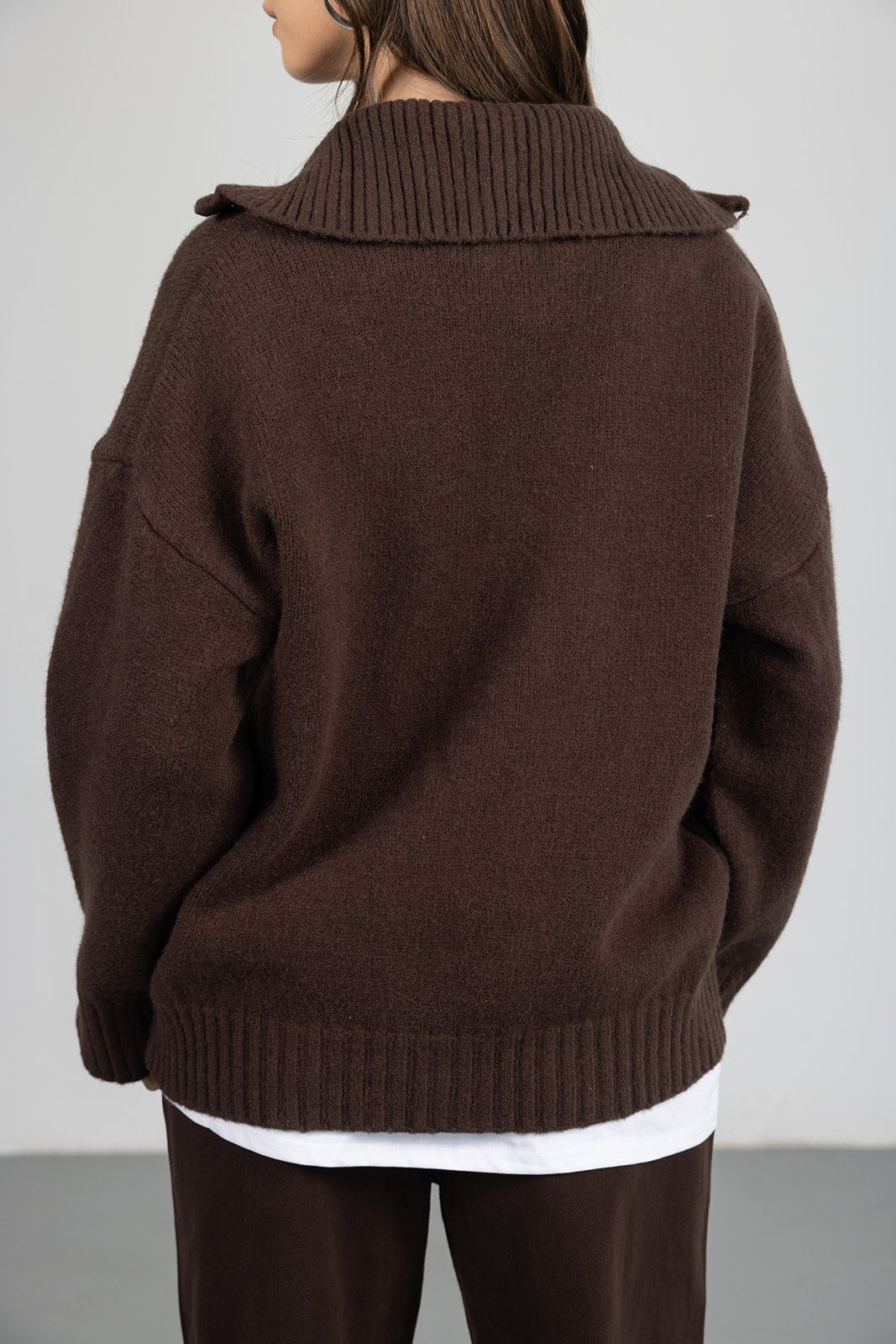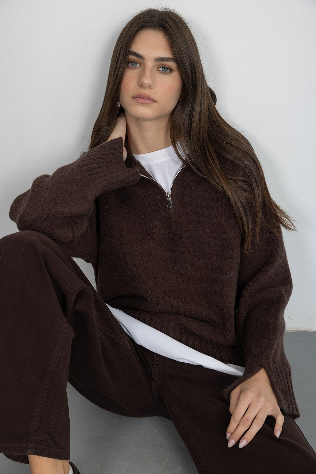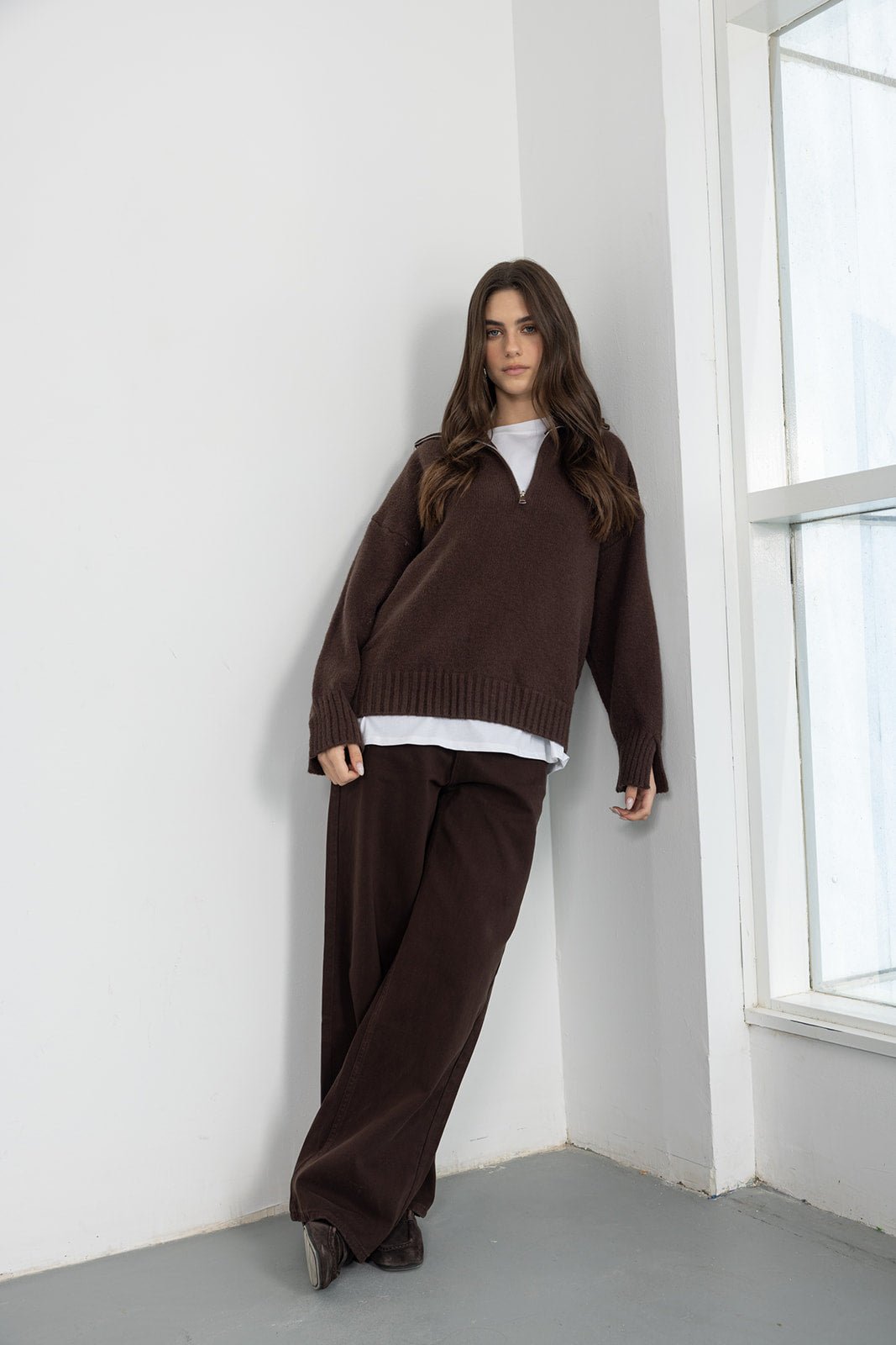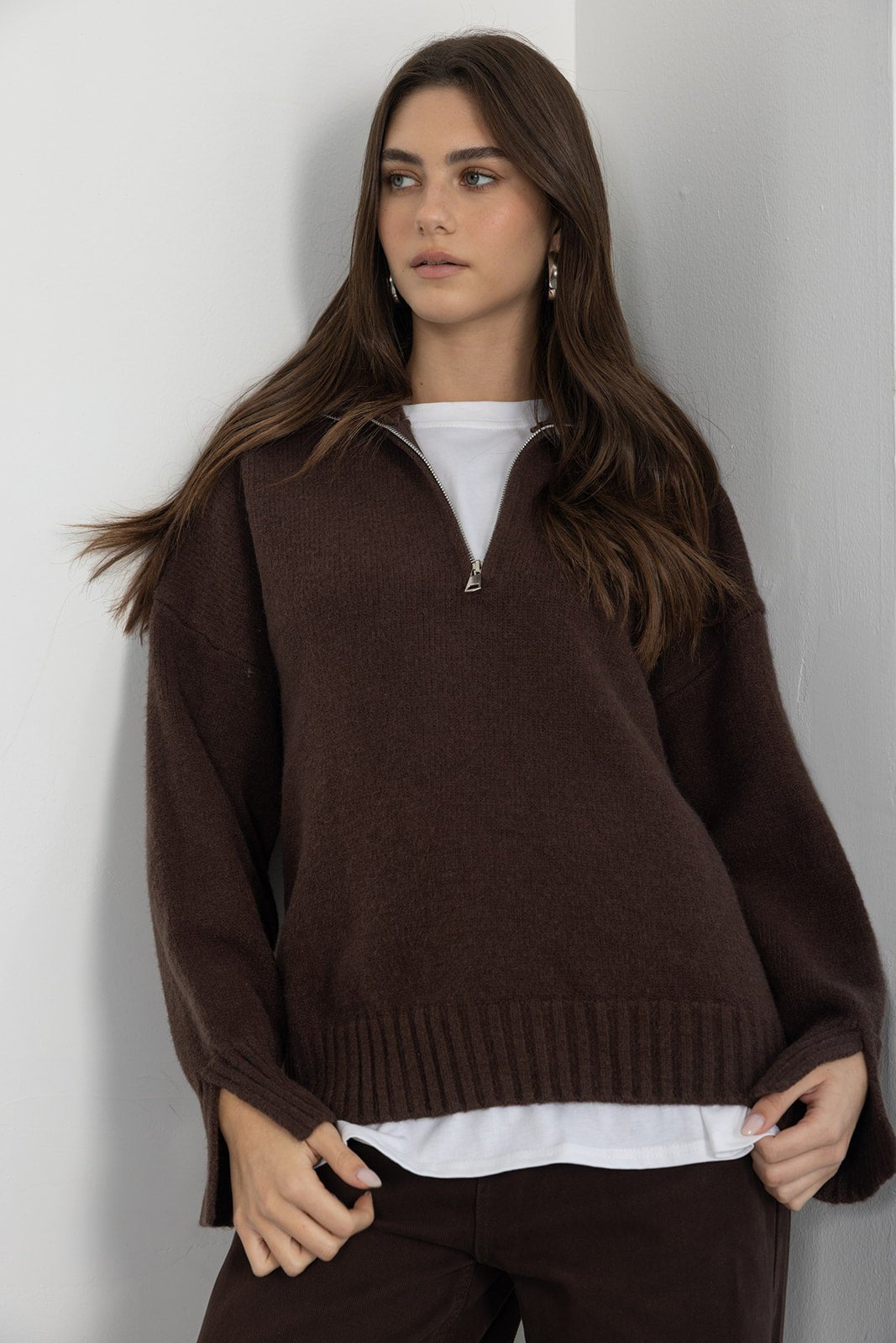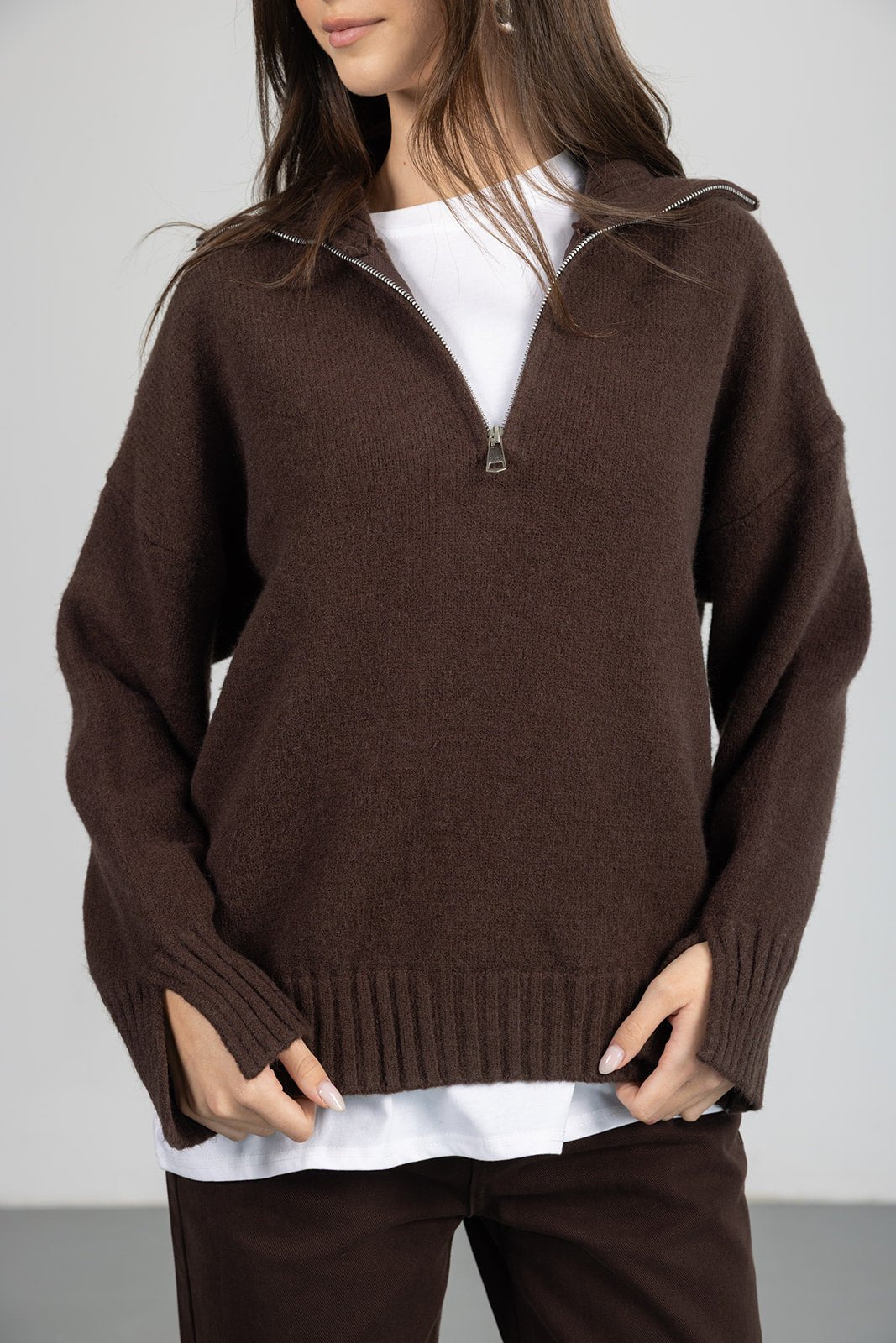 סריג בשילוב צווארון עם רוכסן ומנג'ט ריב, מבד נעים וקליל לעונה וגזרה משוחררת מחמיאה.
