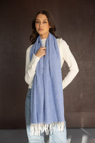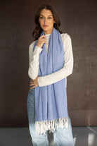 צעיף צמר קלאסי בשילוב דוגמה טרנדית ביותר לעונה וסיומת פרנזים.