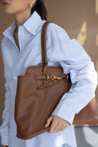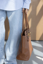 תיק נשיאה בגודל מדויק בעל תא גדול עשוי דמוי עור איכותי במראה הטרנדי של העונה.