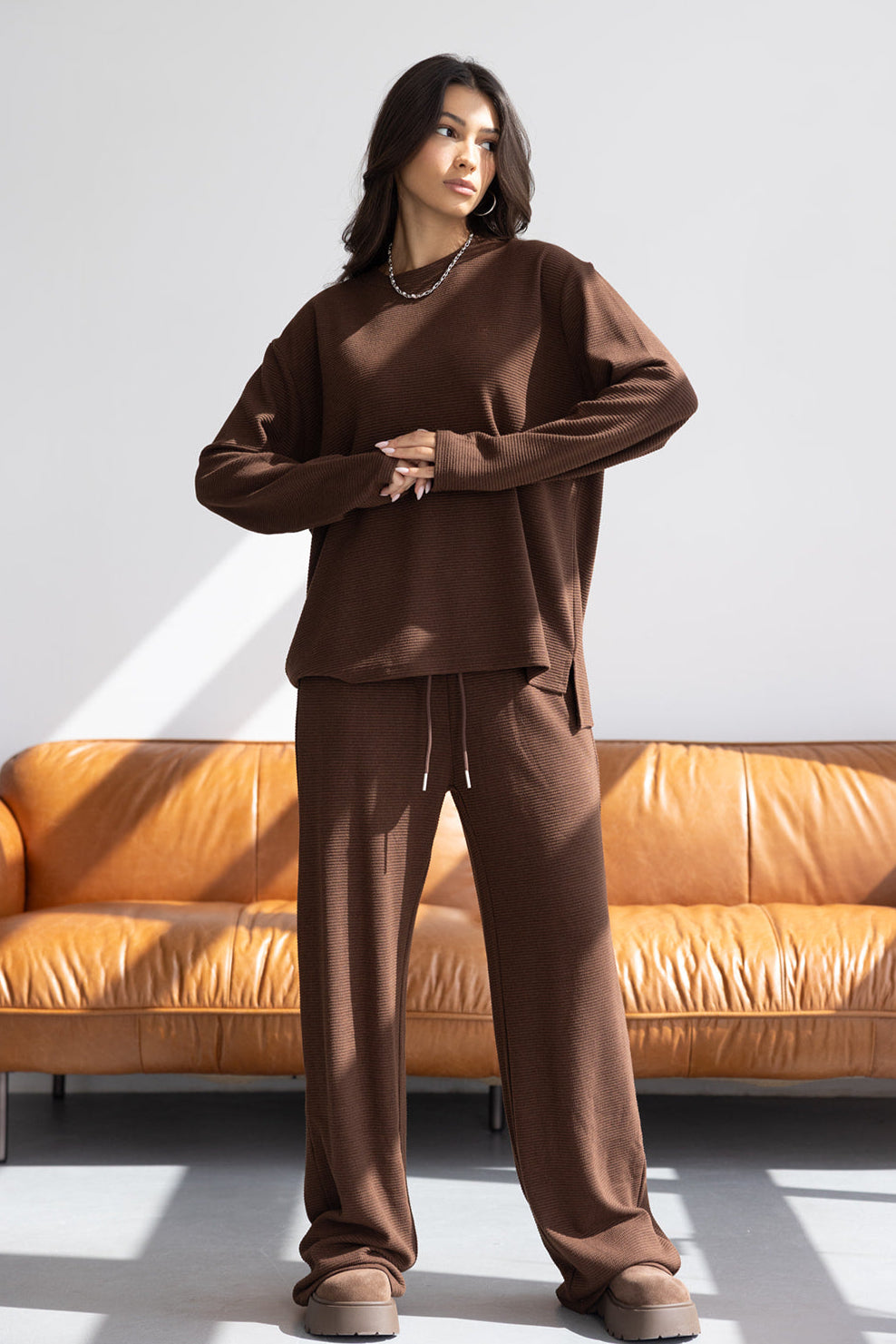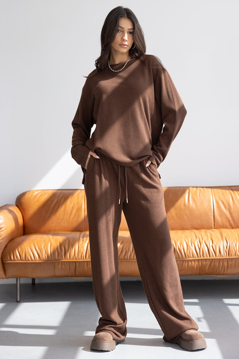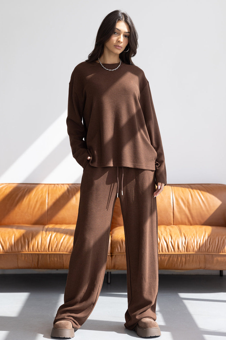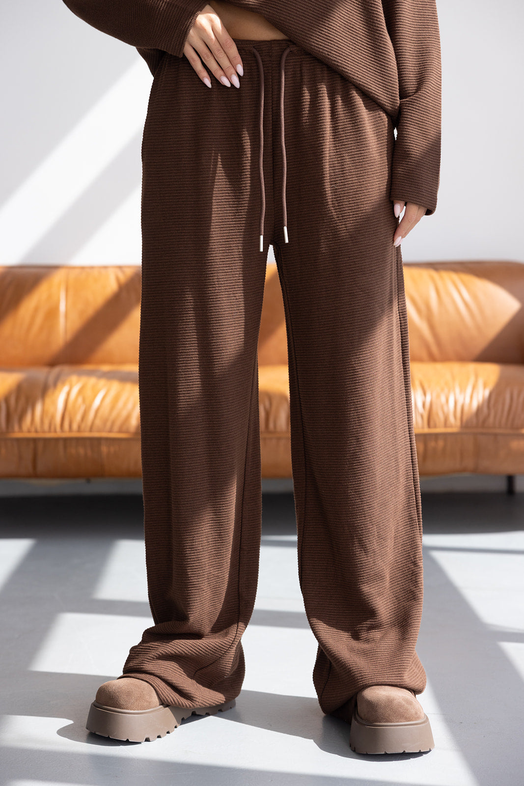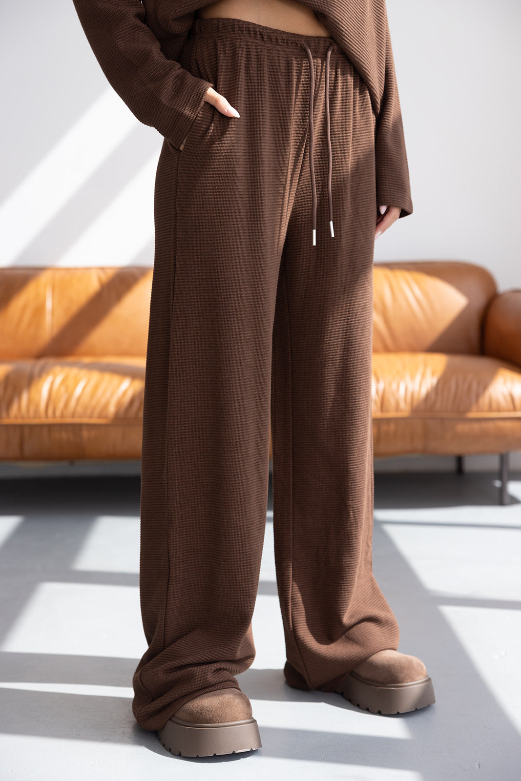מכנס וופל אן חום