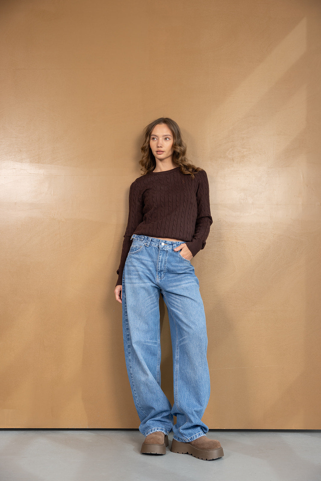 חולצת וופל אן חומה