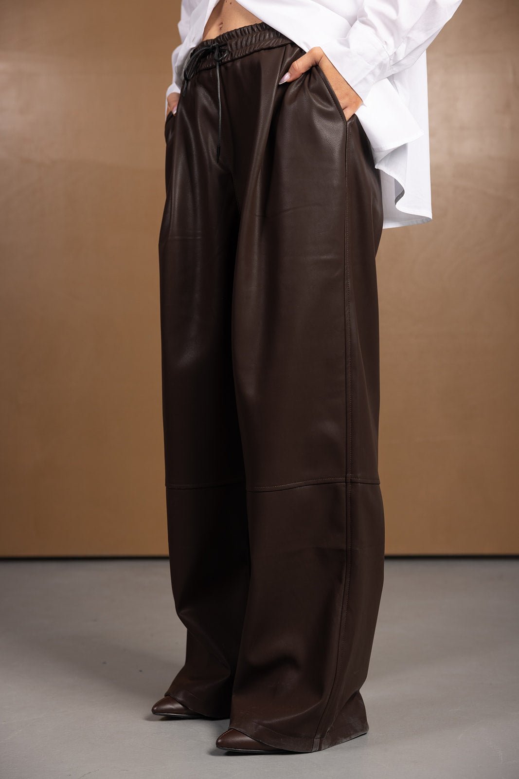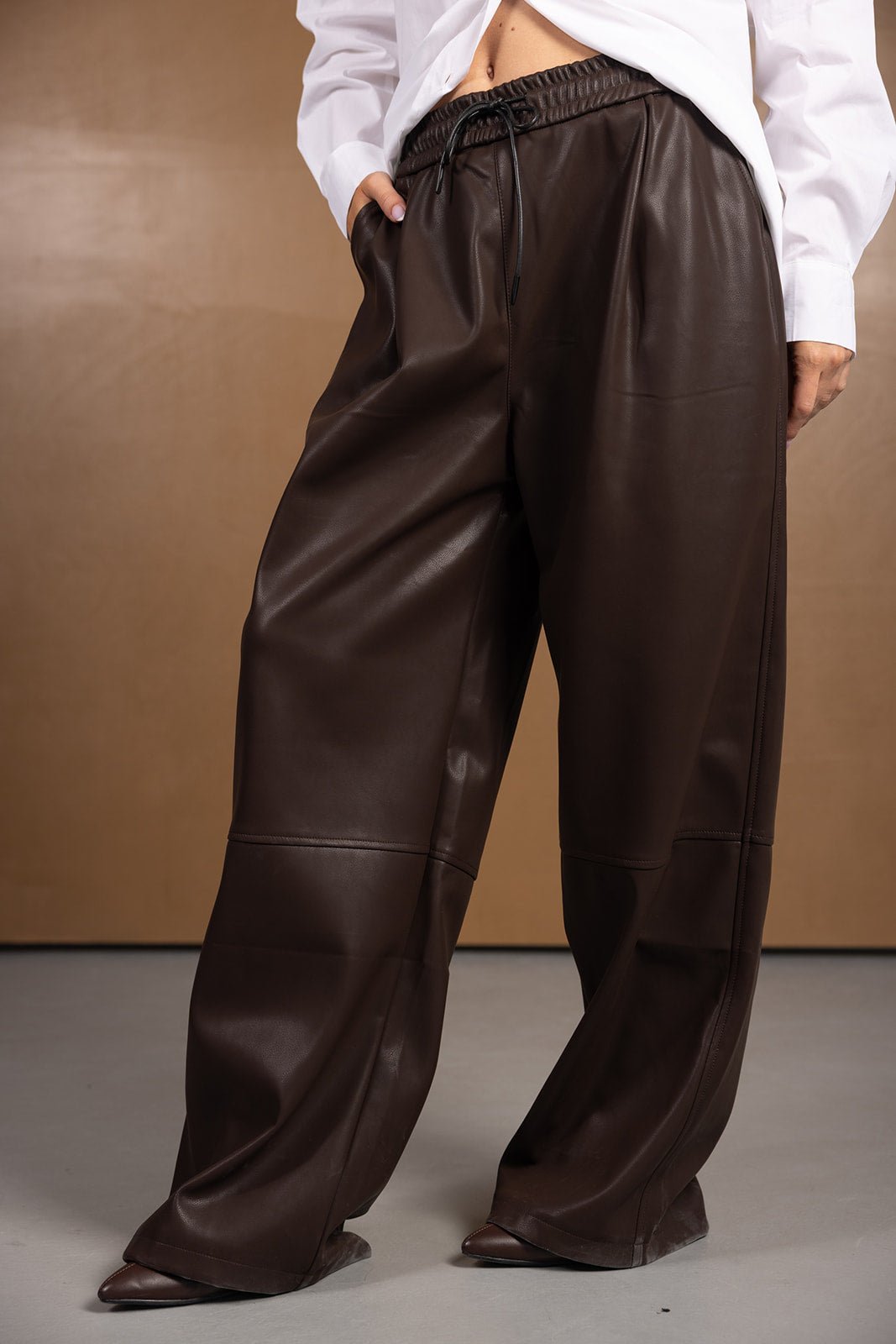 מכנס דמוי עור בן | חום
