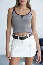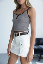גופיית פסים בגזרת קרופ צמודה ומחמיאה מבד איכותי ונעים. בשילוב כפתורים עדינים וכתפיות דקות .