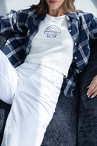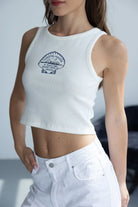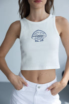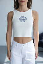 גופייה בטקסטורת ריב ובגזרת קרופ מחמיאה ביותר, בשילוב הדפס טרנדי.