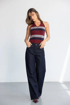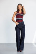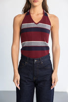 גופיית קולר מבד מחטב ומחמיא, בשילוב הדפס פסים טרנדי לרוחב הגופייה.