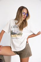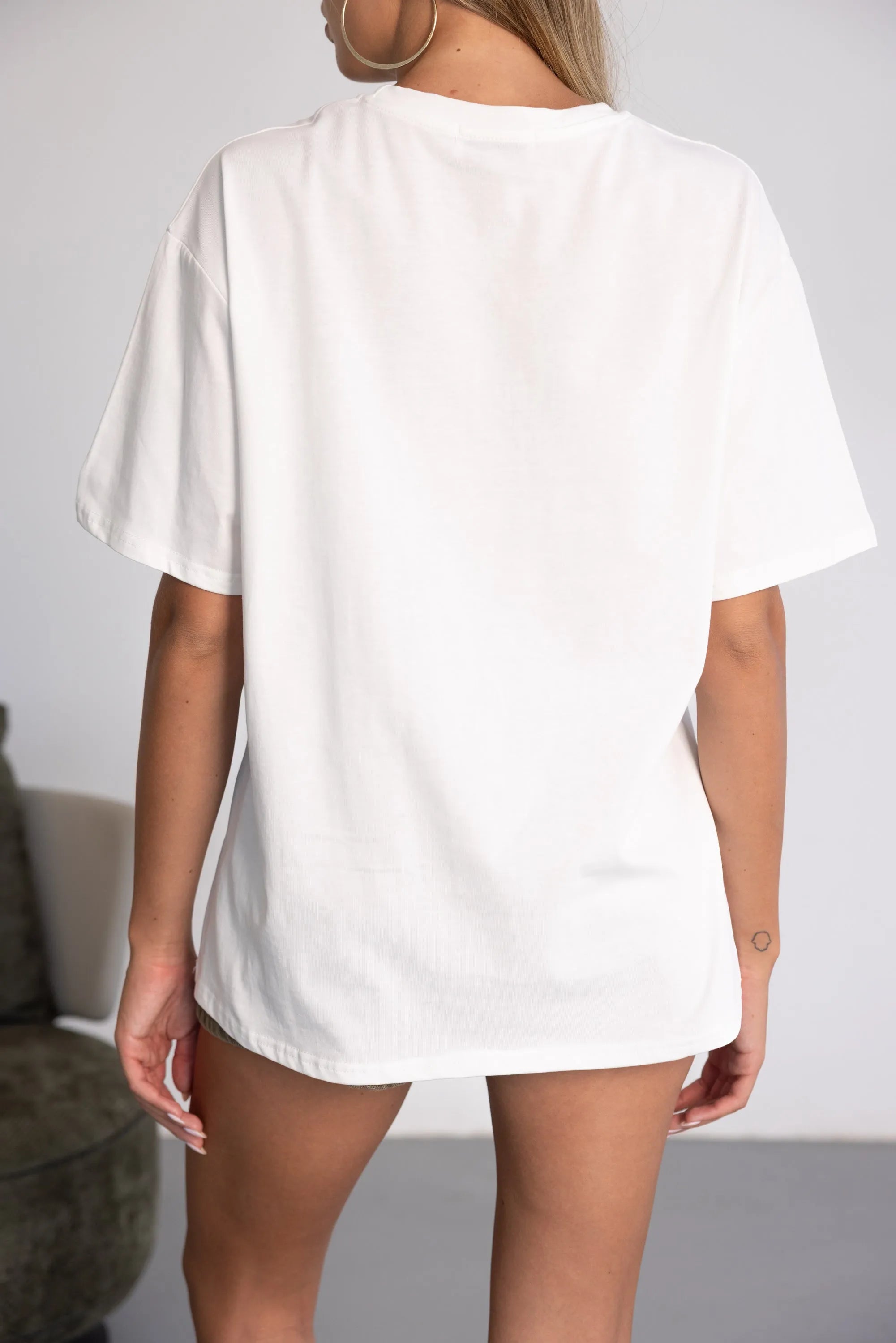 חולצת בייסיק מבד נעים ביותר ובגזרה משוחררת, בשילוב הדפס טרנדי.
