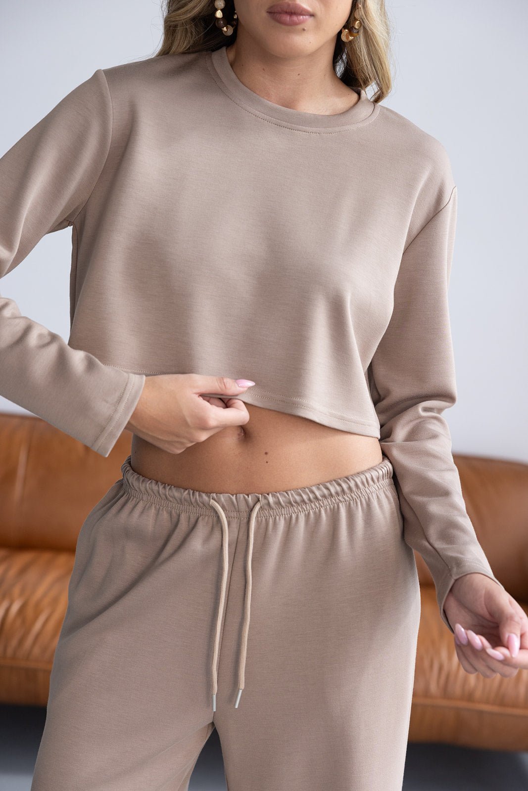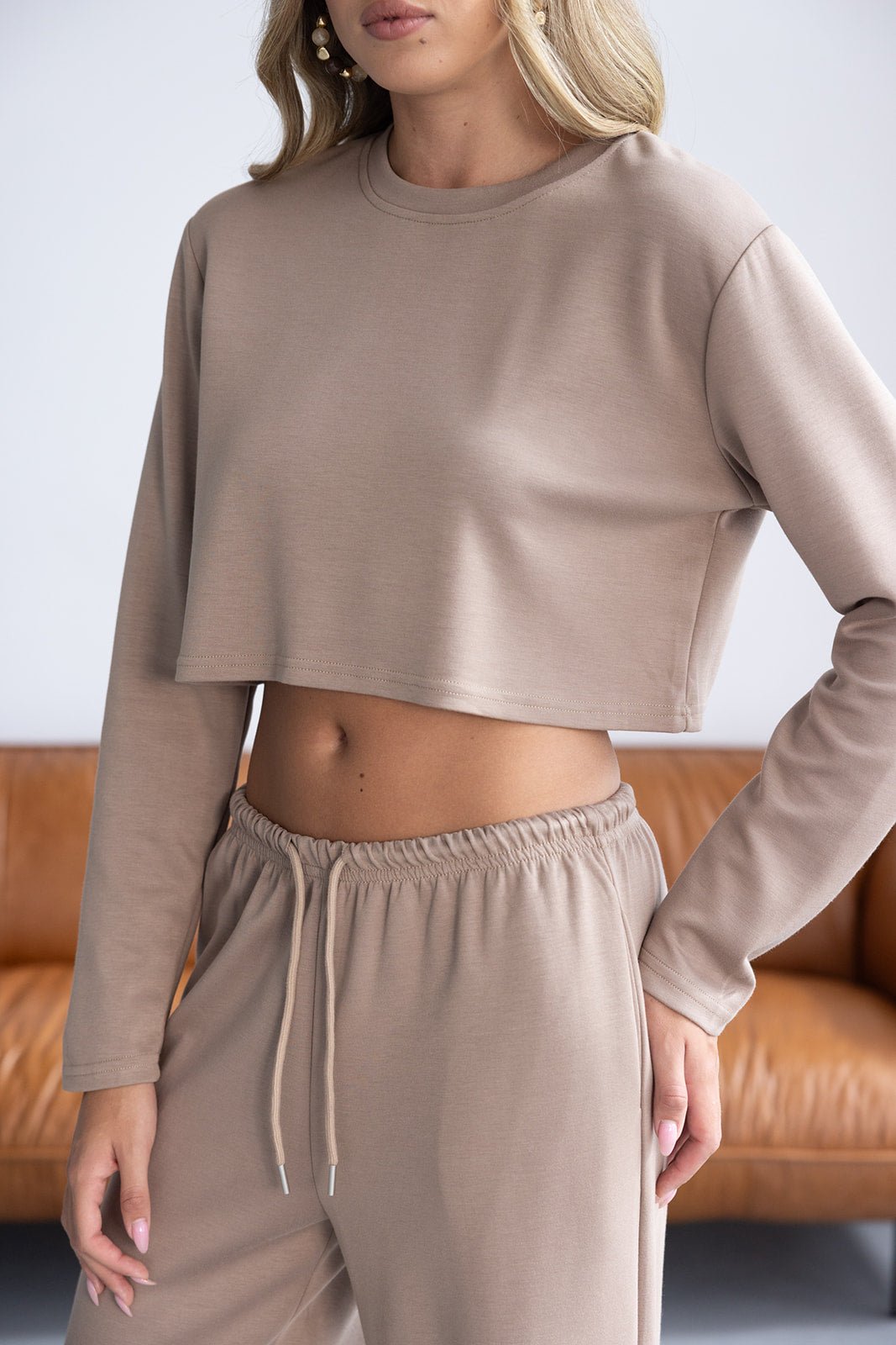 חולצה בגזרת קרופ מחמיאה מבד נעים ביותר. בשילוב שרוולים ארוכים וצווארון ניקי עגול קלאסי.
