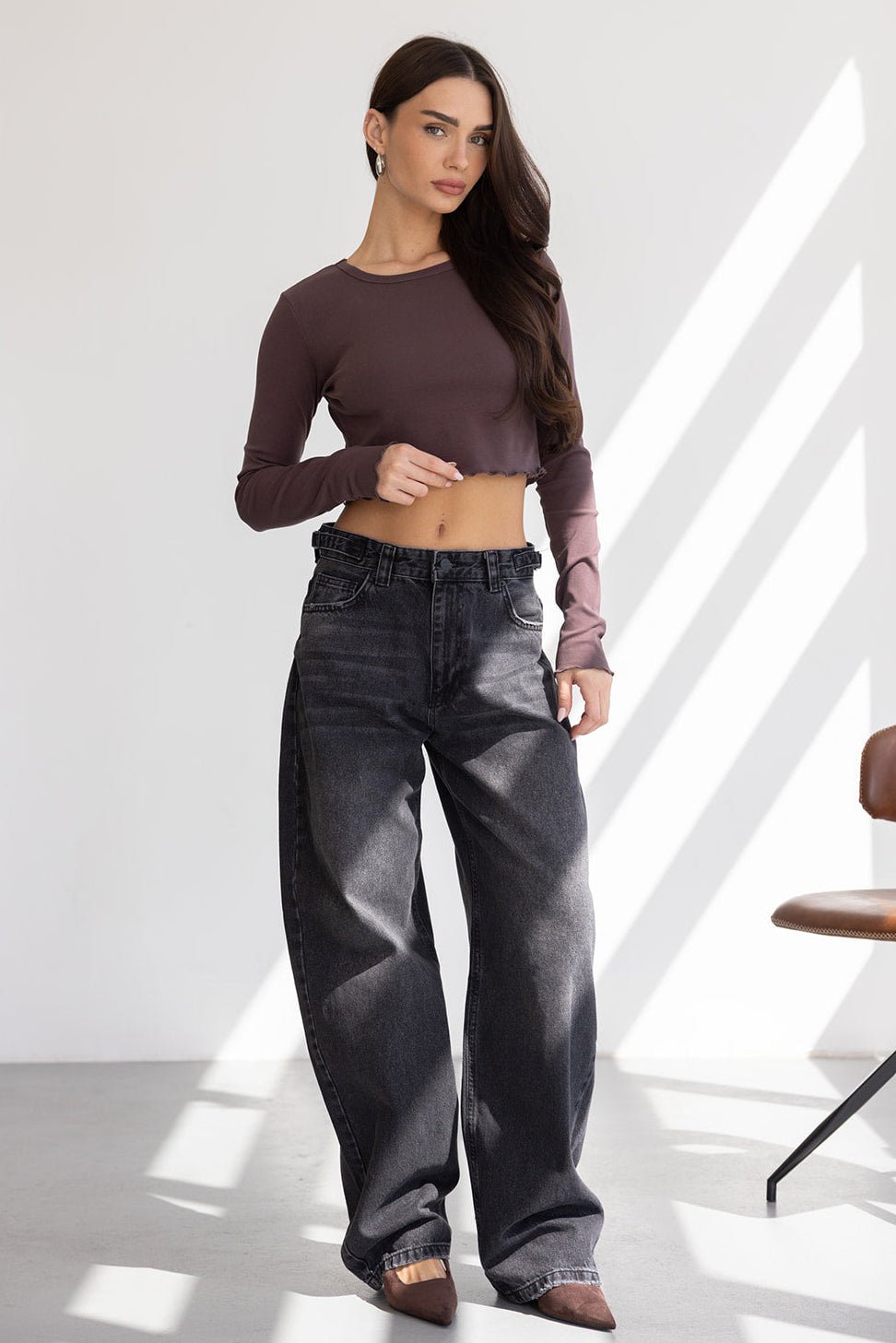 חולצת בייסיק בגזרת קרופ מחמיאה ביותר, בשילוב שרוול ארוך המתאים לעונה וסיומת מלמלה עדינה טרנדית.