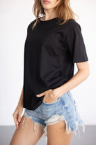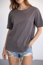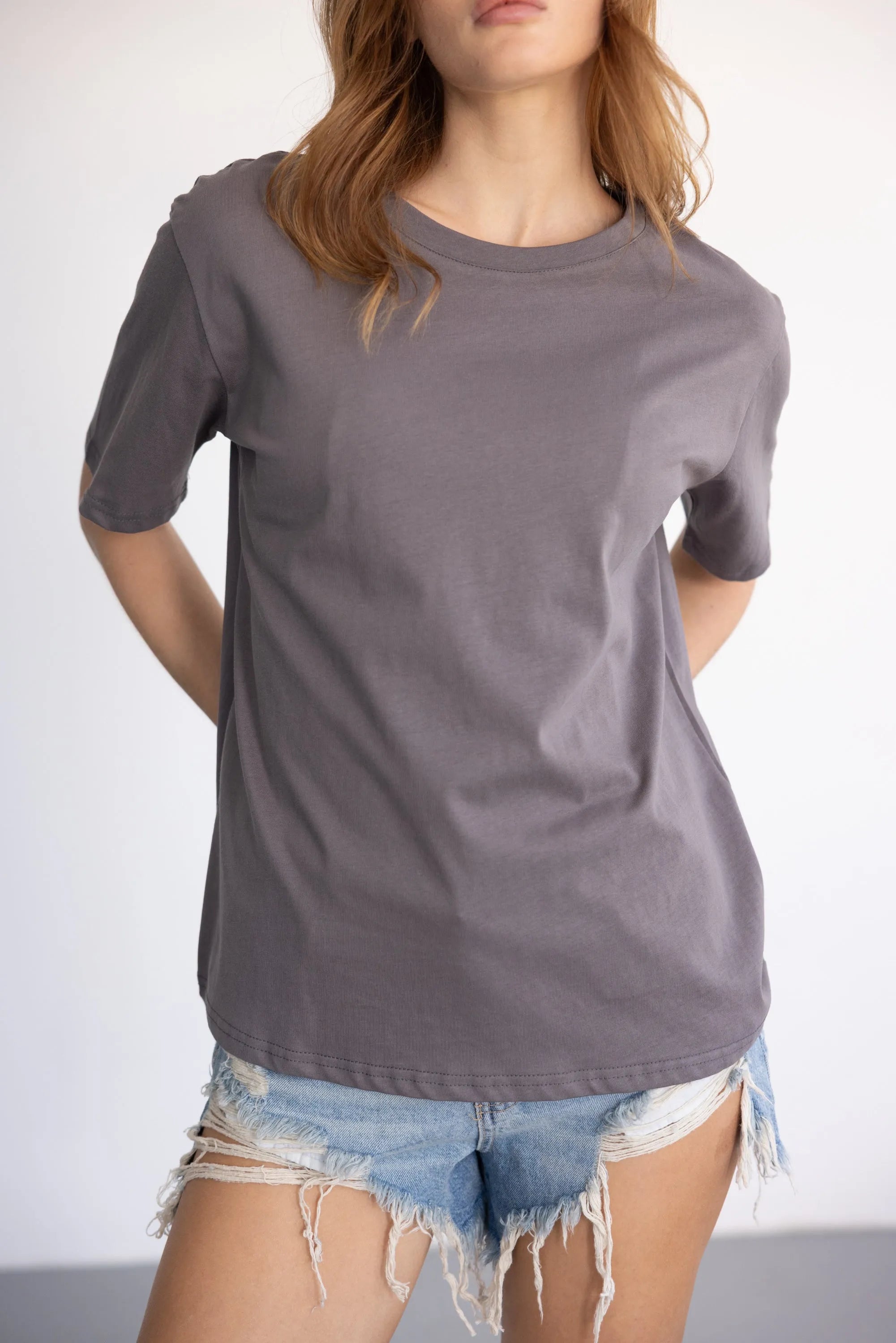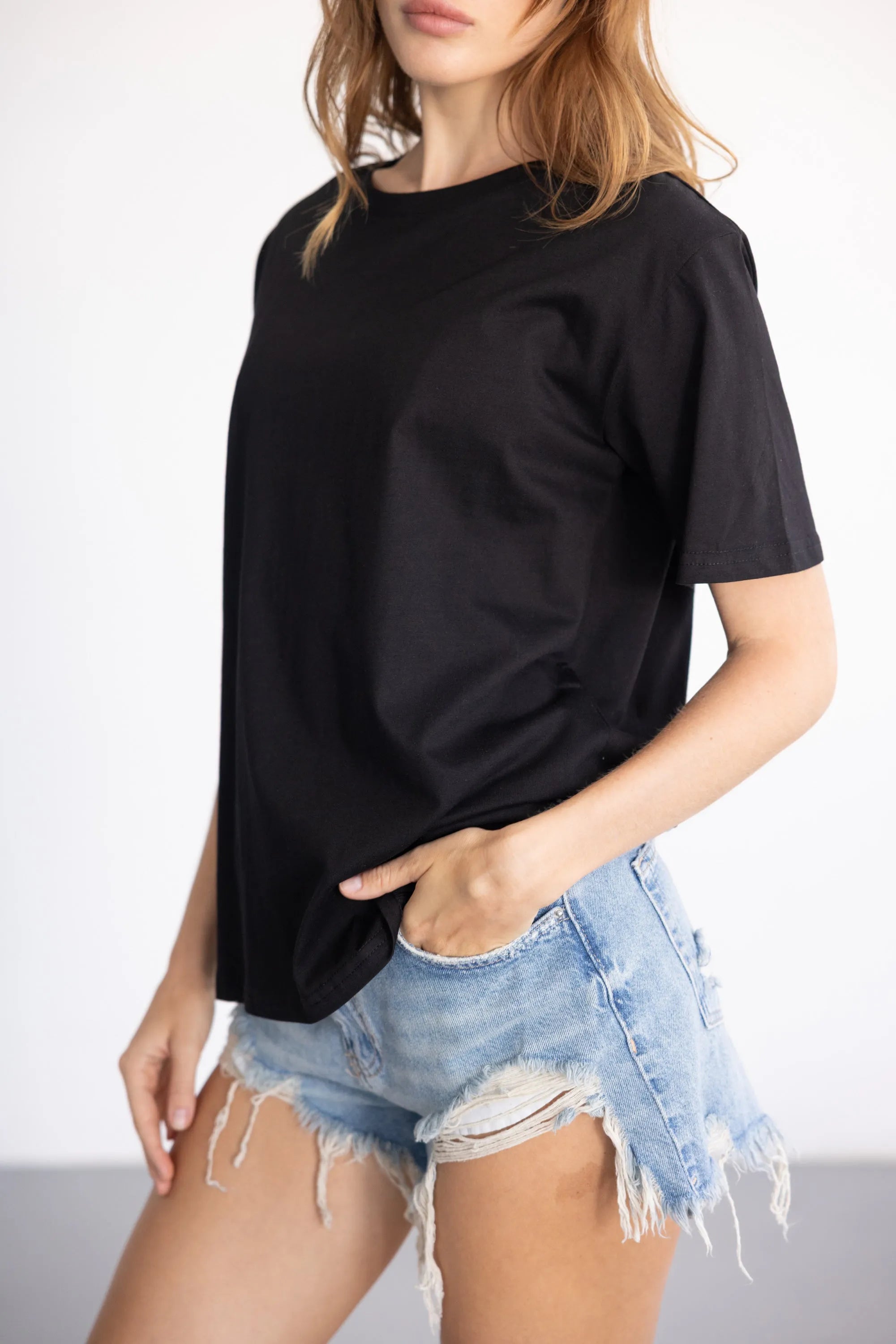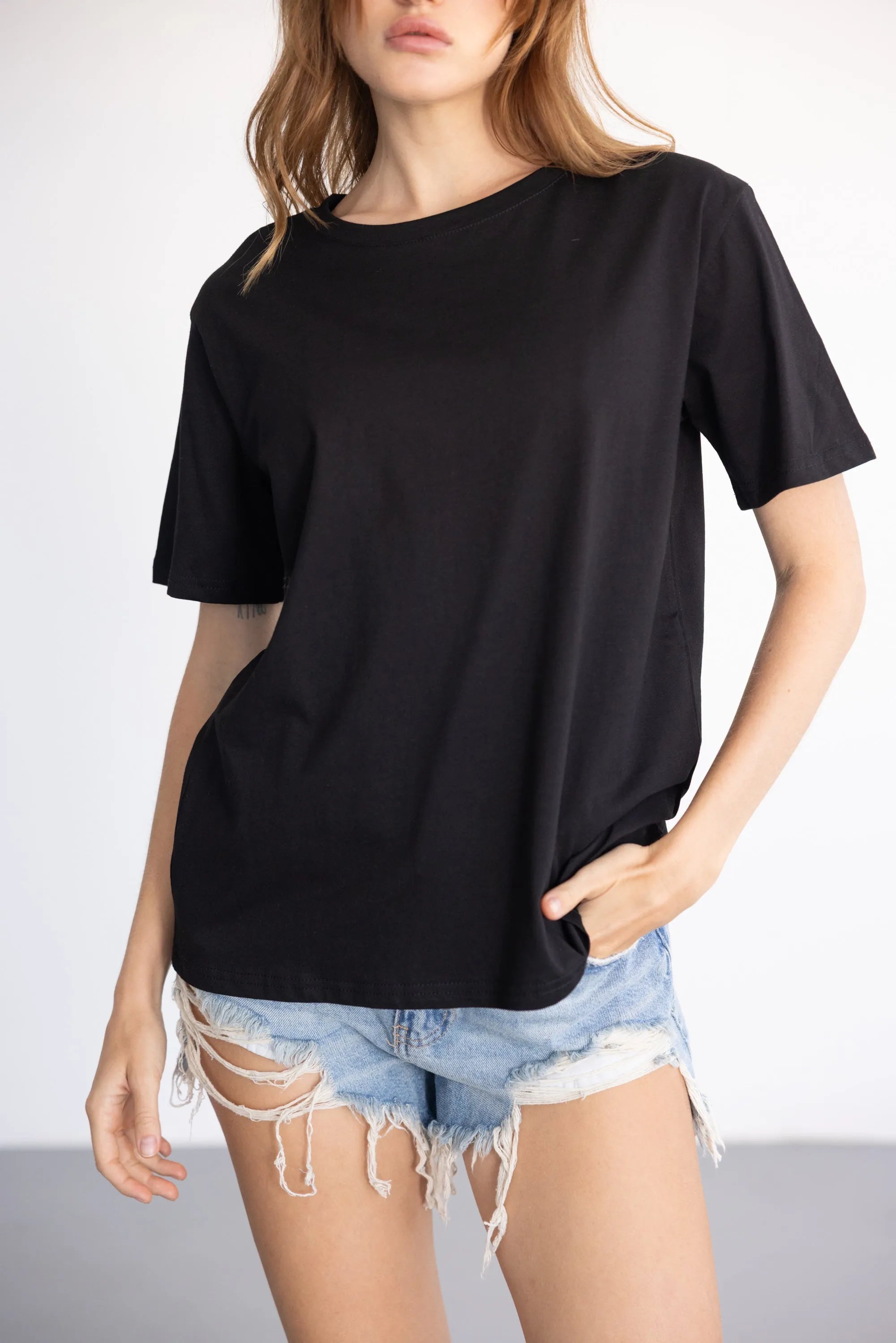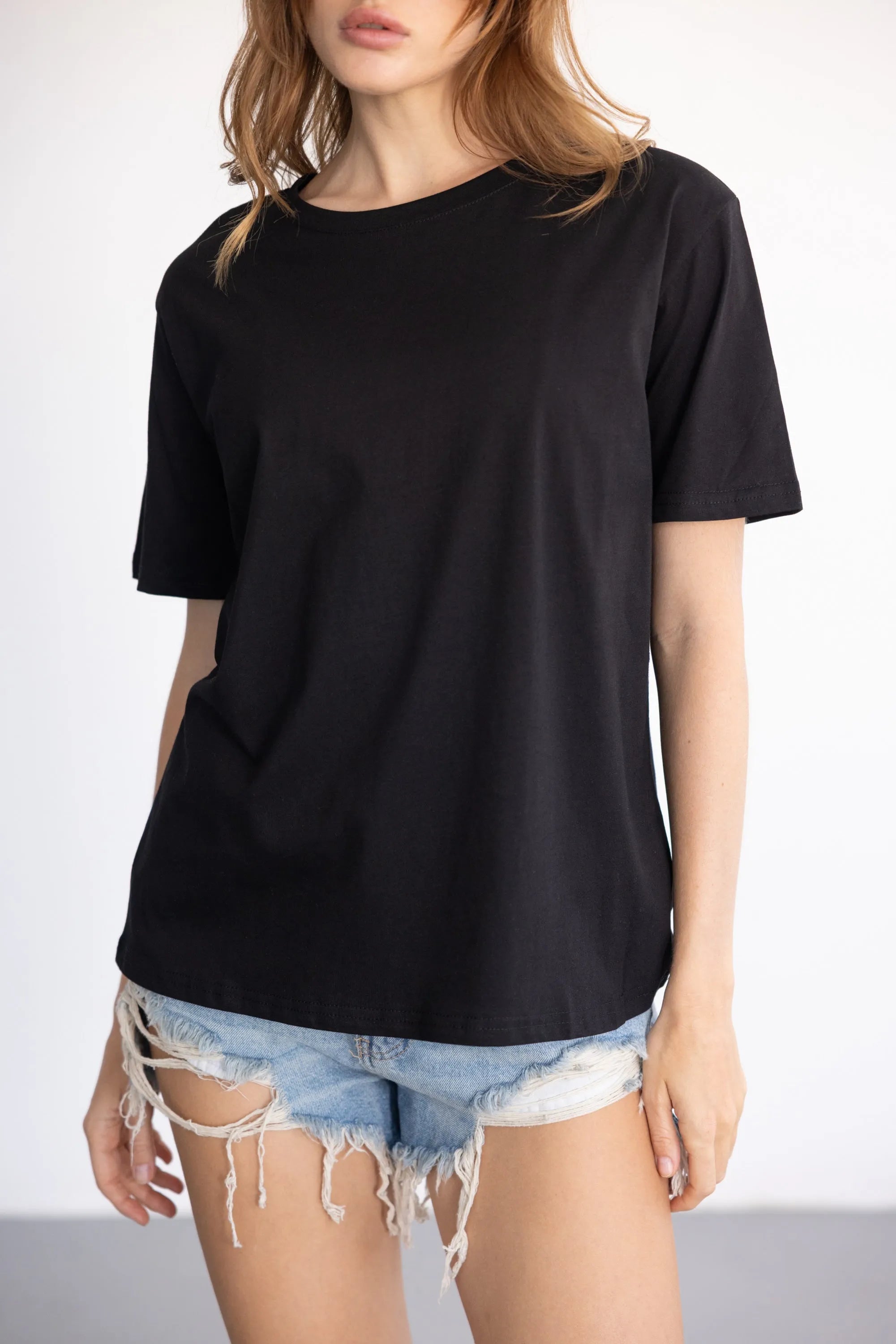חולצת טי שירט בייסיק מדוייקת לכל לוק, בגזרה משוחררת ומחמיאה. בשילוב צווארון עגול קלאסי ובד נעים ואיכותי.