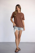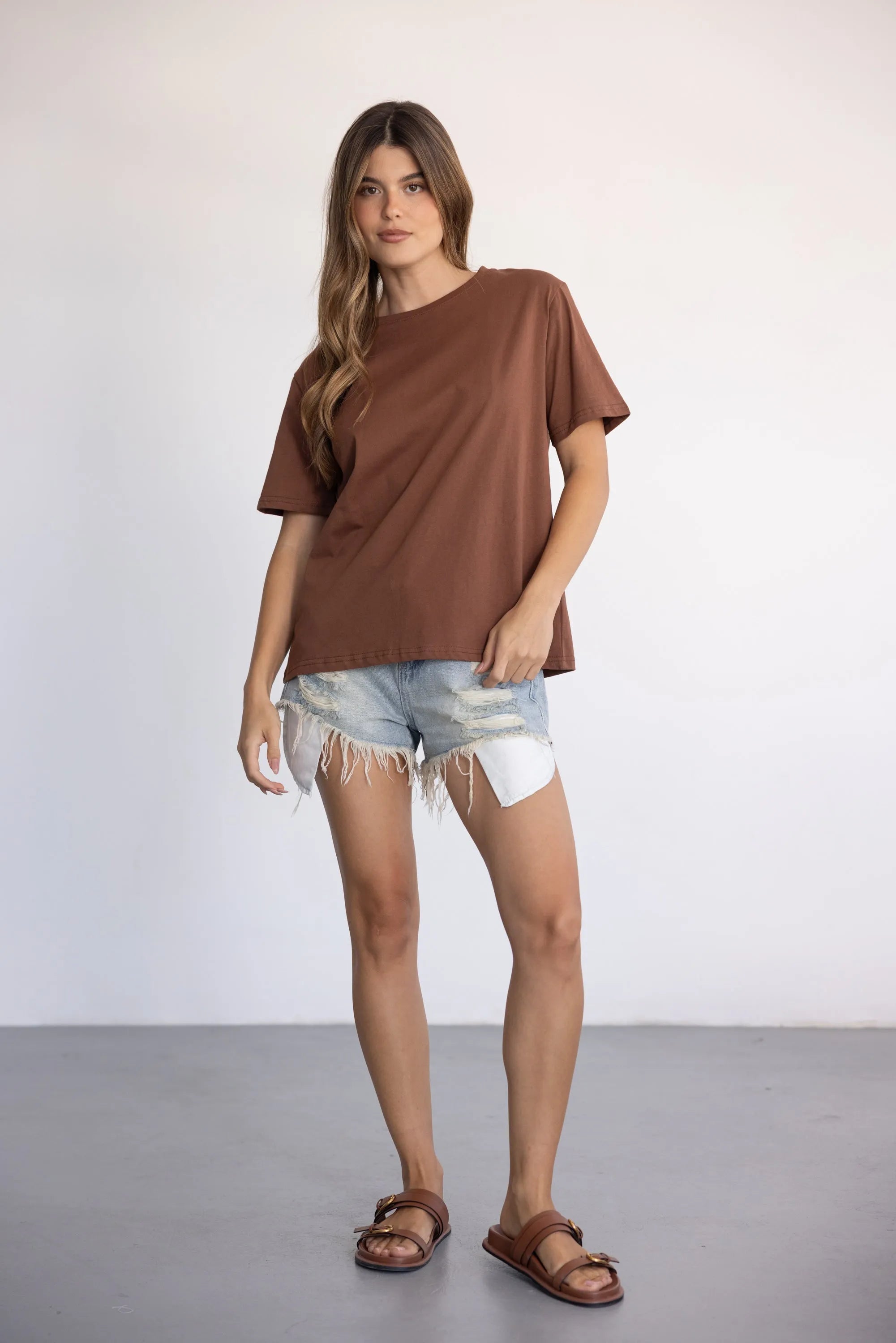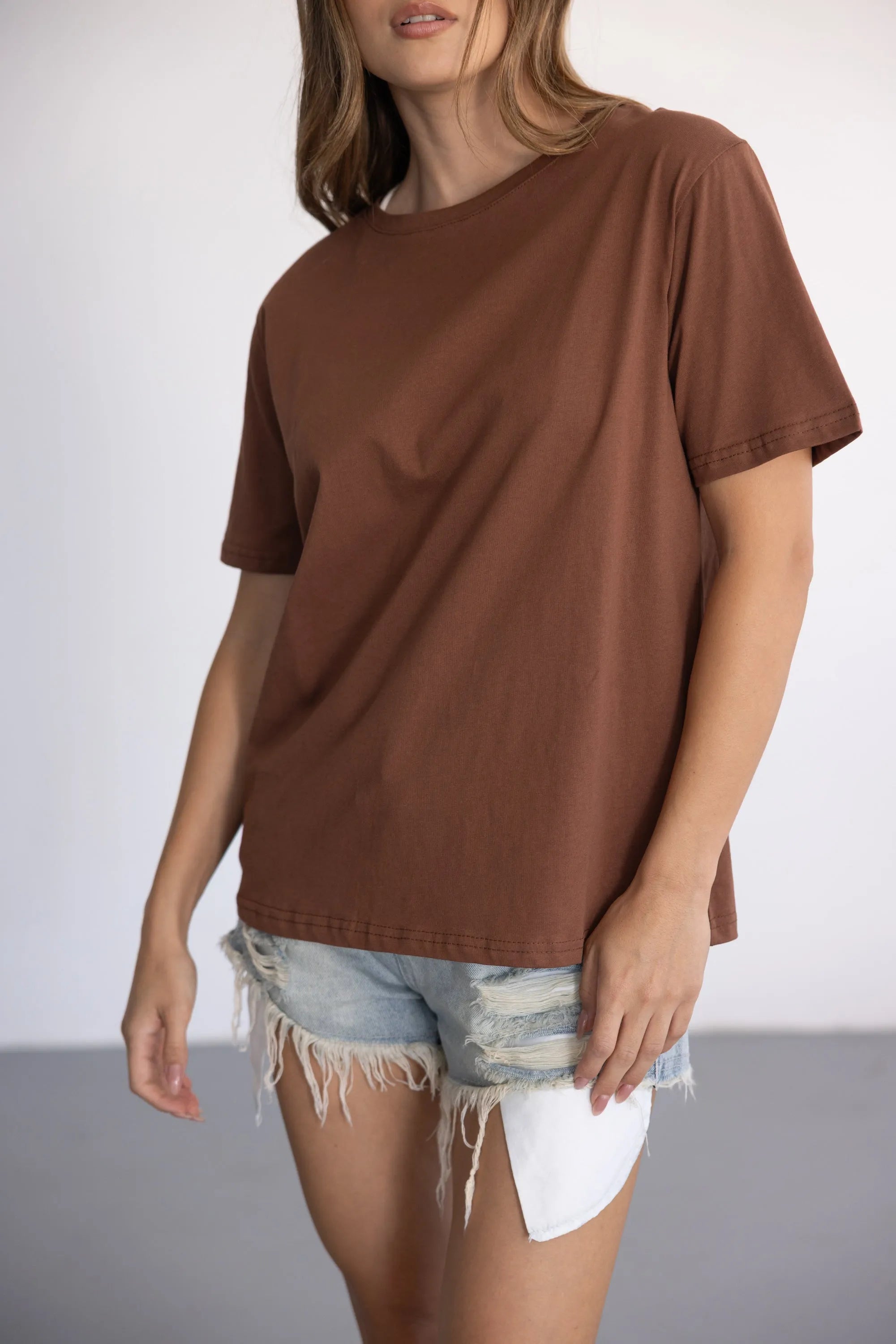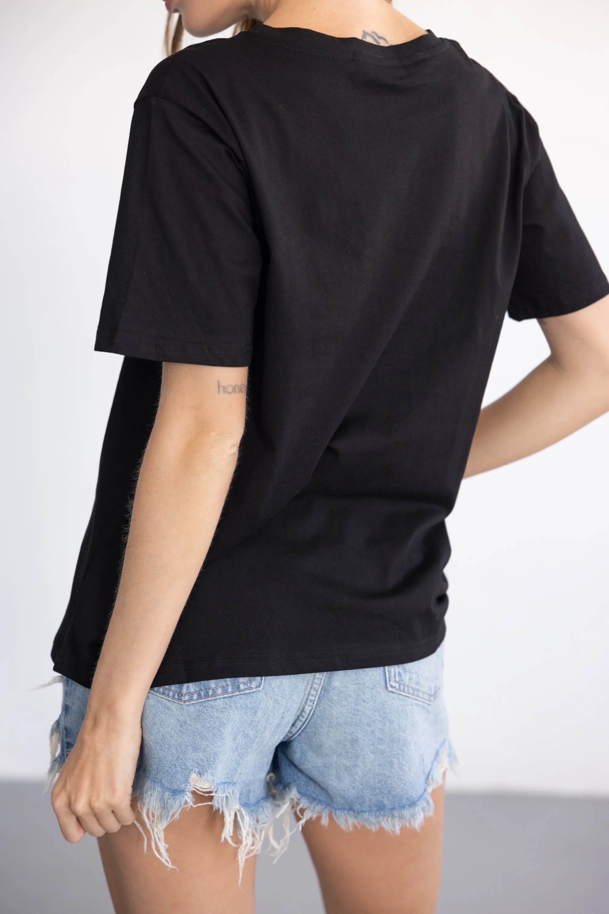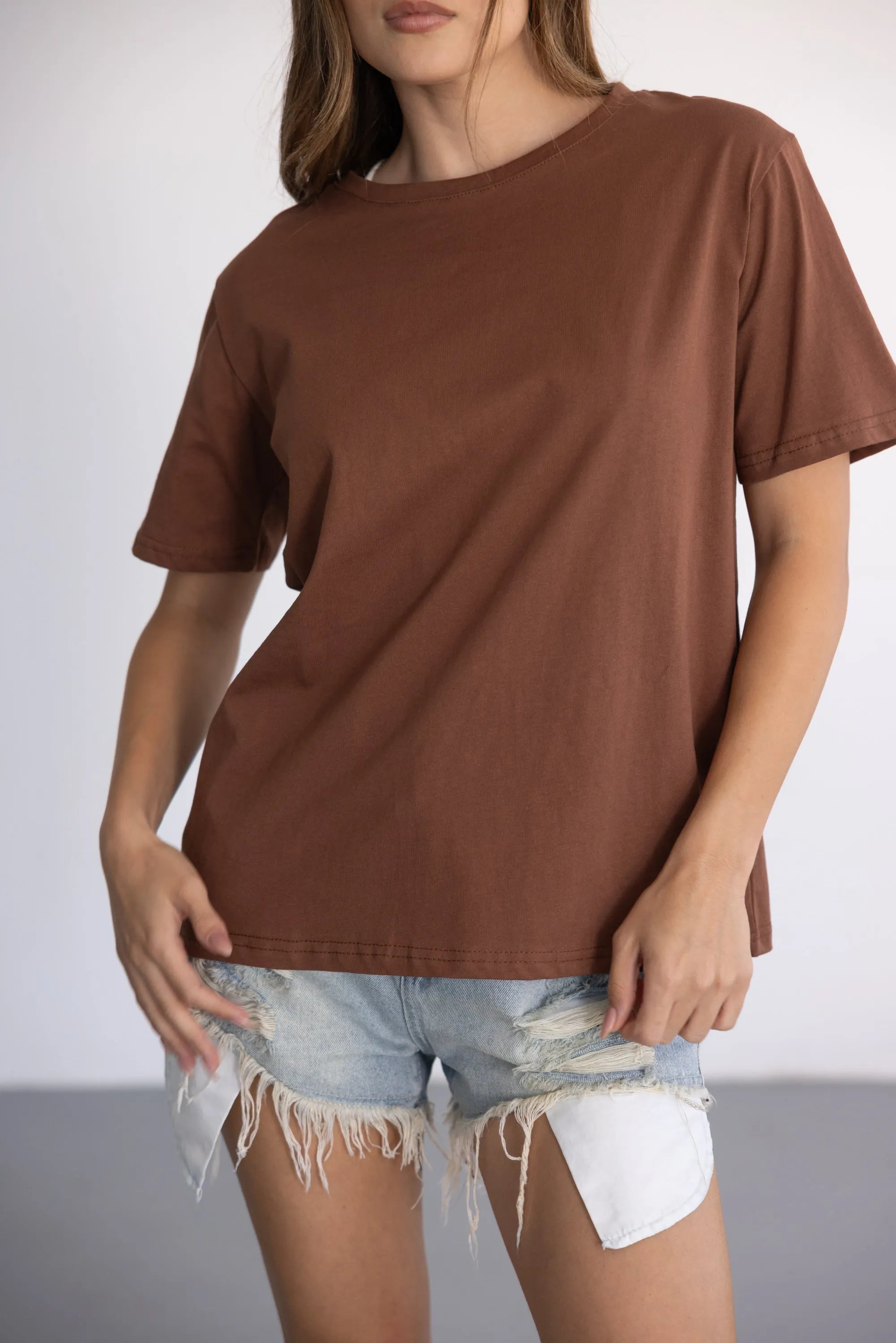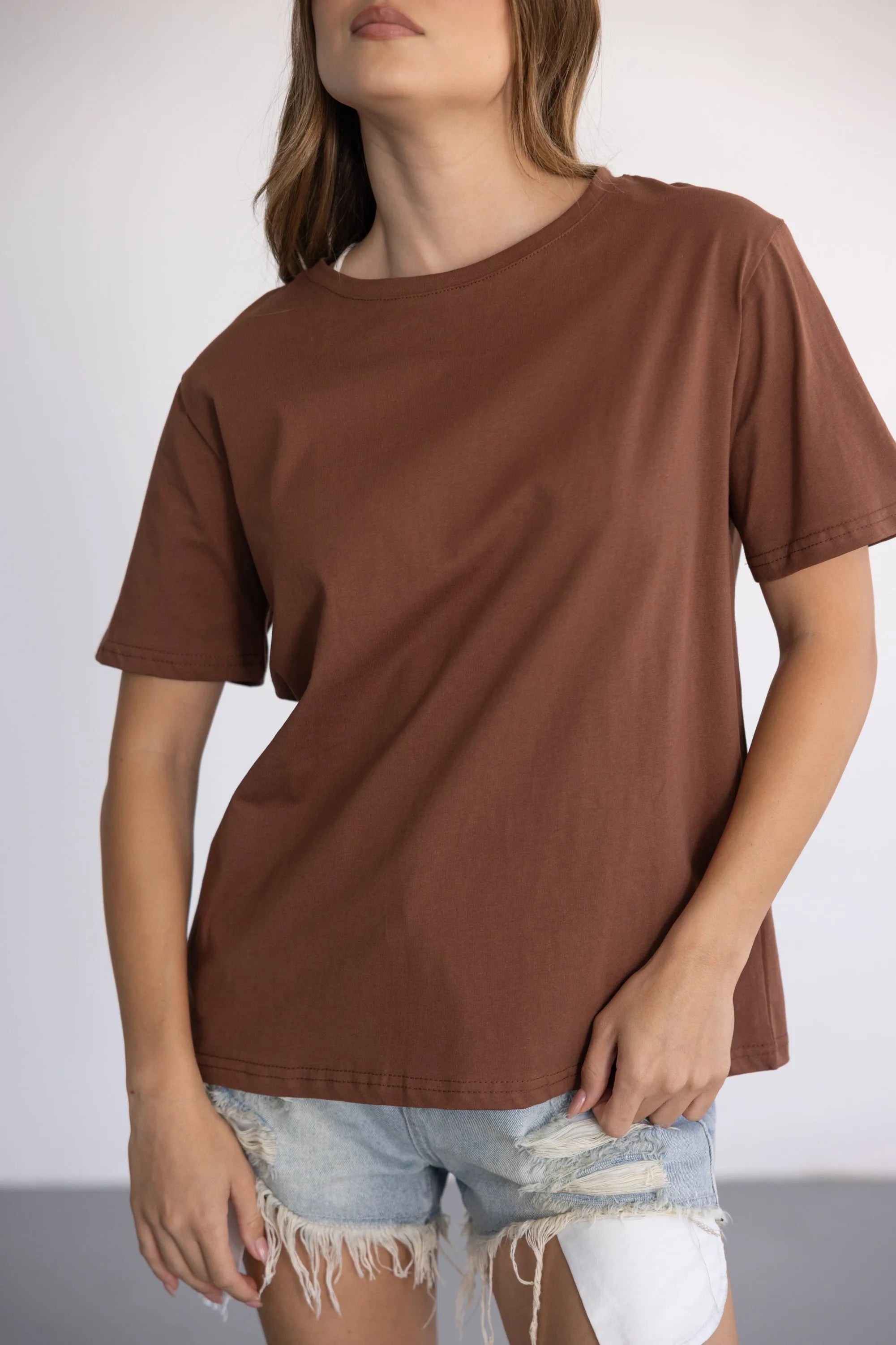 חולצת טי שירט בייסיק מדוייקת לכל לוק, בגזרה משוחררת ומחמיאה. בשילוב צווארון עגול קלאסי ובד נעים ואיכותי.