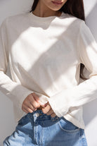 חולצת בייסיק עם שרוולים אורכים, עשויה מבד רך ונעים למגע. בעלת גזרה מעט משוחררת וצווארון עגול קלאסי.