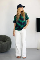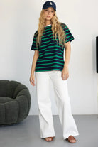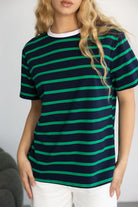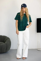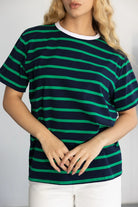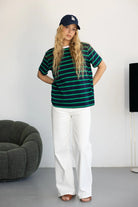 חולצת בייסיק בגזרה רחבה מעט ובד איכותי ונעים ביותר לעונה. בשילוב פסים לרוחב החולצה.