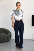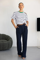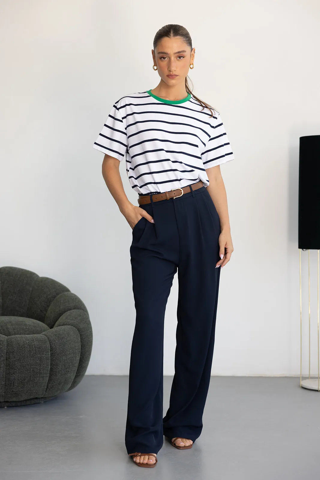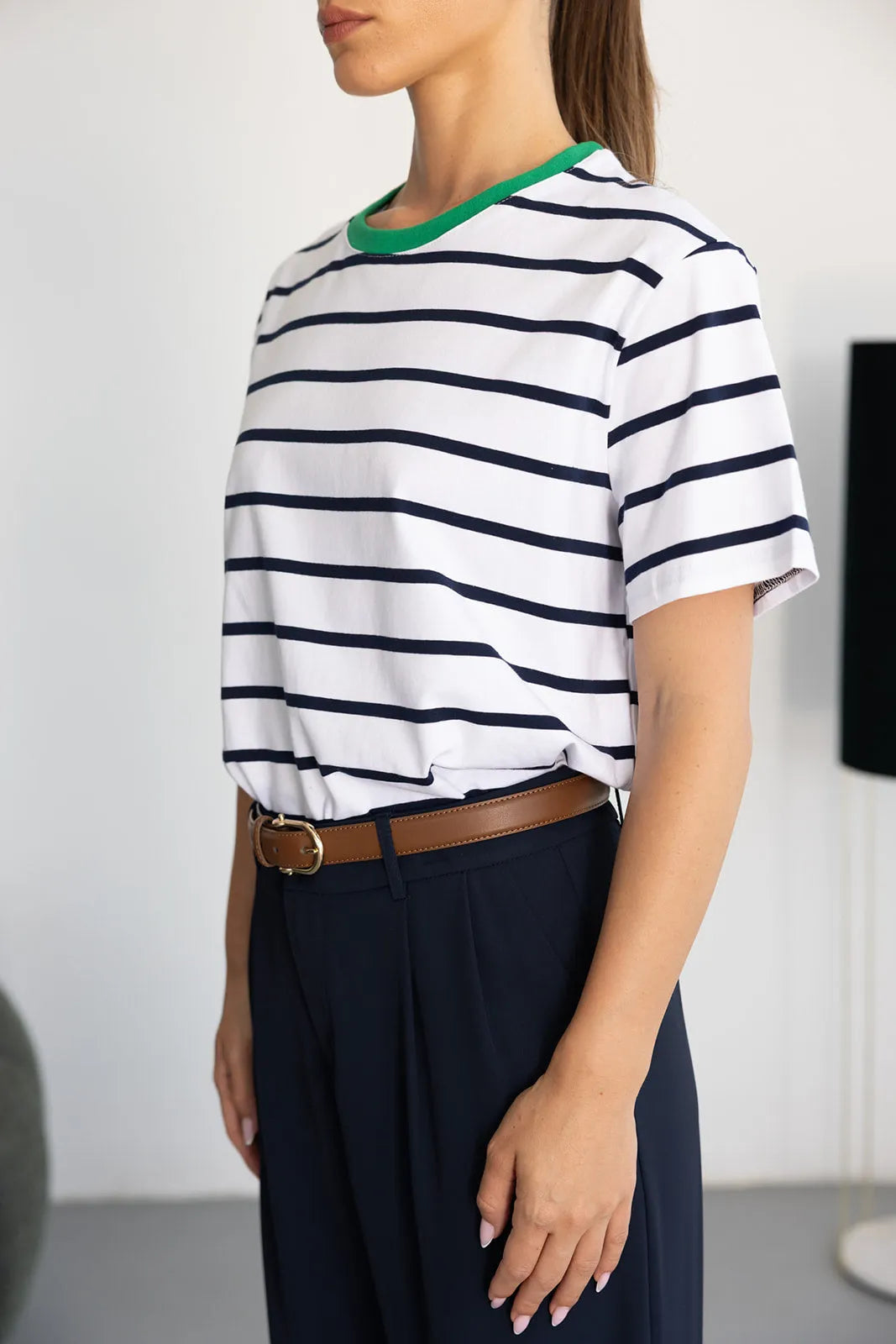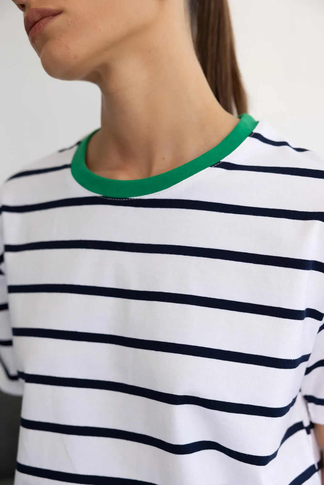 חולצת בייסיק בגזרה רחבה מעט ובד איכותי ונעים ביותר לעונה. בשילוב פסים לרוחב החולצה.