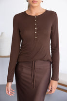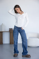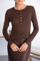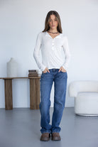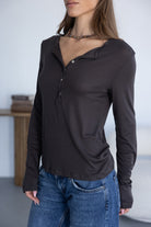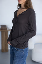 חולצת בייסיק דקיקה ומעט שקפקפה, עם שרוולים ארוכים המתאימים לעונה, כפתורים וצווארון ניקי עגול קלאסי. החולצה מגיעה בצבעים מדוייקים לעונות הקרובות.