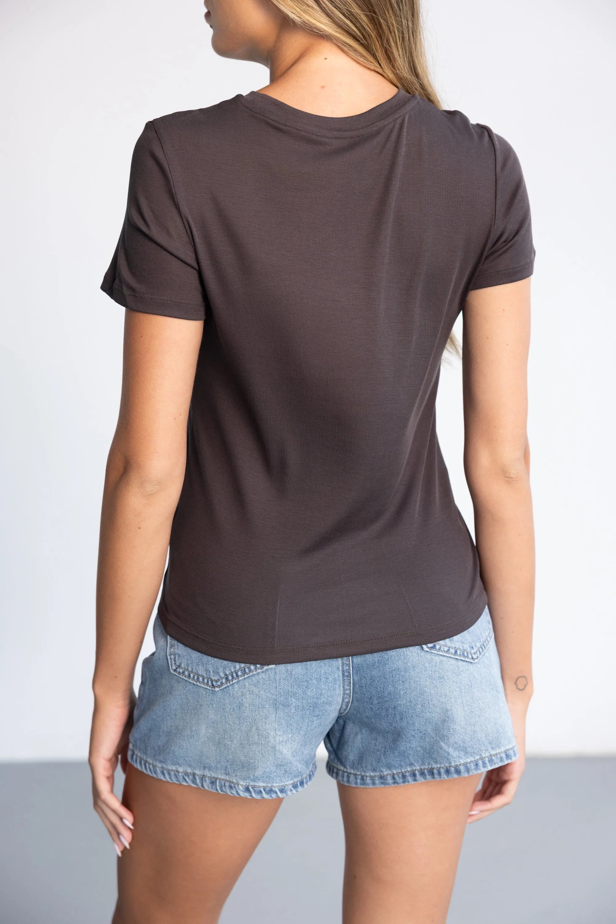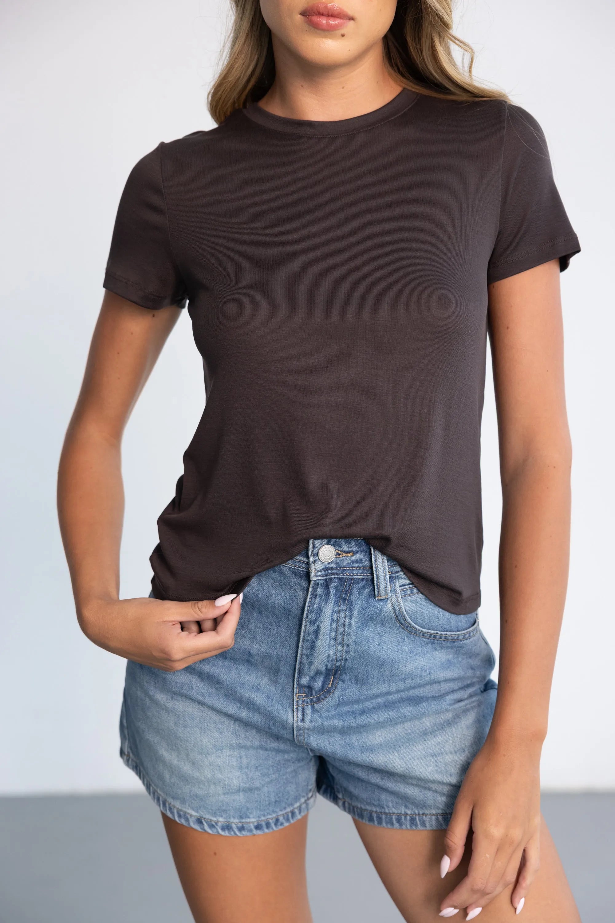 חולצת בייסיק מבד נעים ביותר ומעט שקפקף למראה טרנדי, בגזרה משוחררת ומחמיאה.