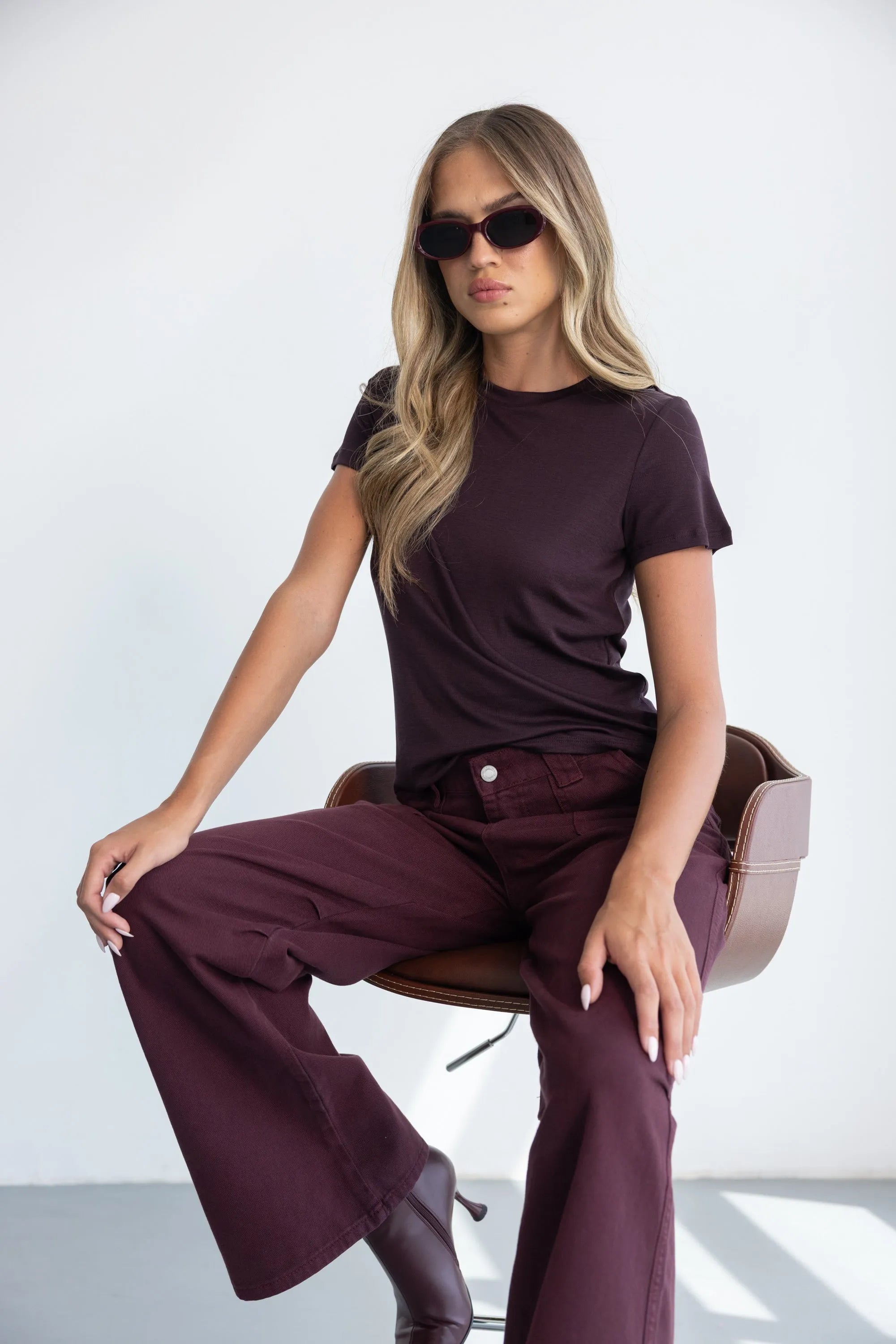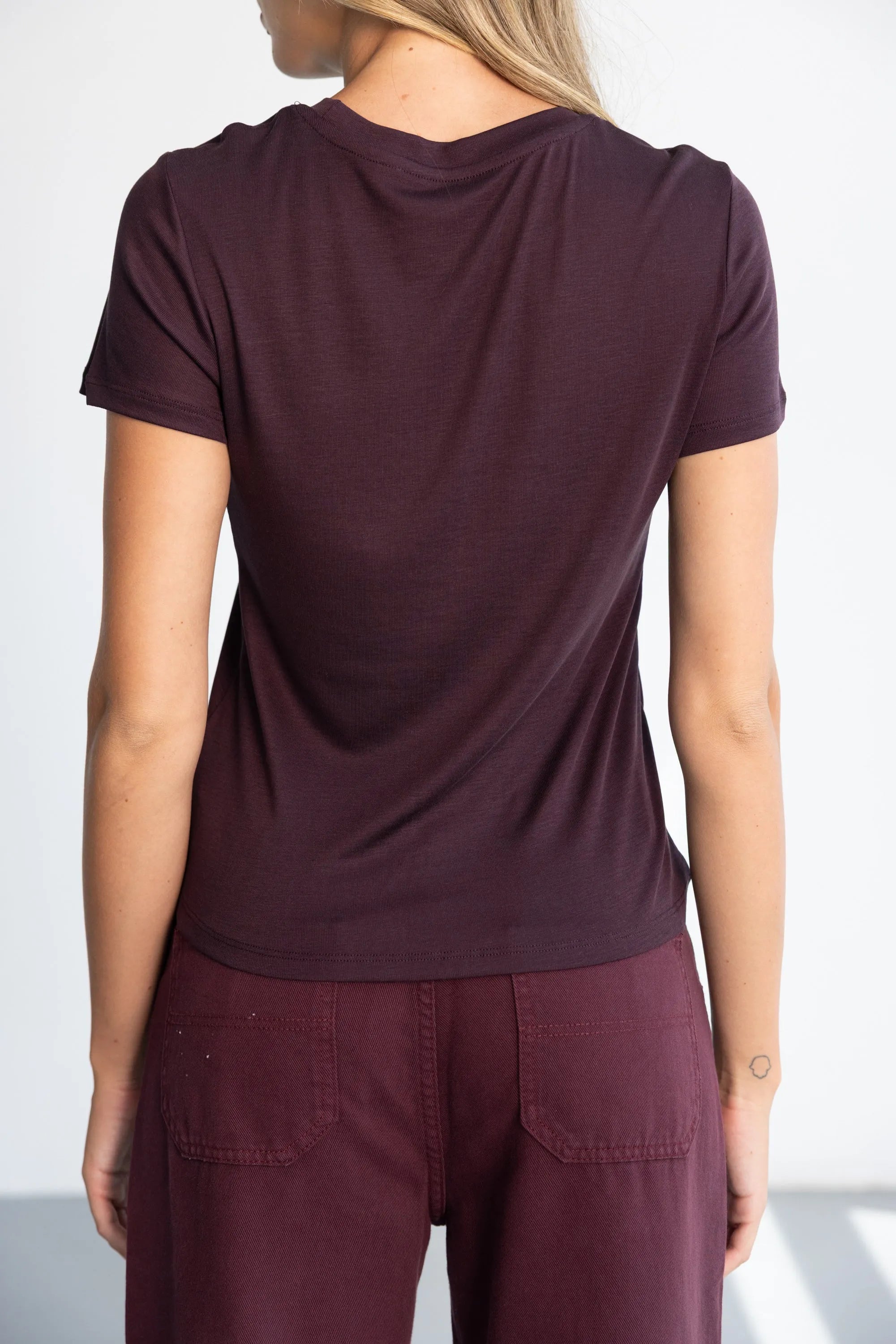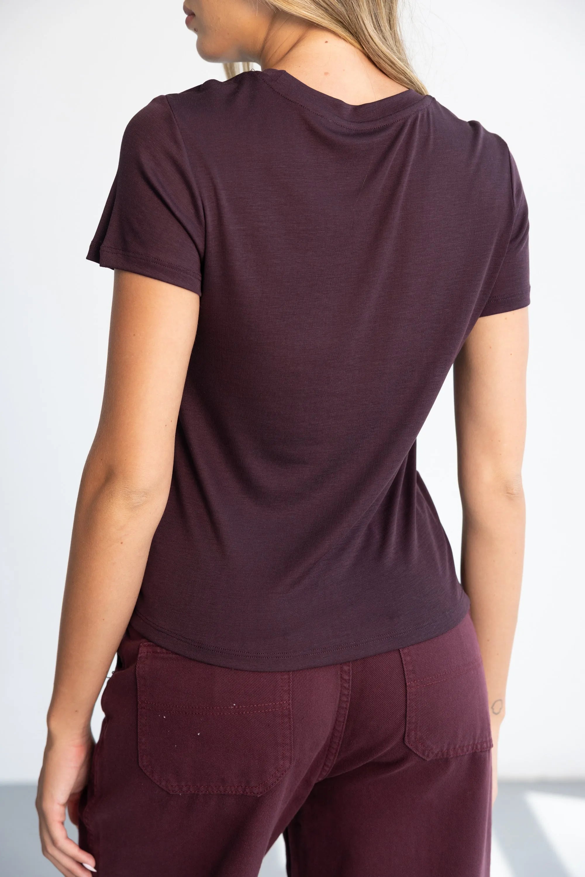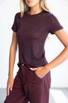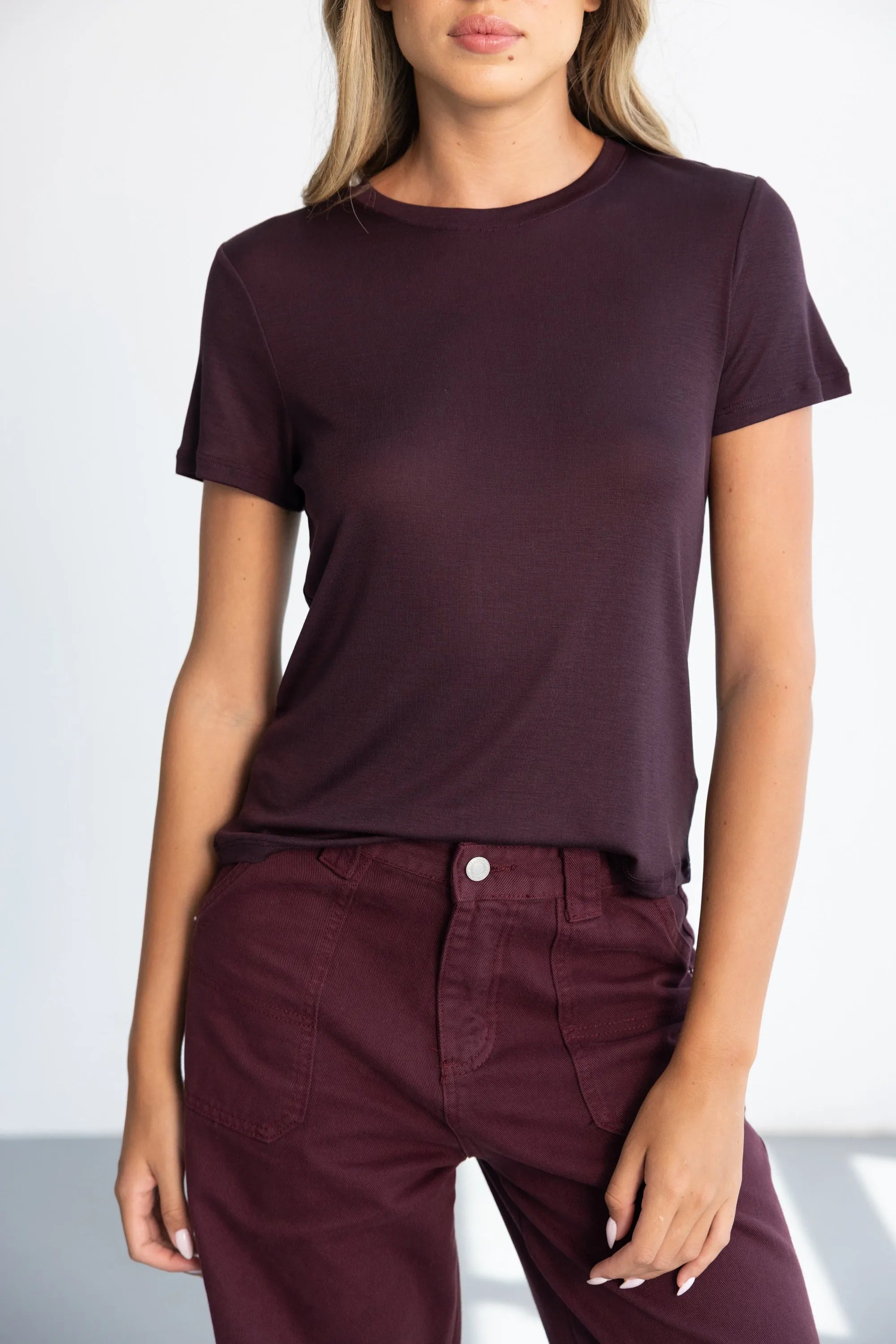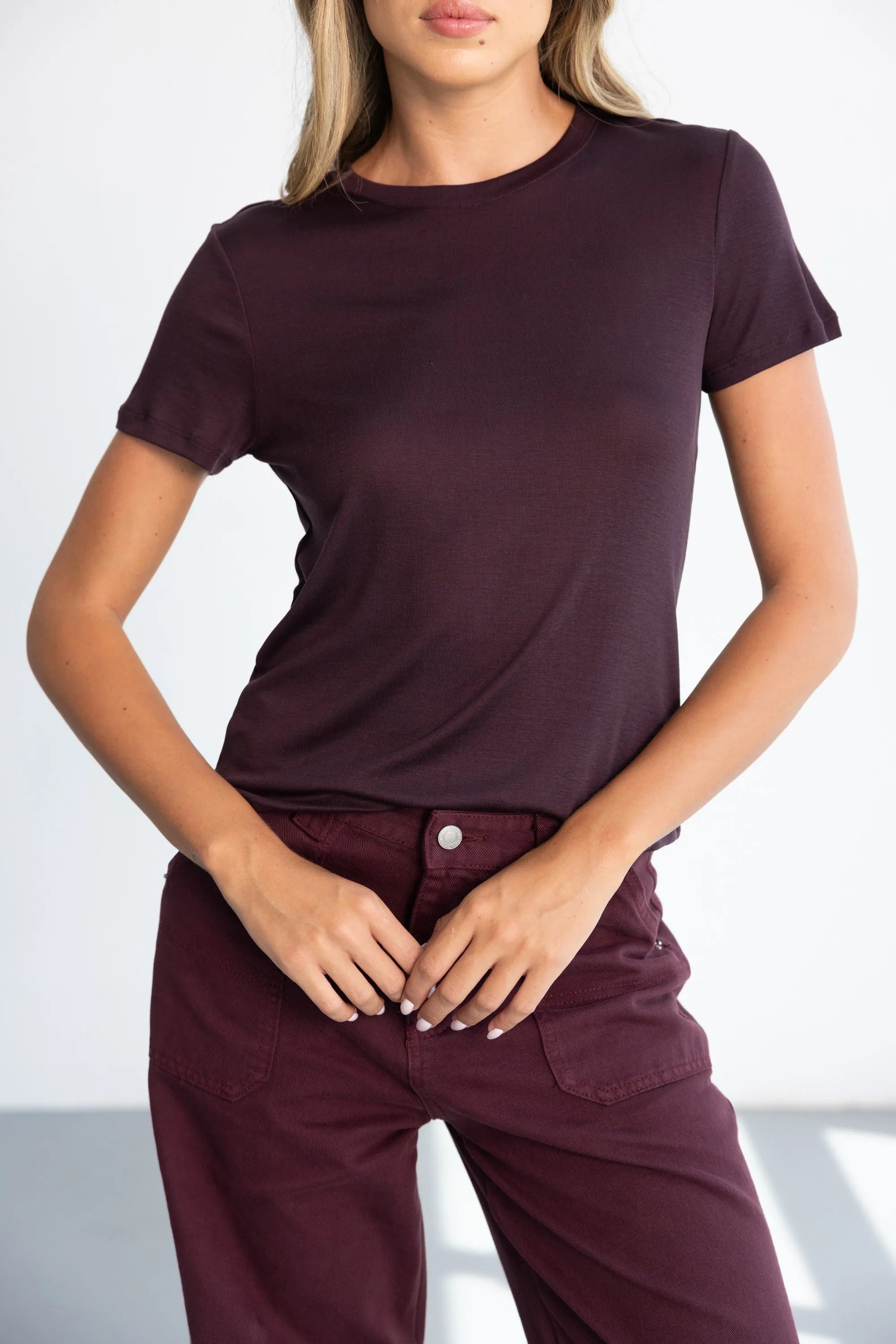 חולצת בייסיק מבד נעים ביותר ומעט שקפקף למראה טרנדי, בגזרה משוחררת ומחמיאה.