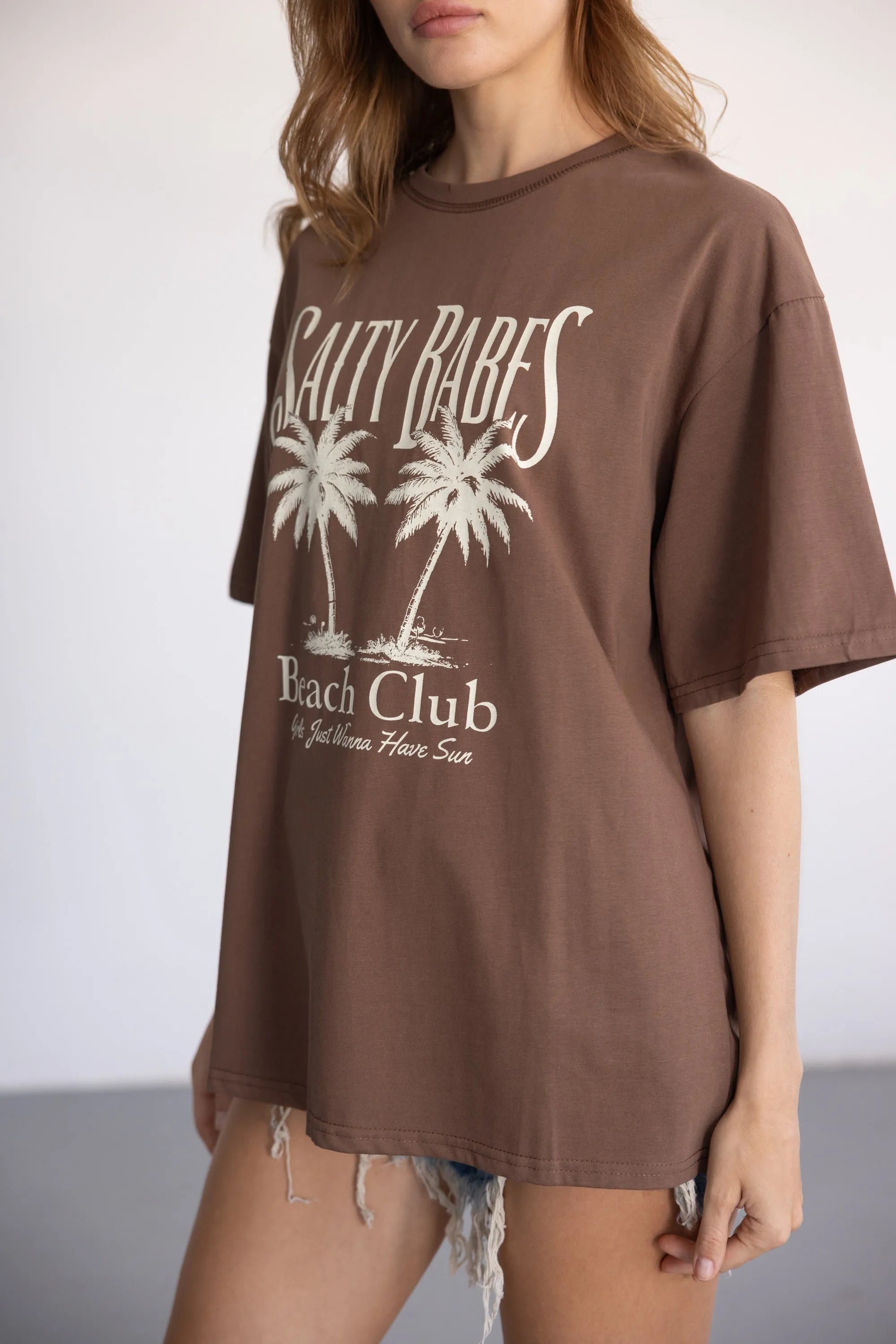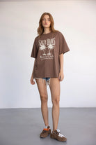 חולצת טי שירט בגזרה משוחררת ומבד נעים ואיכותי, בשילוב צווארון עגול קלאסי והדפס טרנדי.