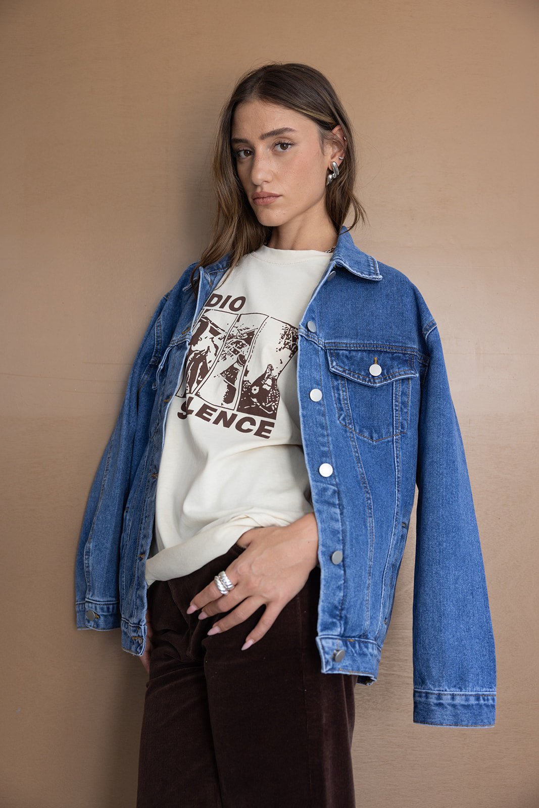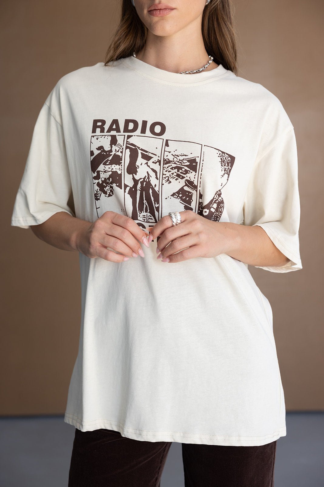 חולצת בייסיק מבד נעים ביותר ובגזרה משוחררת, בשילוב הדפס טרנדי.