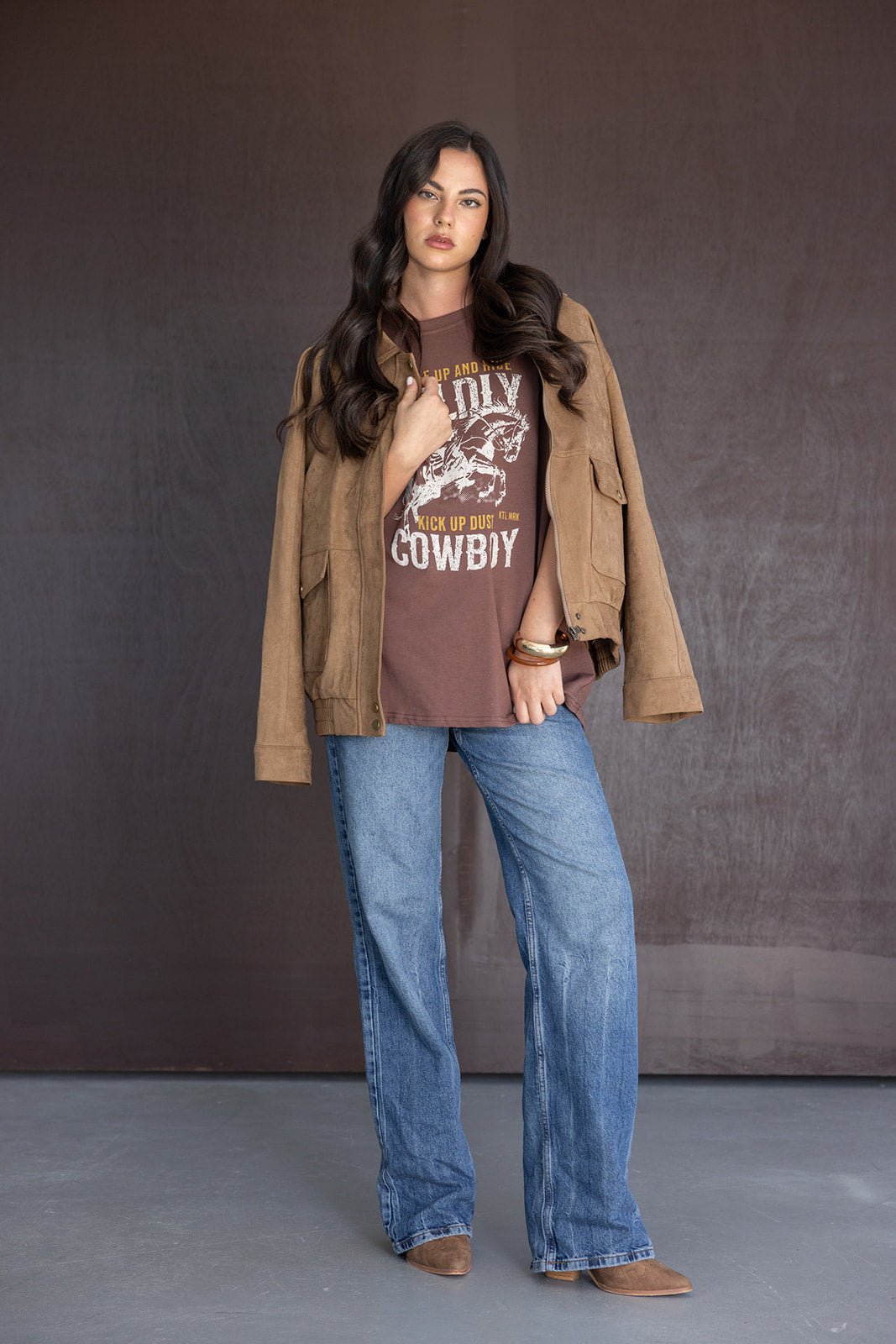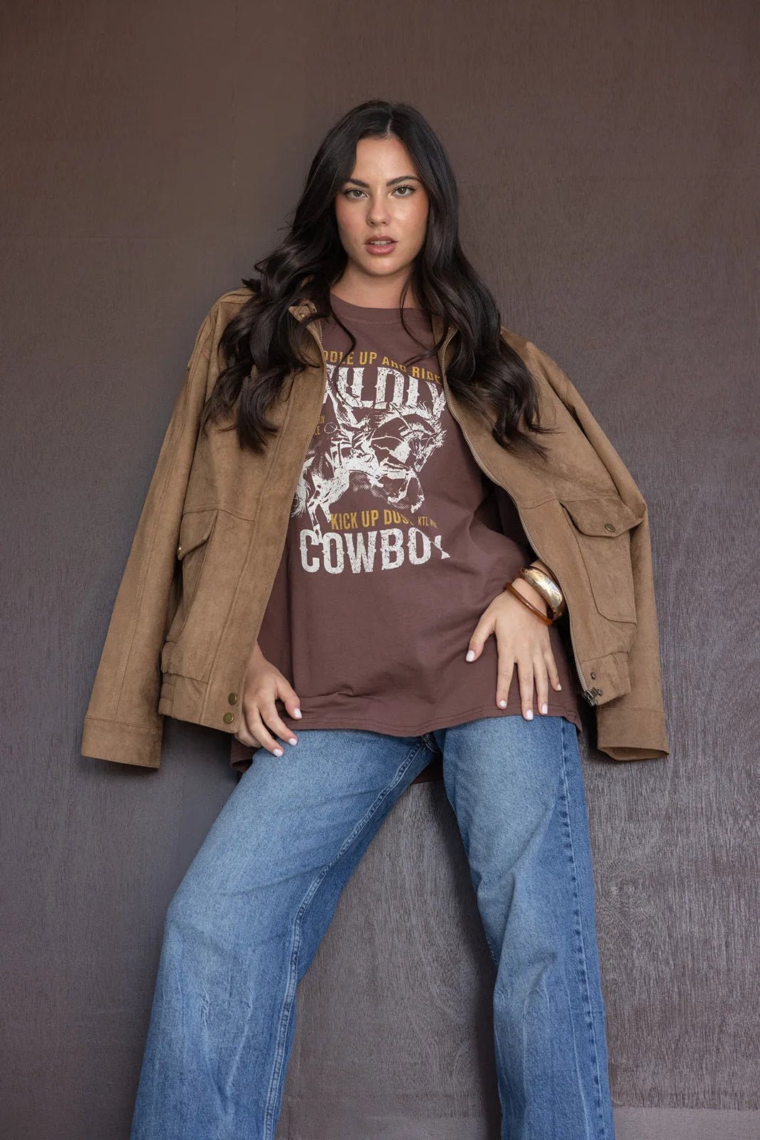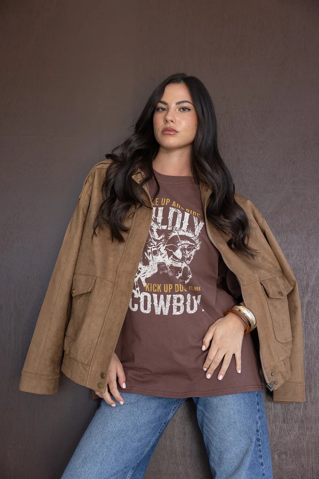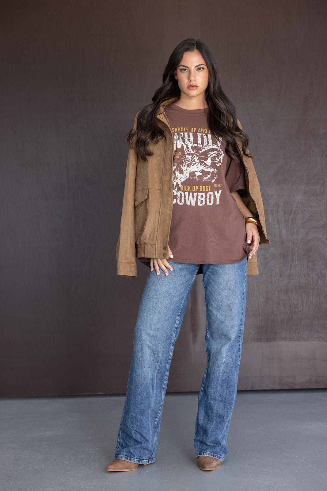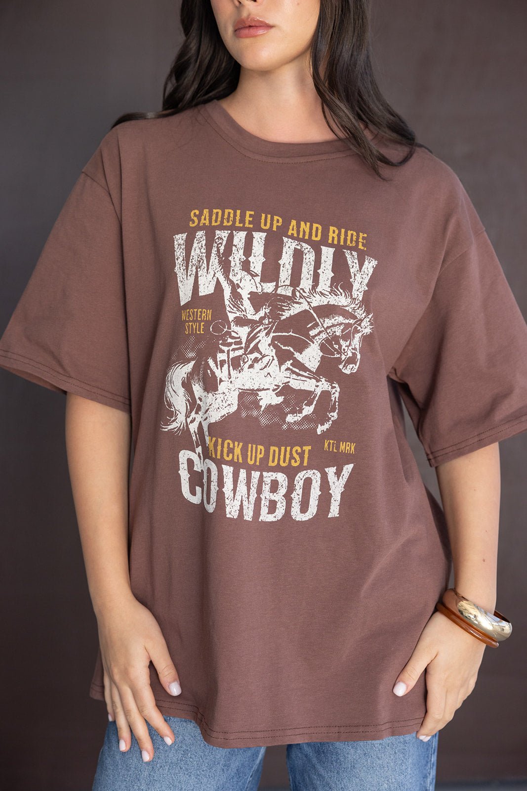 חולצת בייסיק מבד נעים ביותר ובגזרה משוחררת, בשילוב הדפס טרנדי.