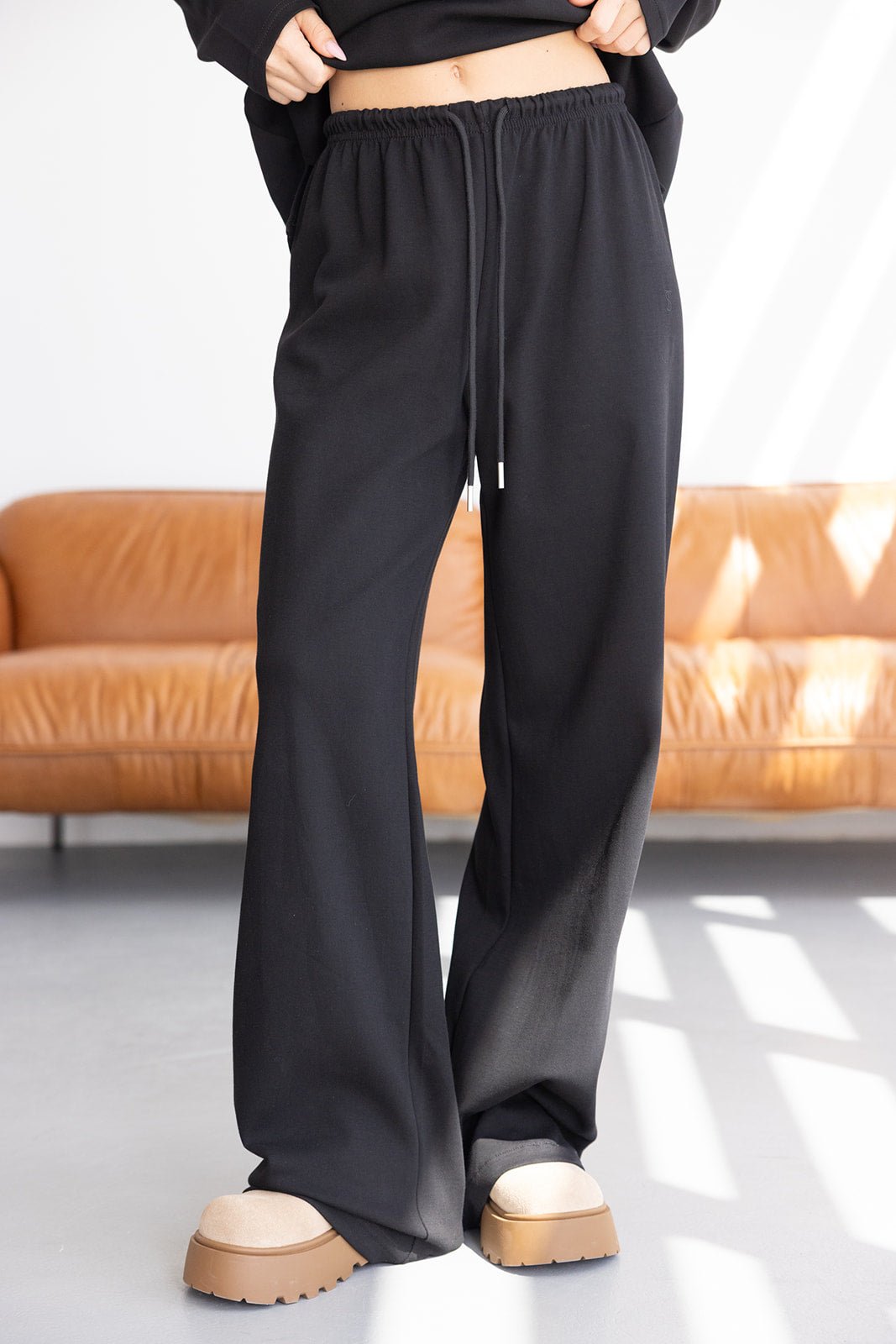 מכנס ארוך מבד נוח ונעים למגע, בגזרה ישרה ומשוחררת. למכנס גומי במותן ושרוכים לקשירה. הלוגו שלנו רקום בקטן בצד המכנס.