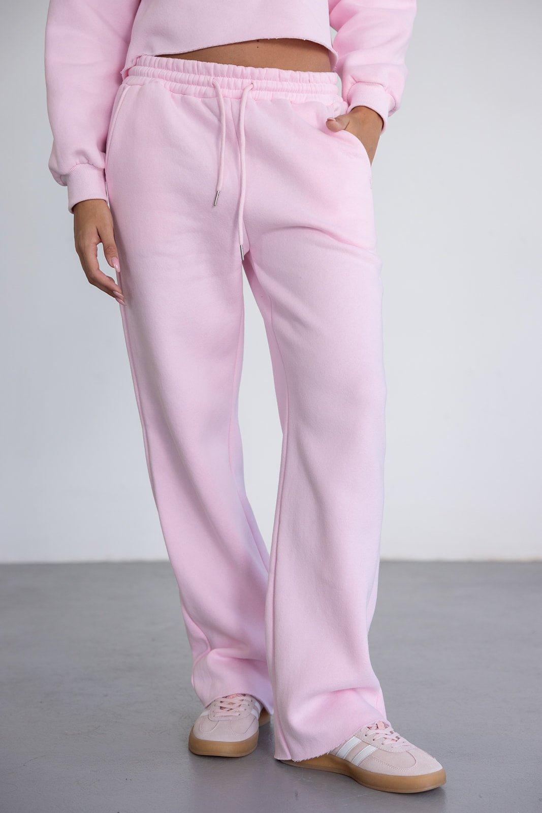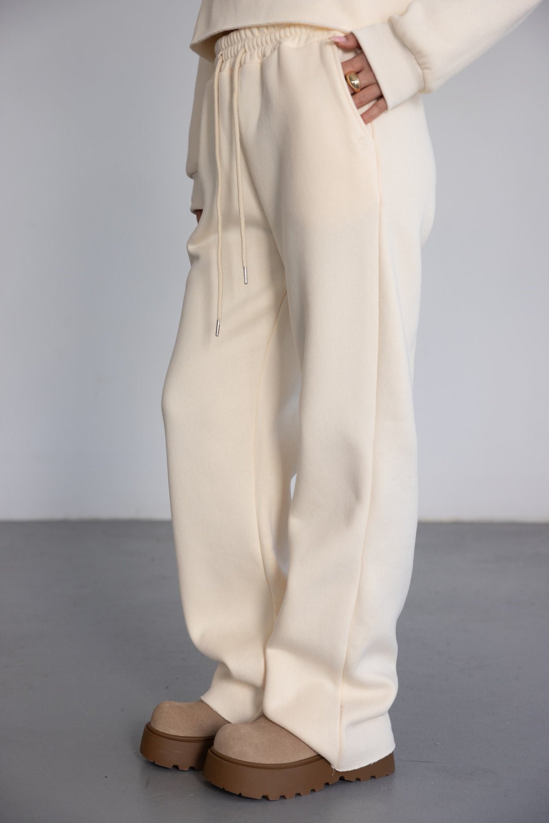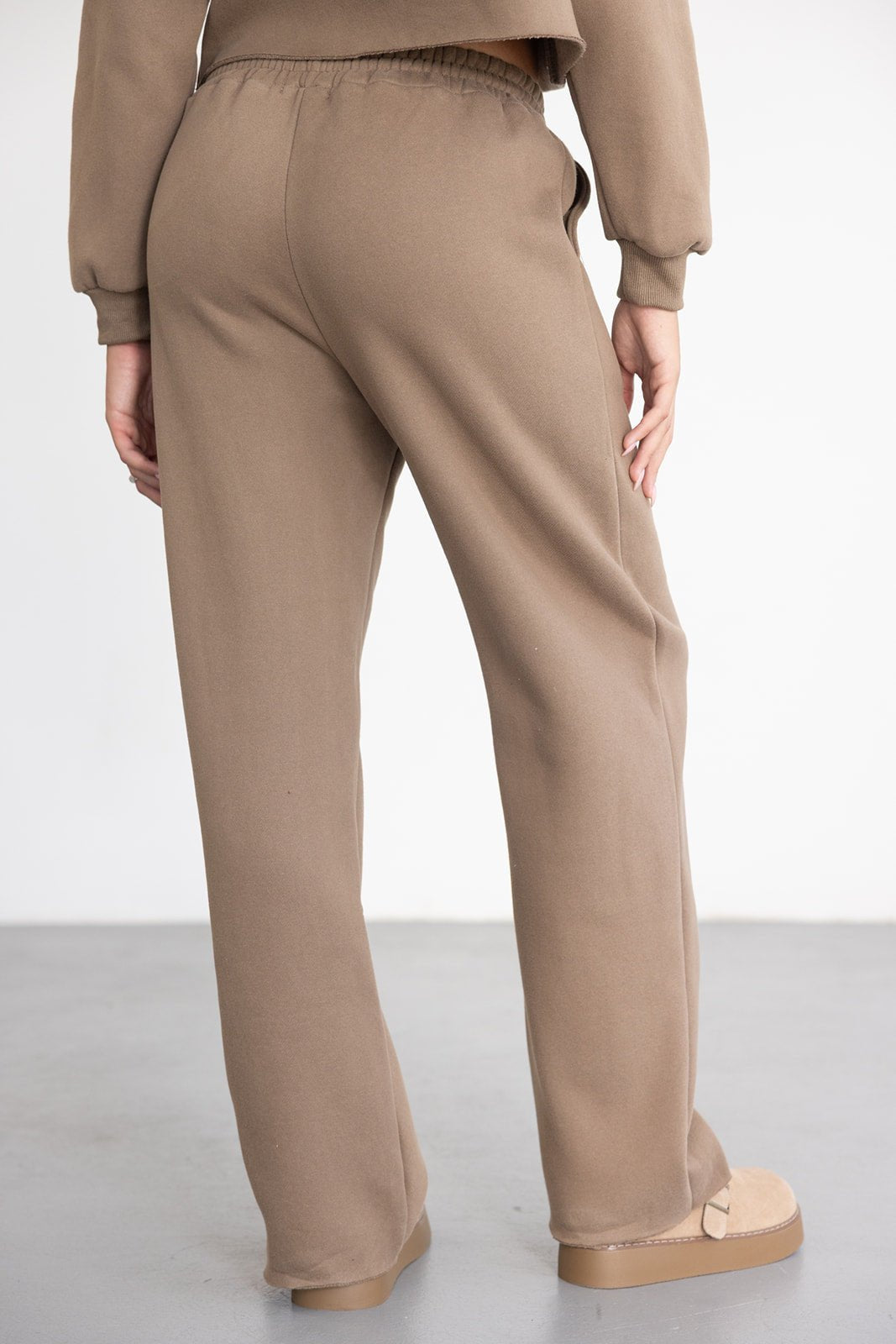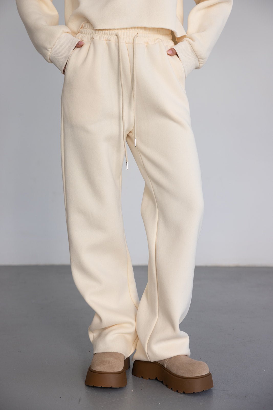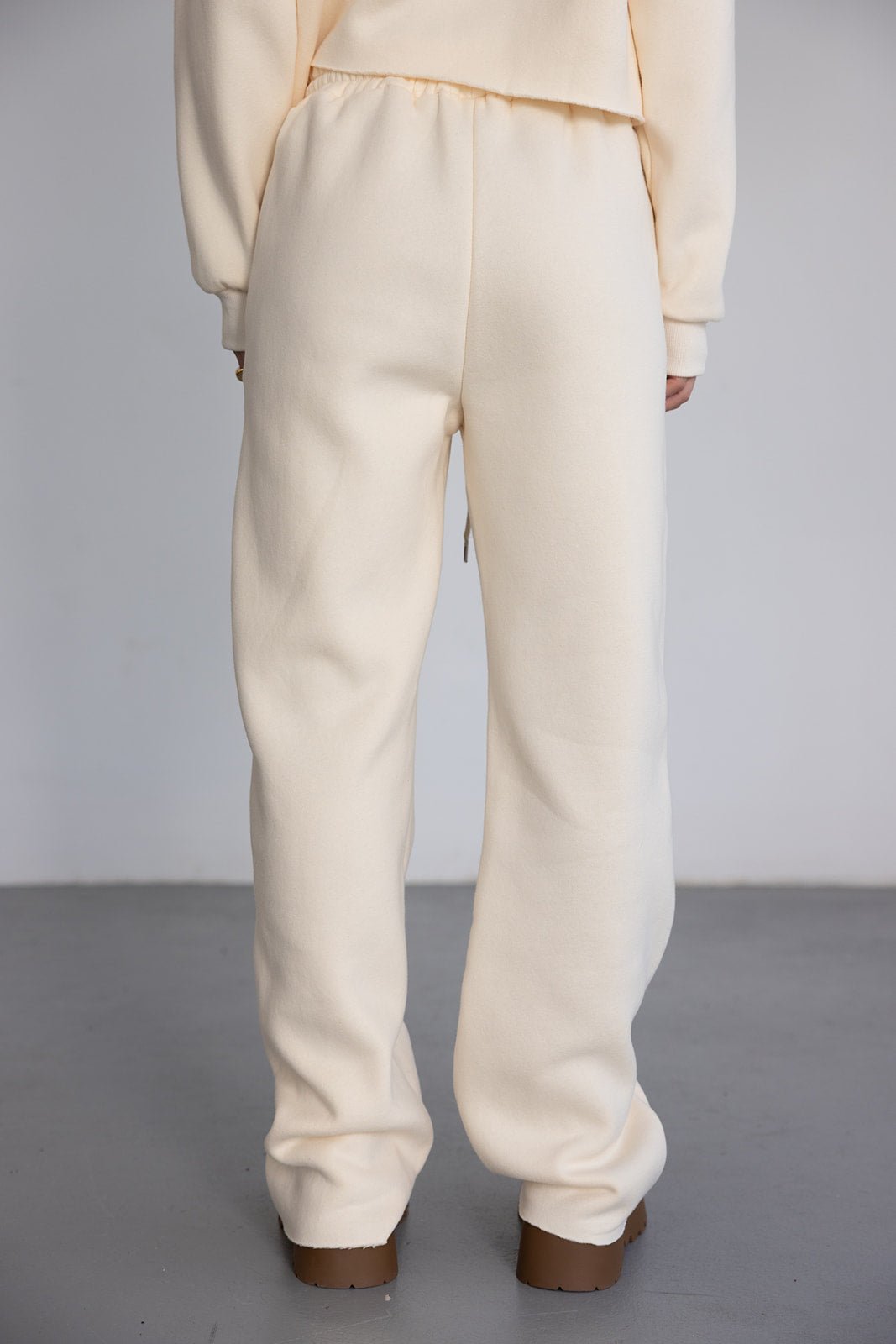 מכנס ארוך בגזרה מעט רחבה עם גומי ושרוך במותן. עשוי בד רך ונעים במראה אחיד.
