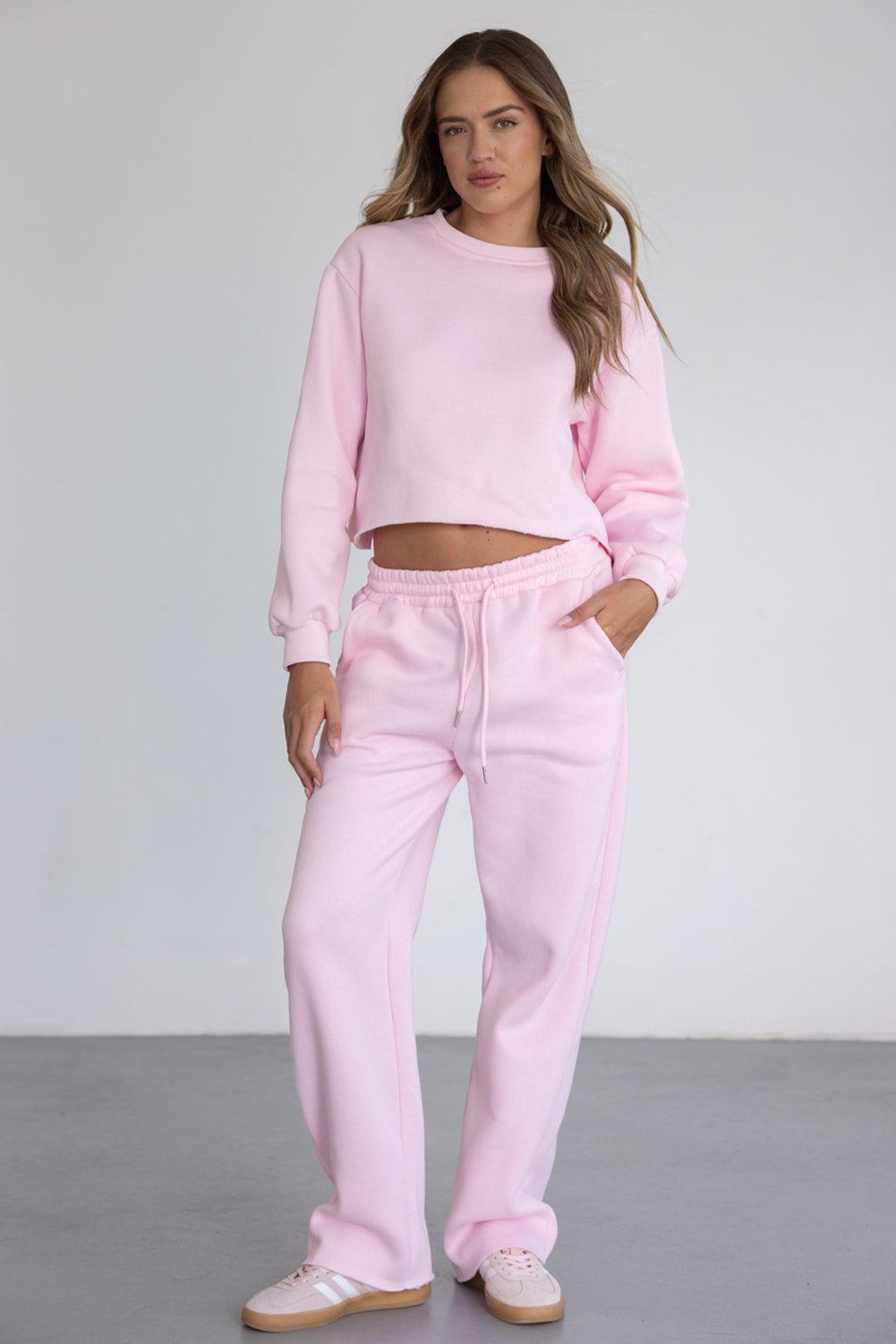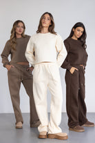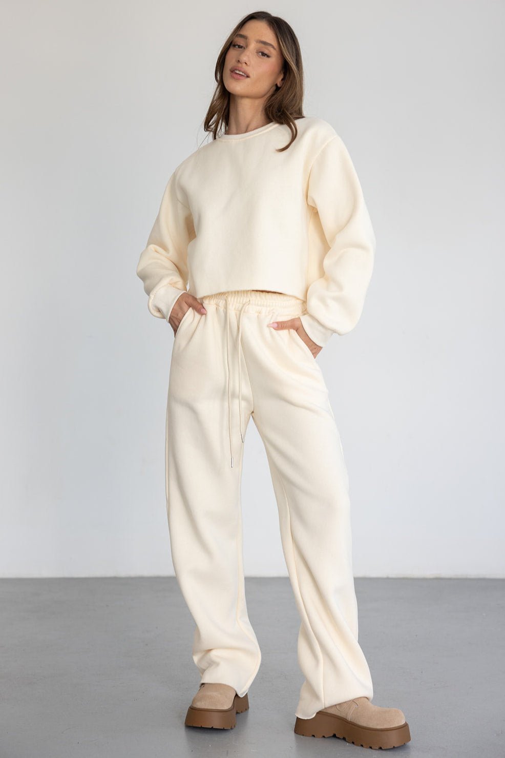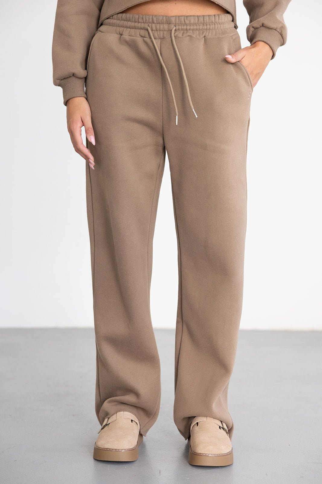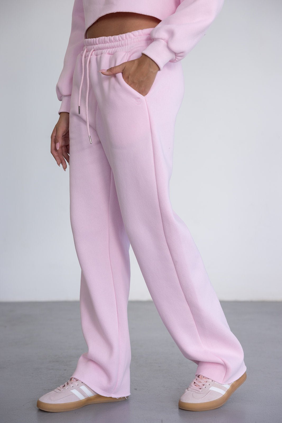 מכנס ארוך בגזרה מעט רחבה עם גומי ושרוך במותן. עשוי בד רך ונעים במראה אחיד.