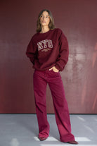 סווטשירט חמים בגזרה משוחררת ומחמיאה, בשילוב רקמה טרנדית בחלק הקדמי של הסווטשירט.