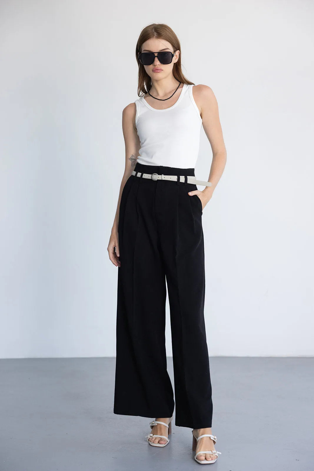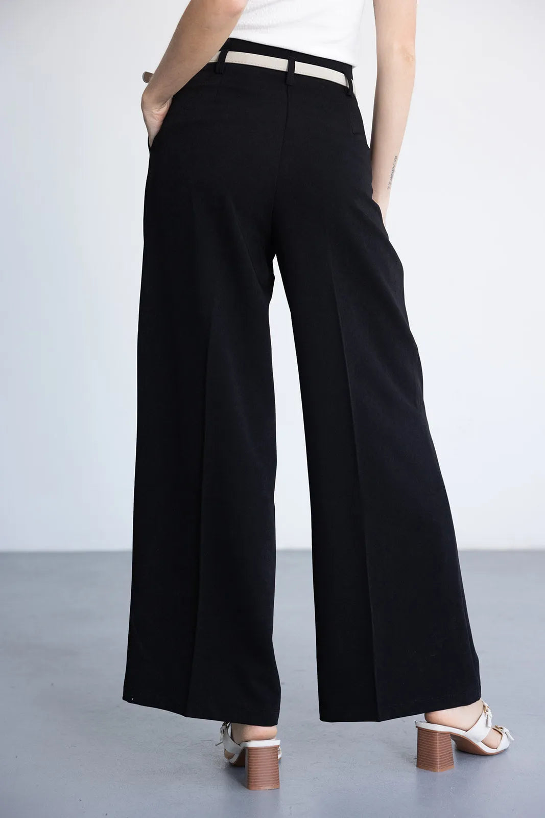 מכנס אלגנטי בגזרה רחבה ומחמיאה, מבד נעים ביותר. בשילוב שני כיסים קדמיים, רוכסן וחגורה.