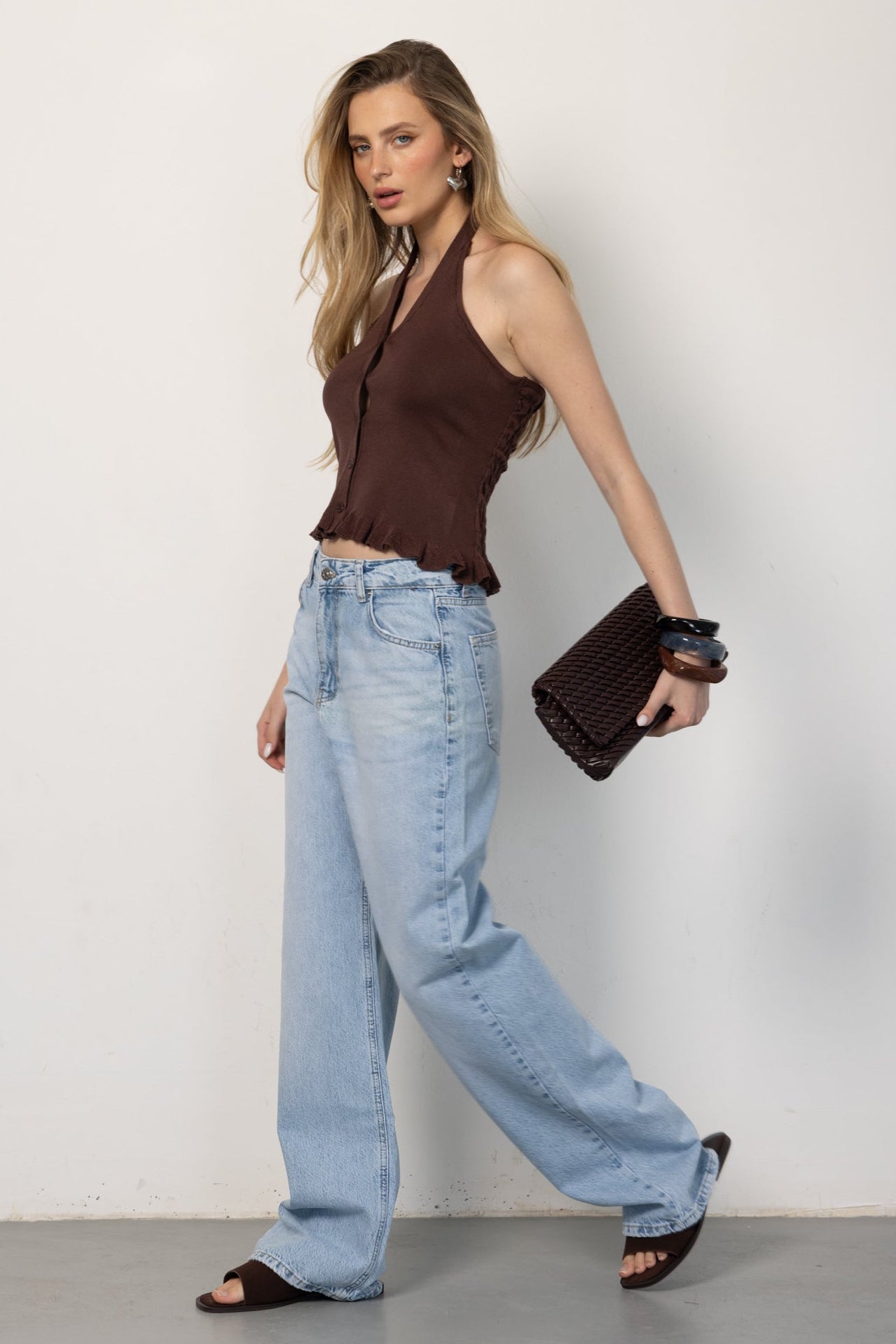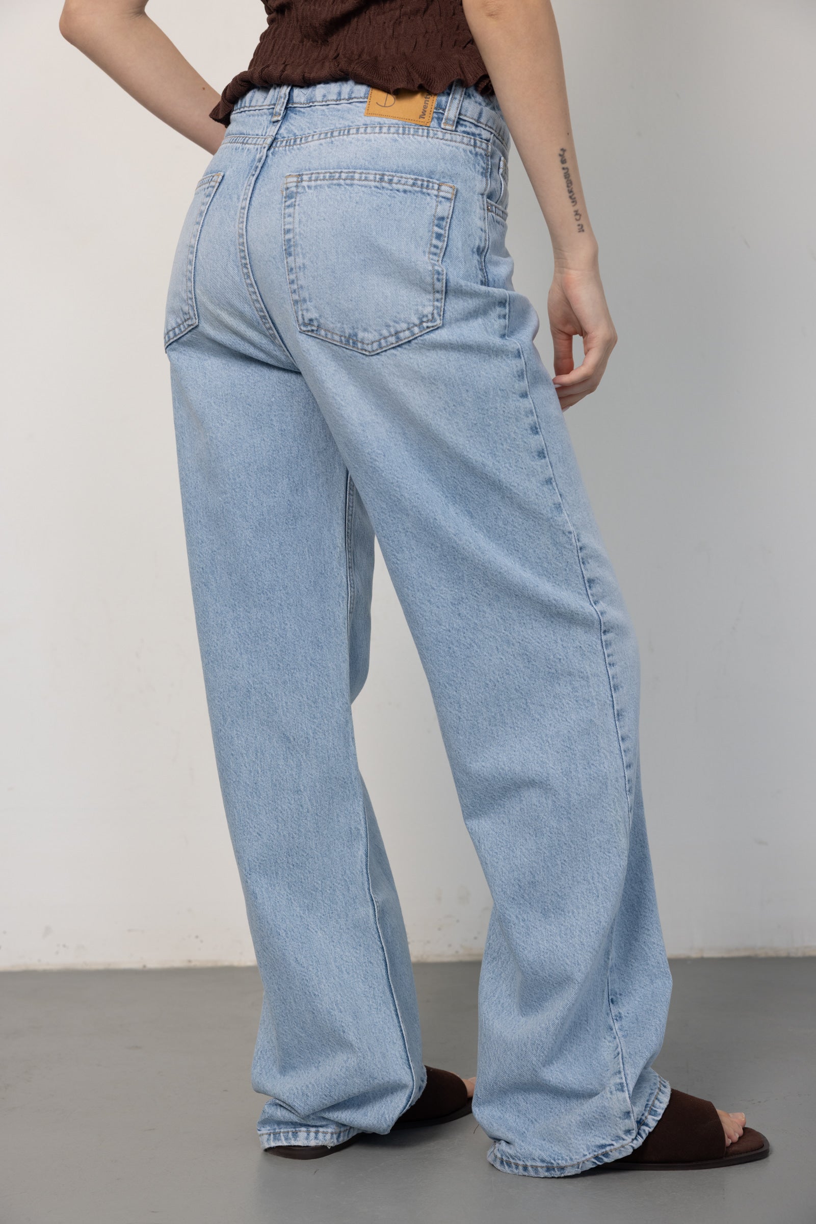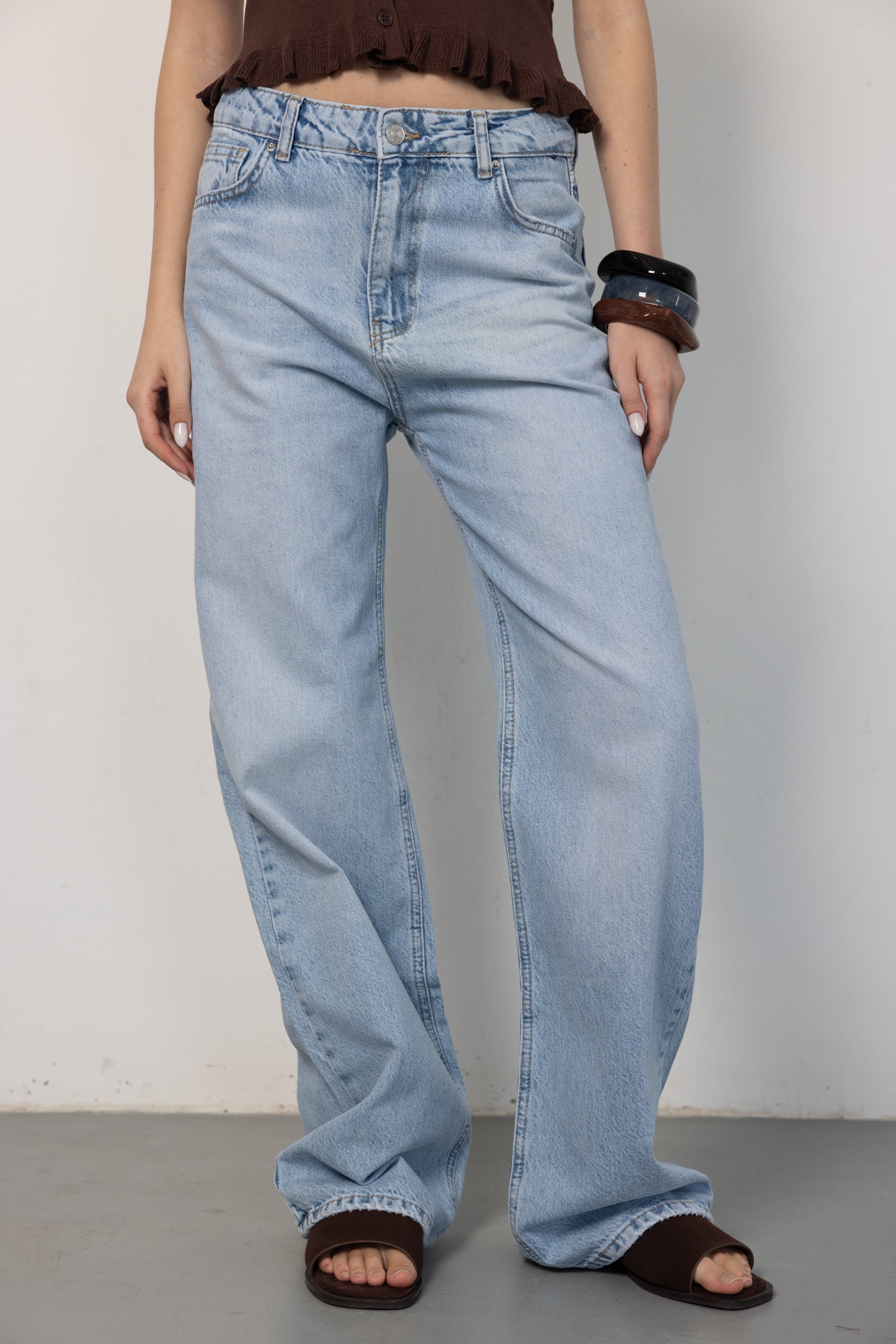 ג'ינס בגזרה ישירה ורפויה למראה מחמיא ונוח. כולל כיסים קדמיים ואחוריים, סגירת רוכסן וכפתור ותפרים קלאסיים.