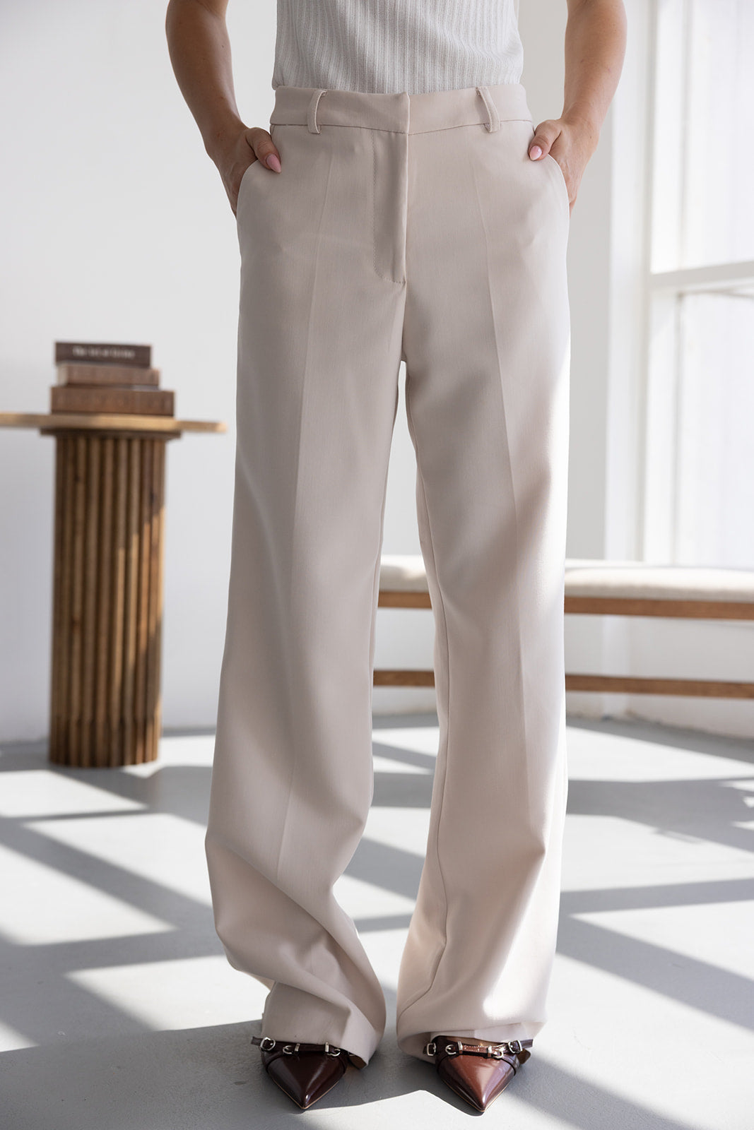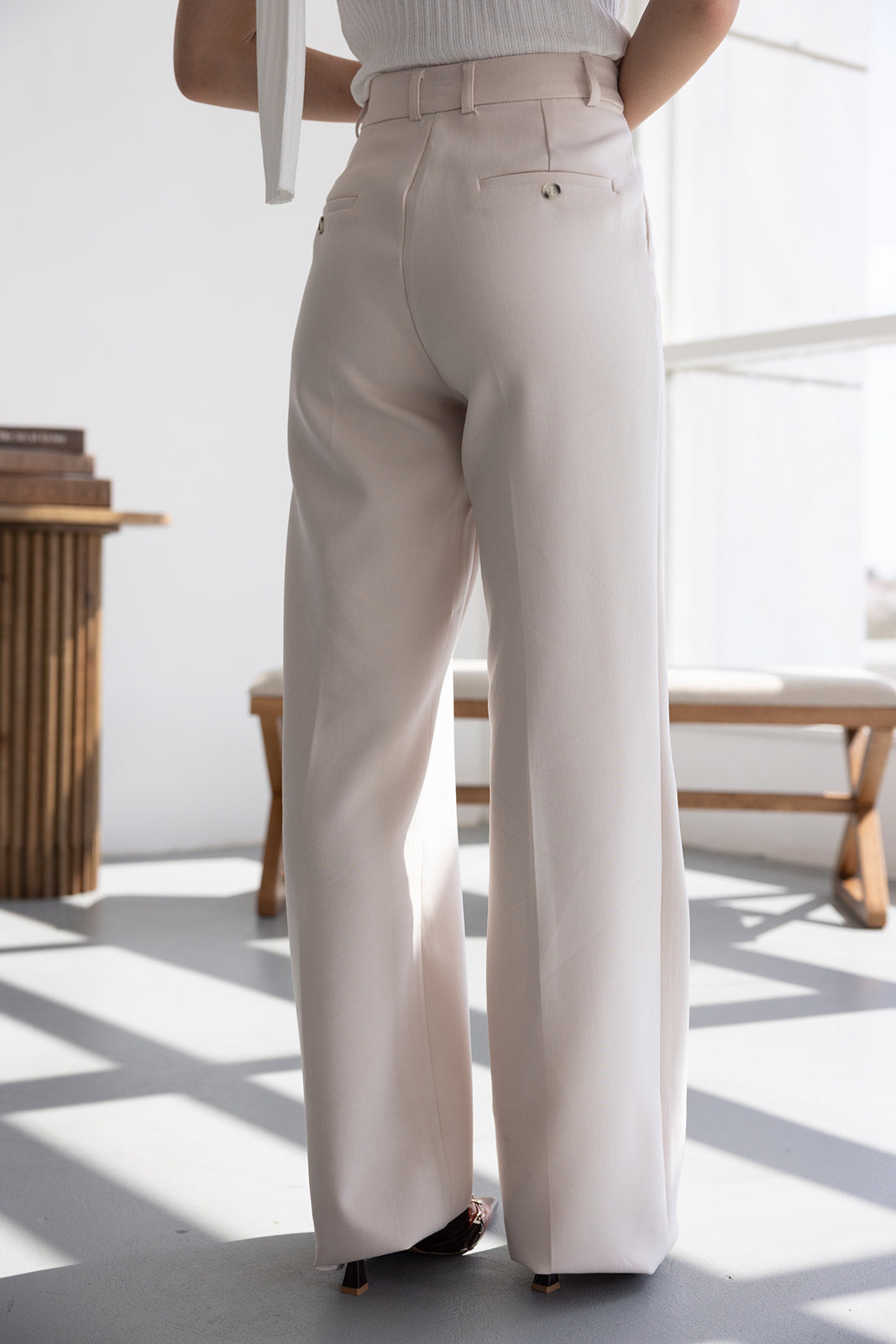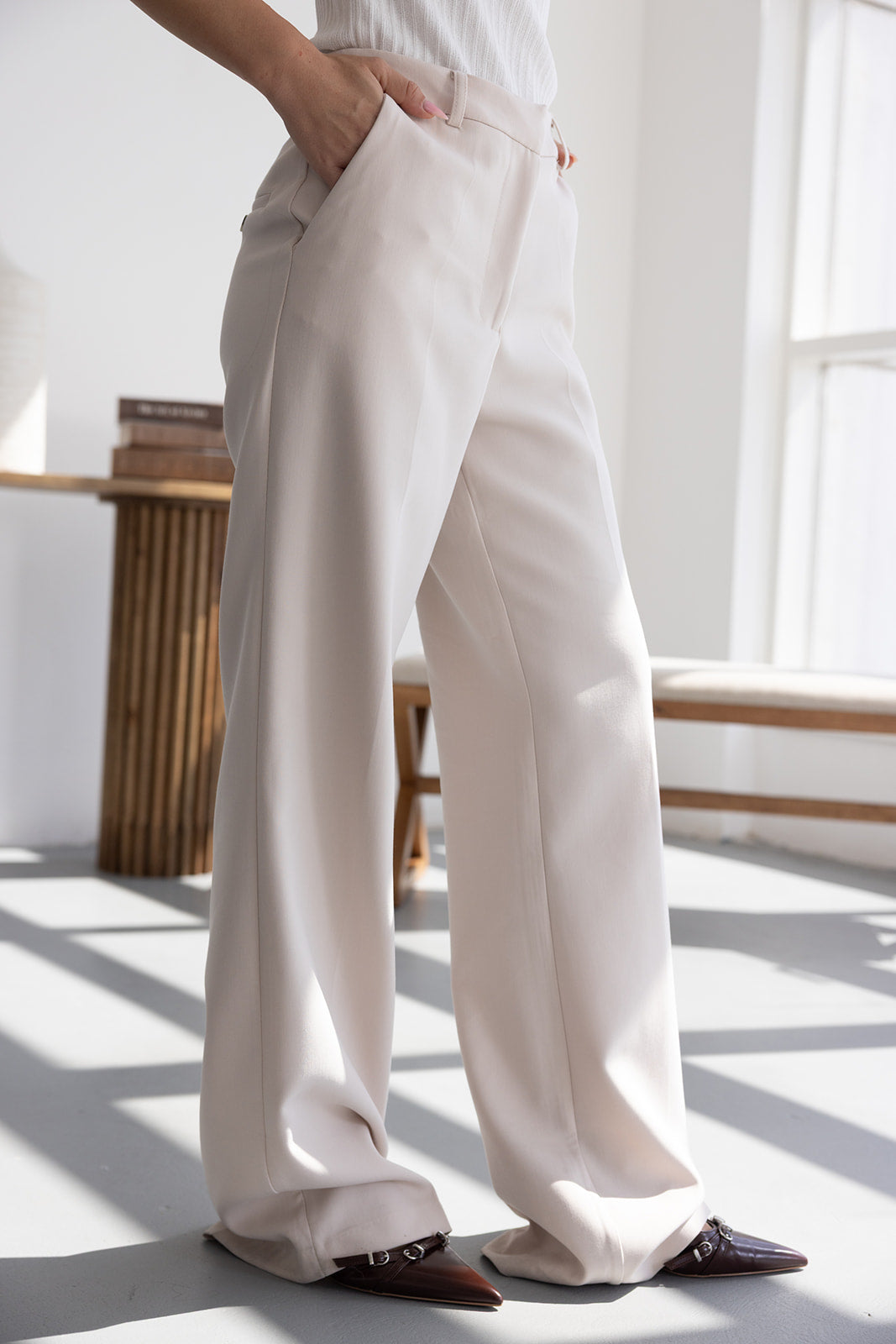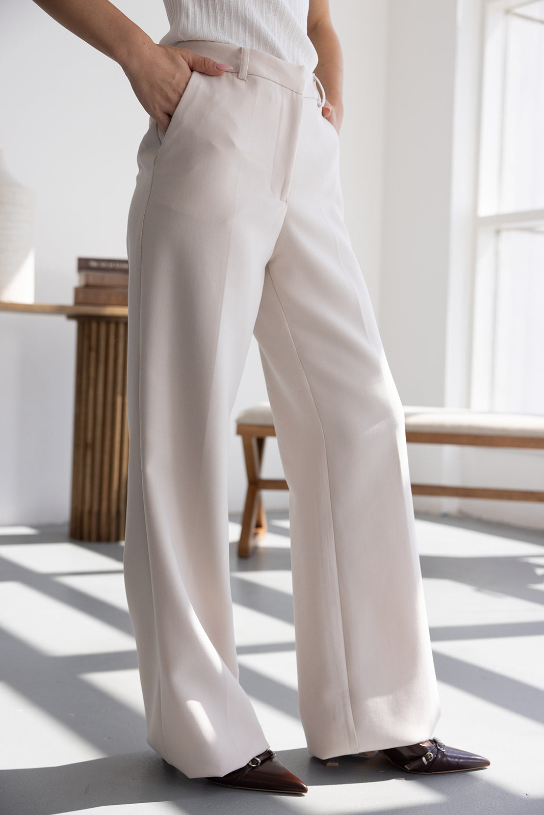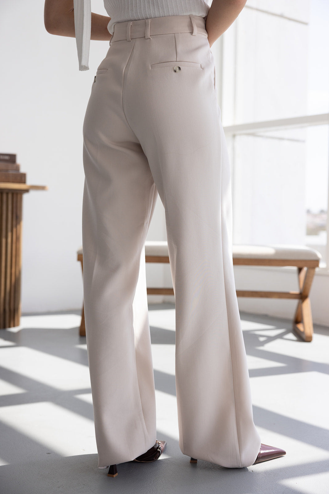 מכנס אלגנטי קלאסי בגזרה ישרה. בשילוב שני כיסים קדמיים, שני כיסי דמה אחוריים, כפתור ורוכסן.