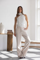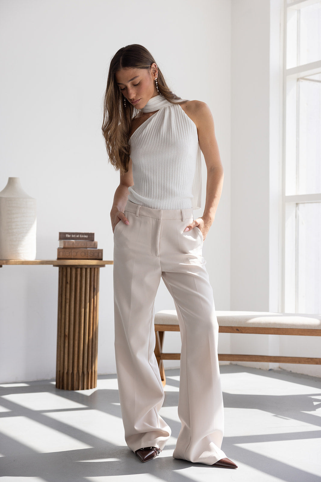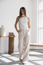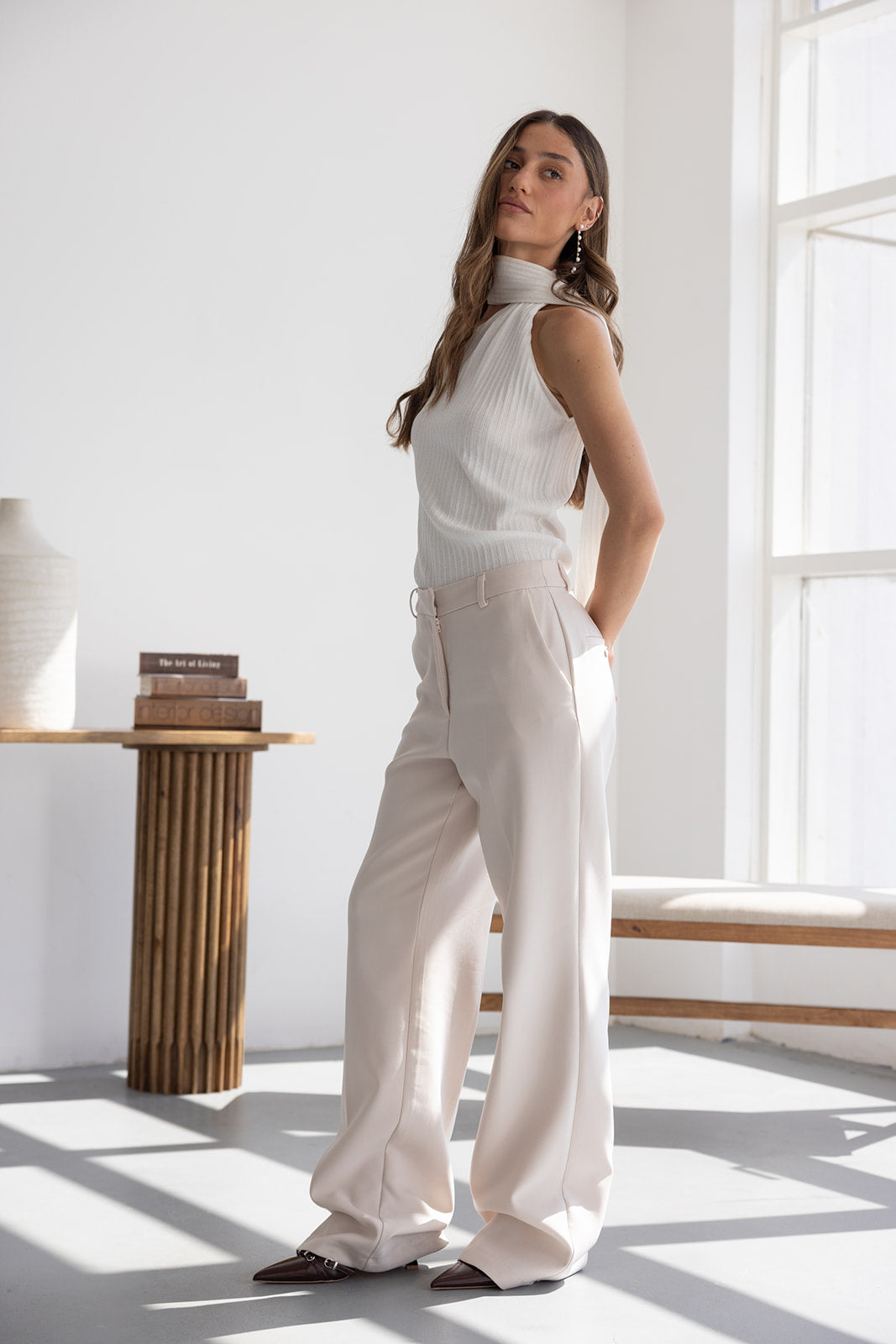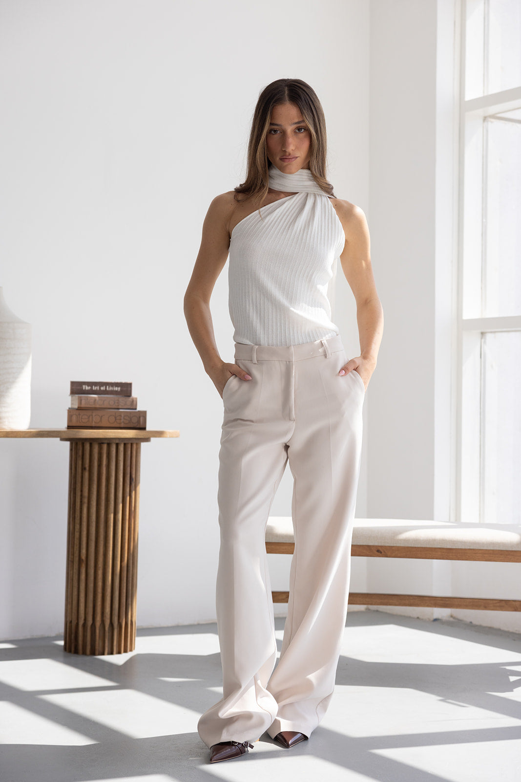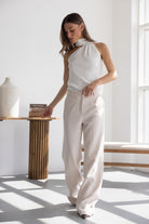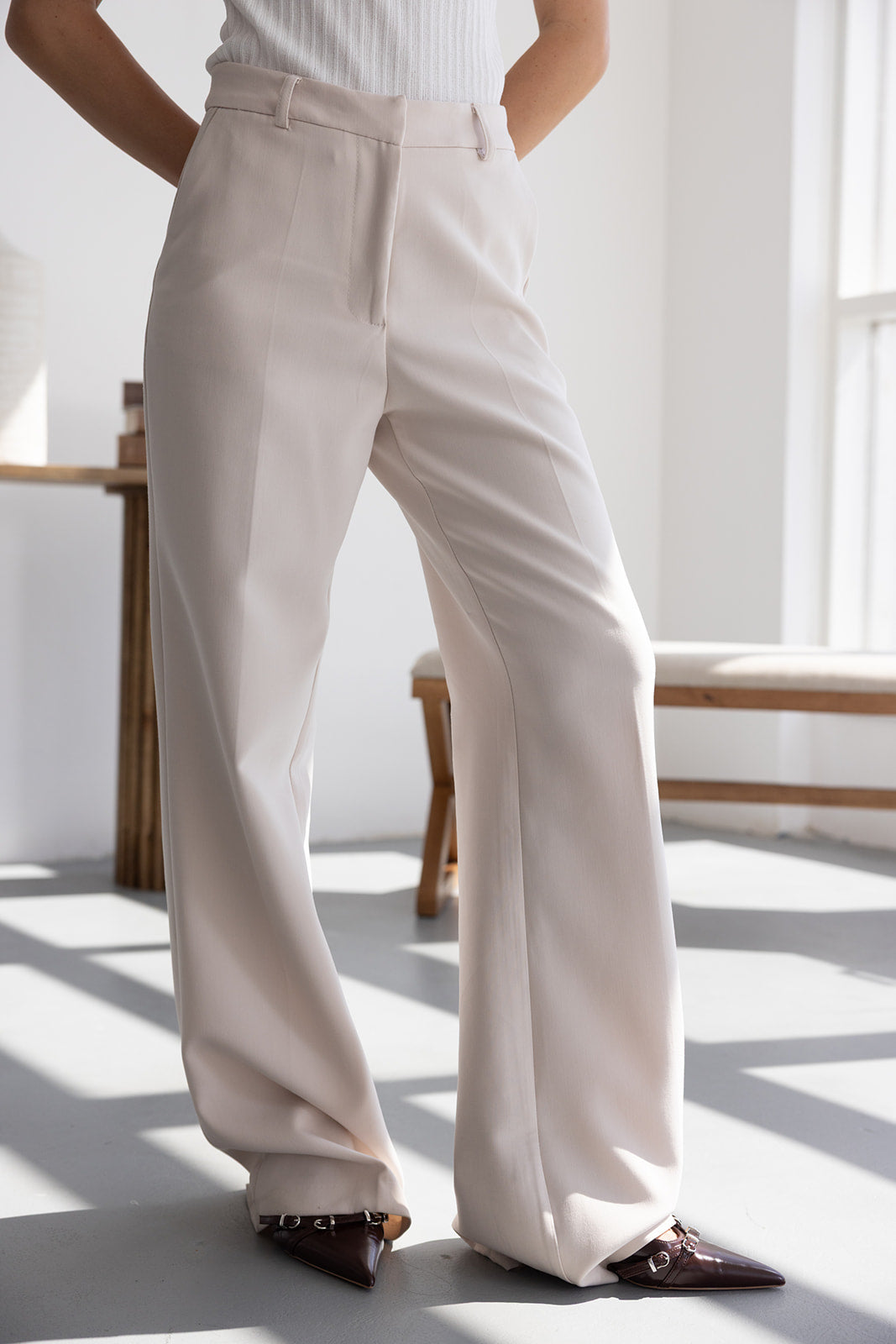 מכנס אלגנטי קלאסי בגזרה ישרה. בשילוב שני כיסים קדמיים, שני כיסי דמה אחוריים, כפתור ורוכסן.