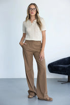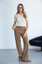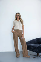 מכנס אלגנט קלאסי בגזרה ישרה ומחמיאה, בשילוב זוג כיסי דמה אחוריים וזוג כיסים קדמיים.