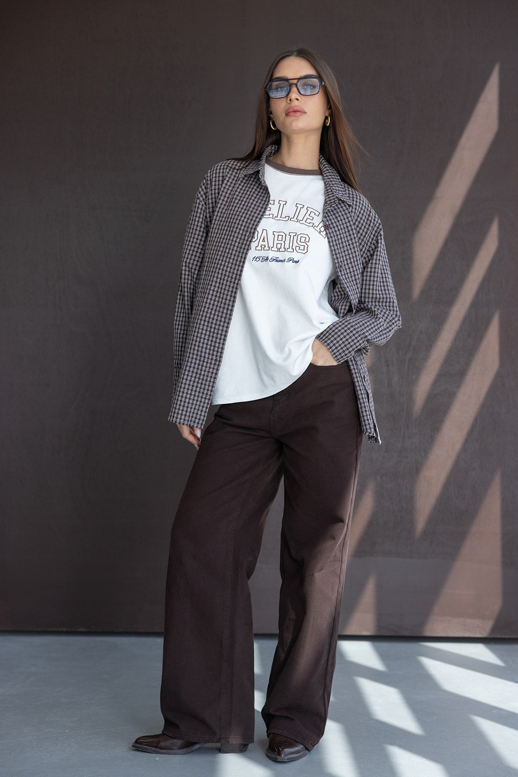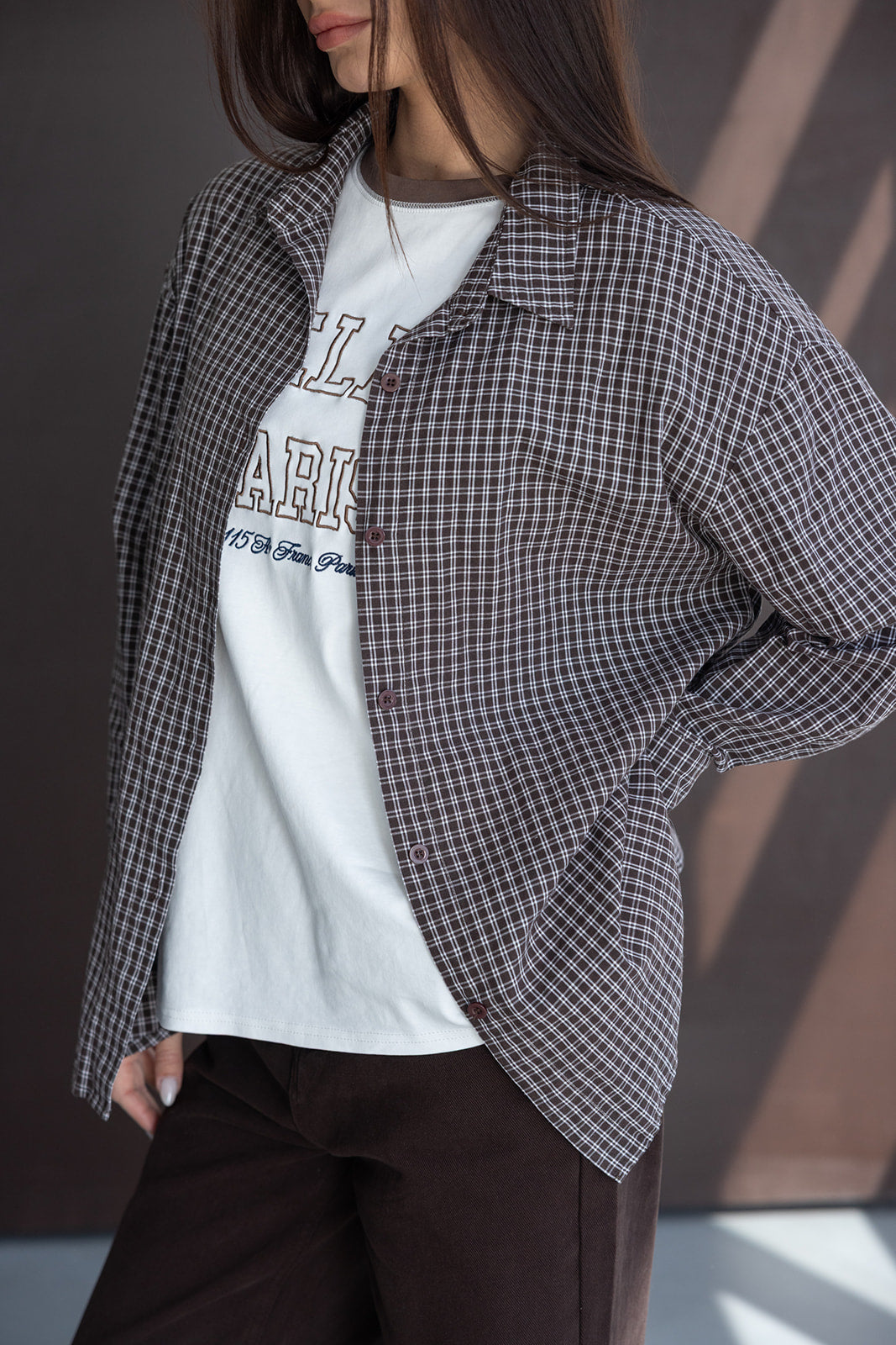 חולצה מכופתרת קלאסית וטרנדית כאחד, בגזרה משוחררת ומחמיאה לגוף. בשילוב הדפס משובץ ובד נעים ואיכותי.