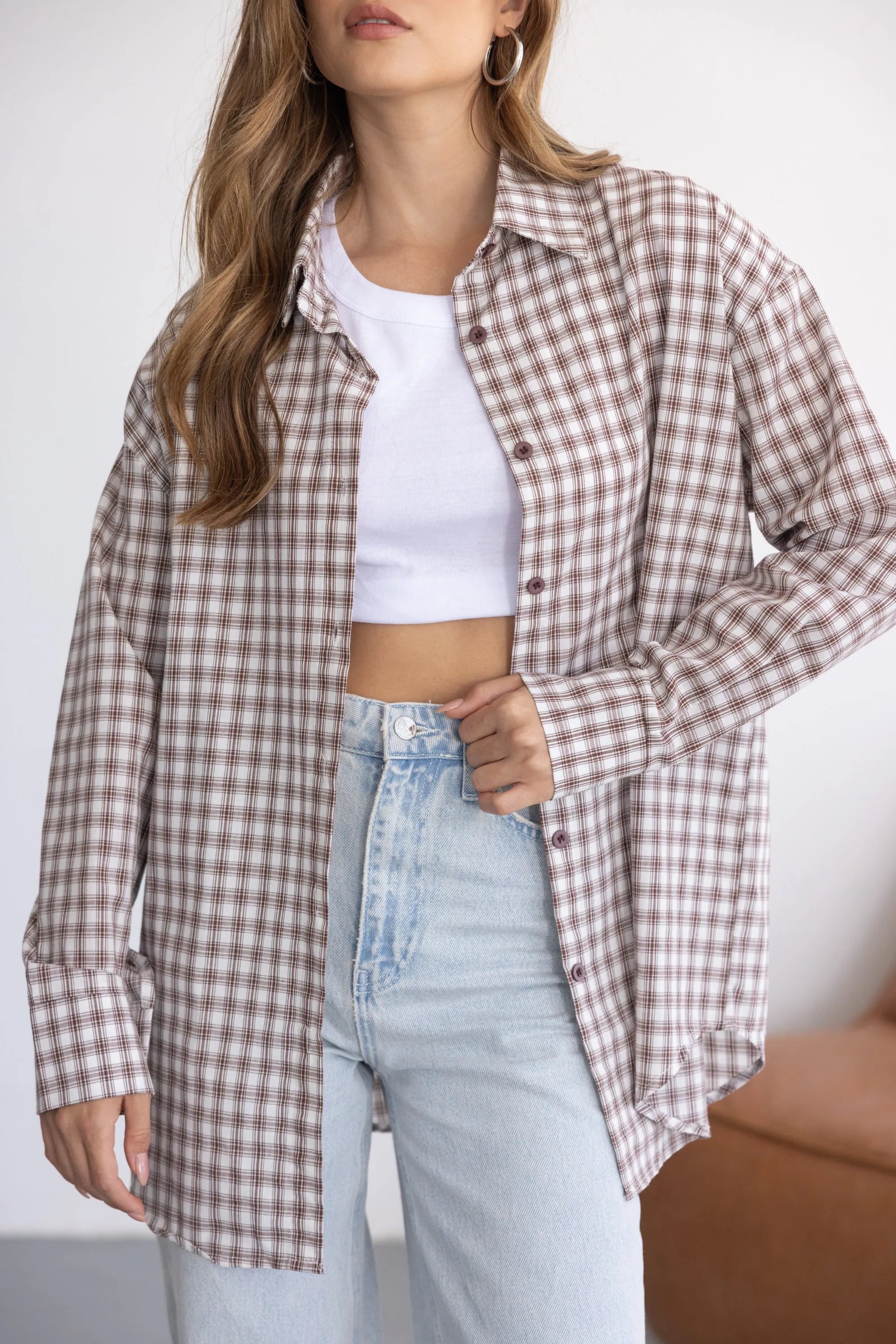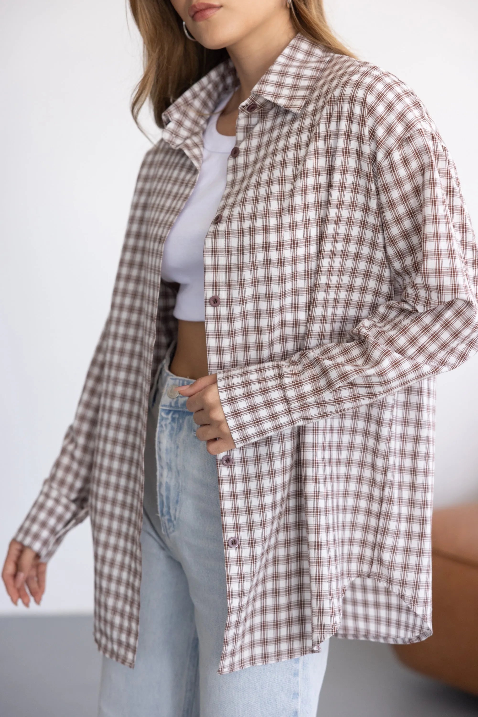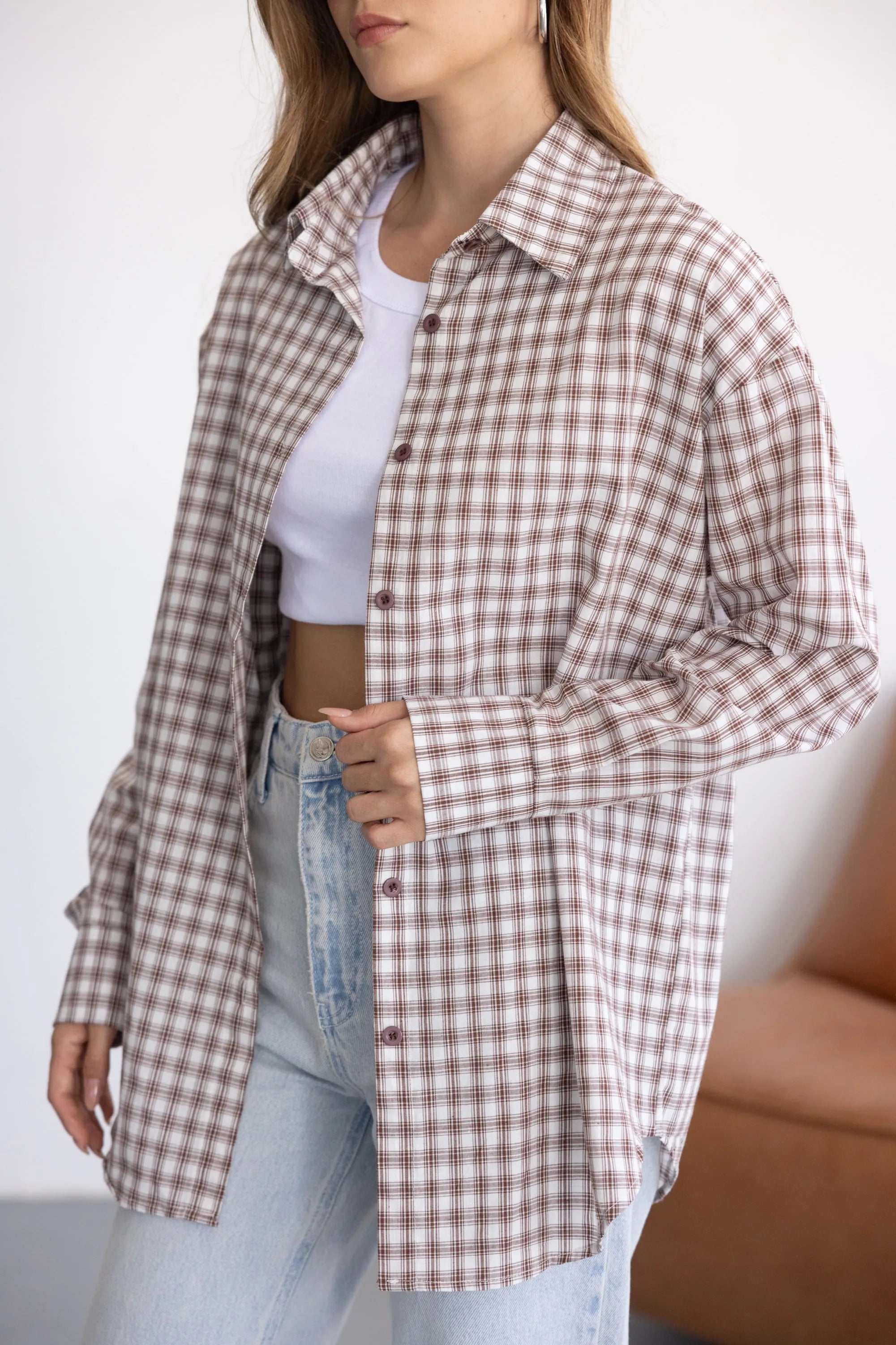 חולצה מכופתרת קלאסית וטרנדית כאחד, בגזרה משוחררת ומחמיאה לגוף. בשילוב הדפס משובץ ובד נעים ואיכותי.