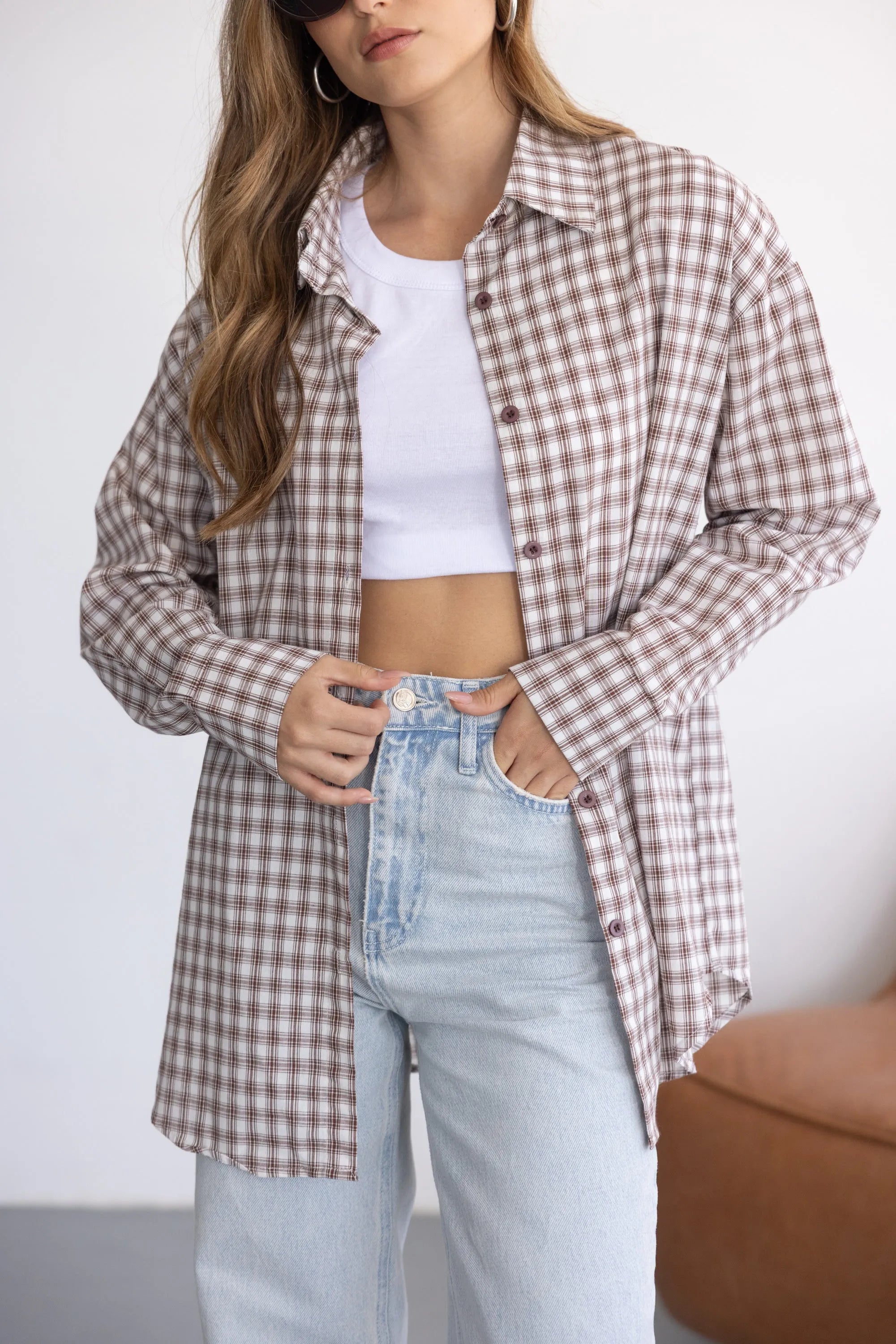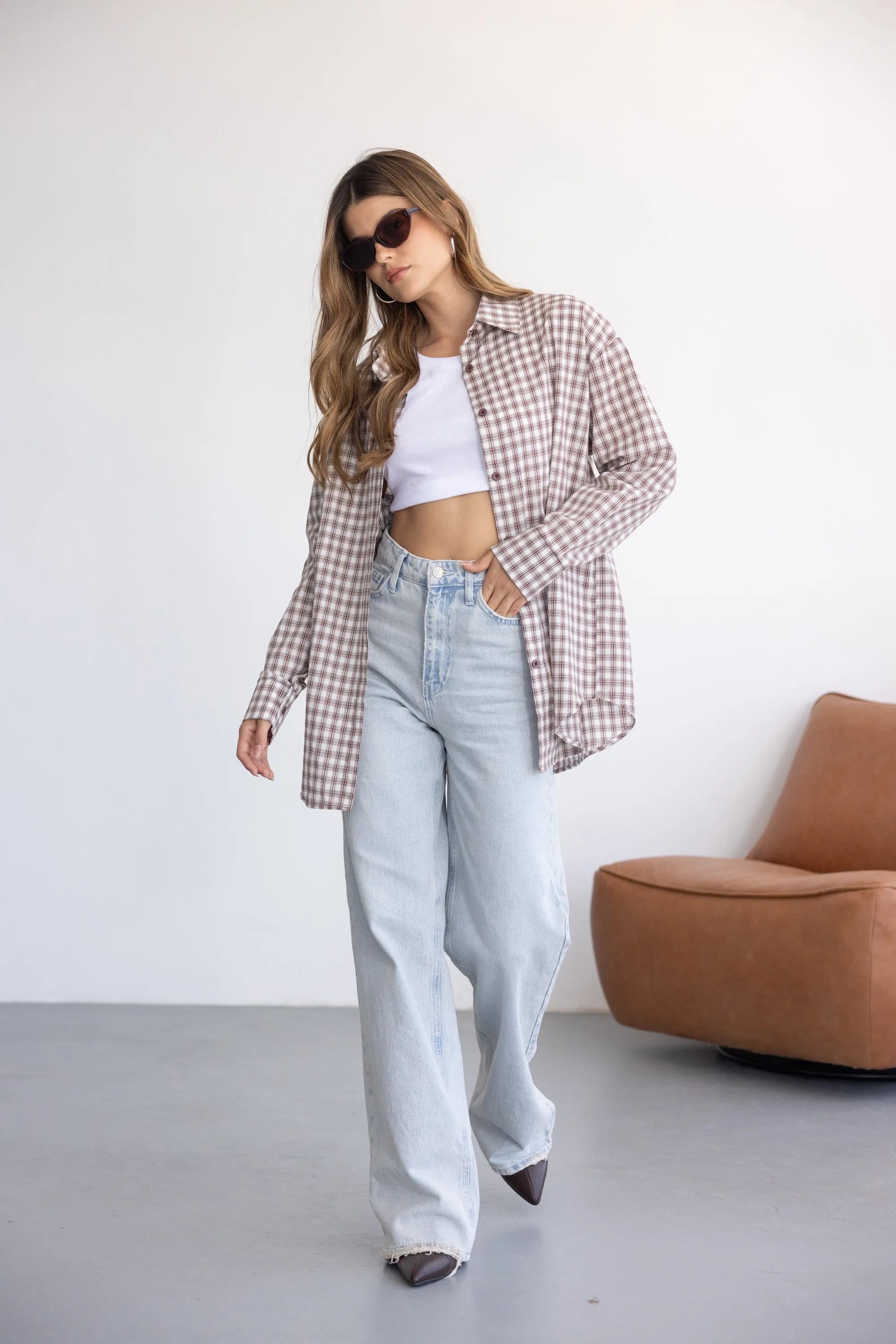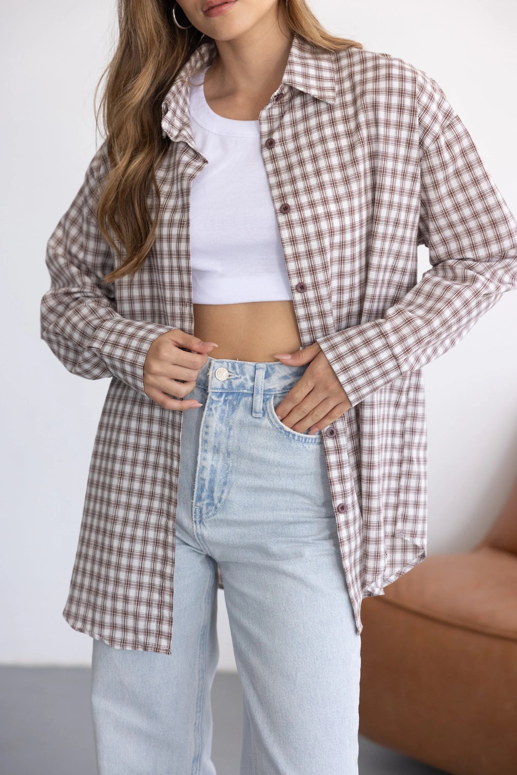 חולצה מכופתרת קלאסית וטרנדית כאחד, בגזרה משוחררת ומחמיאה לגוף. בשילוב הדפס משובץ ובד נעים ואיכותי.