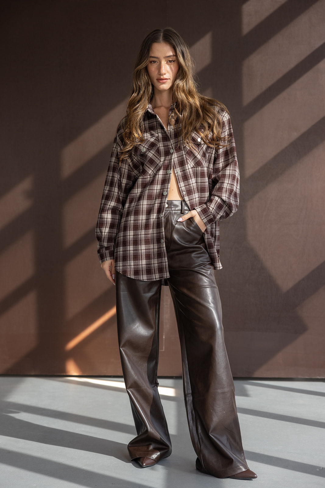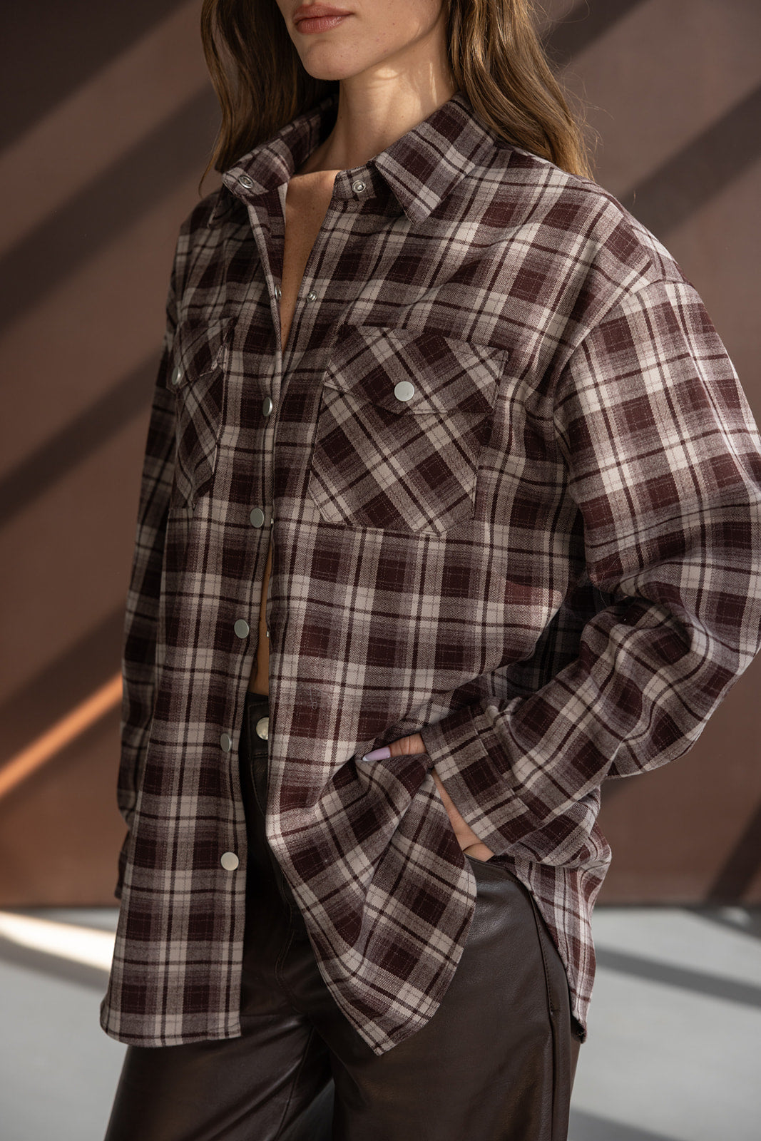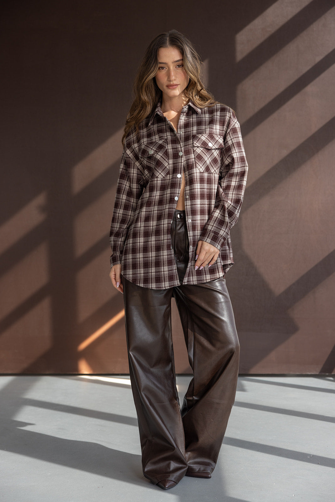 חולצה מכופתרת ארוכה בגזרה רחבה משוחררת ומחמיאה. בשילוב דוגמת משבצות טרנדית לעונה, כפתורים לאורך החולצה, צווארון קלאסי, ובד נעים ביותר.